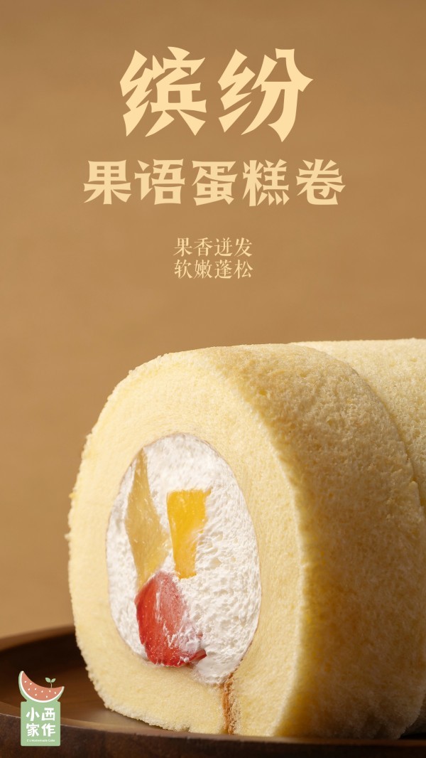 一口解锁鲜果三重甜!缤纷果语蛋糕卷。