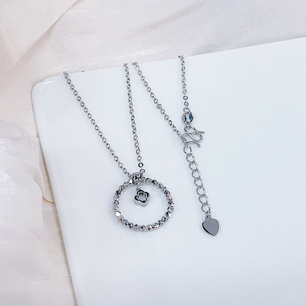 【限时8.8折】【线上铂金馆】PT950 【精品】铂金空心调节四叶草吊饰蹦迪珠圆环套链(BFPTTL00053)预售产品下单后不退款不退货不换货不补差价)