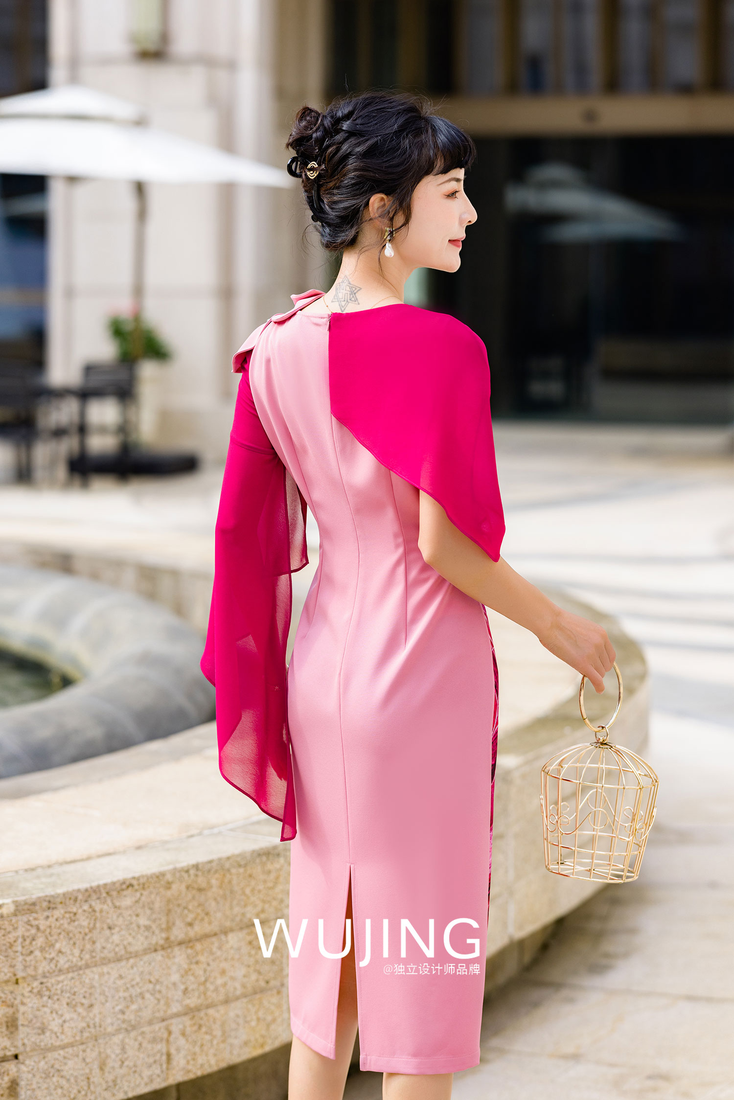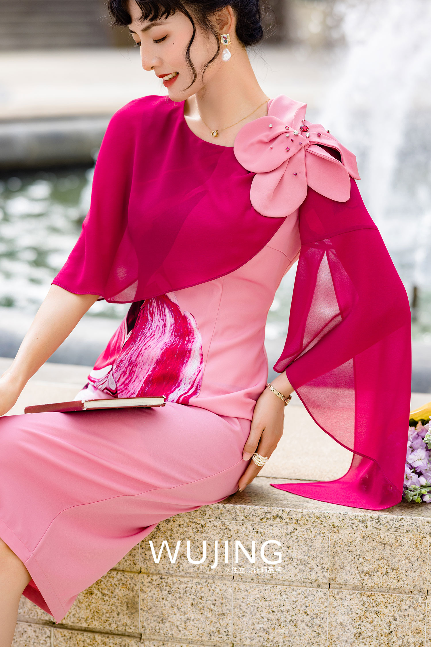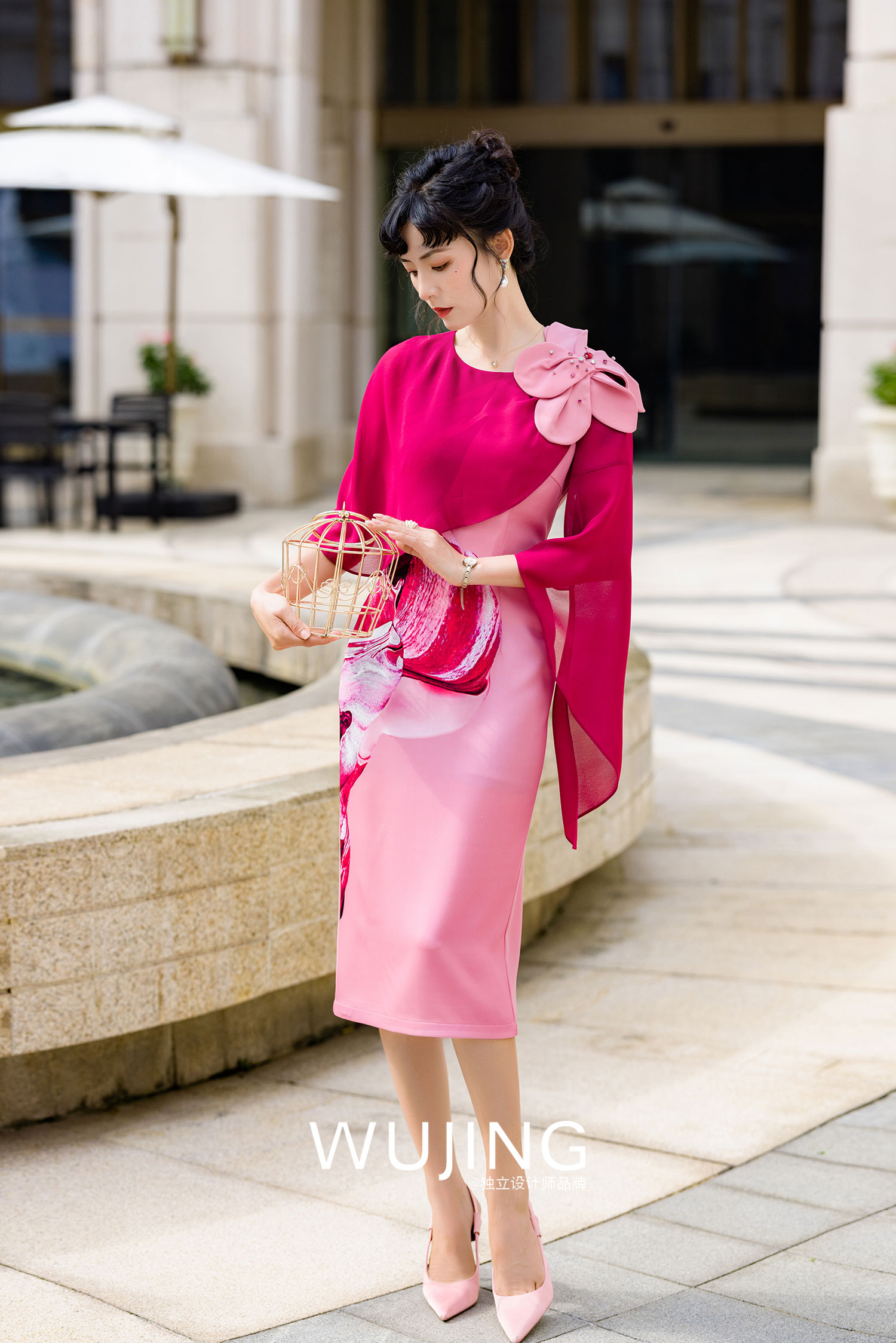 3022037 粉黛胭脂 藕粉色连衣裙 雾境