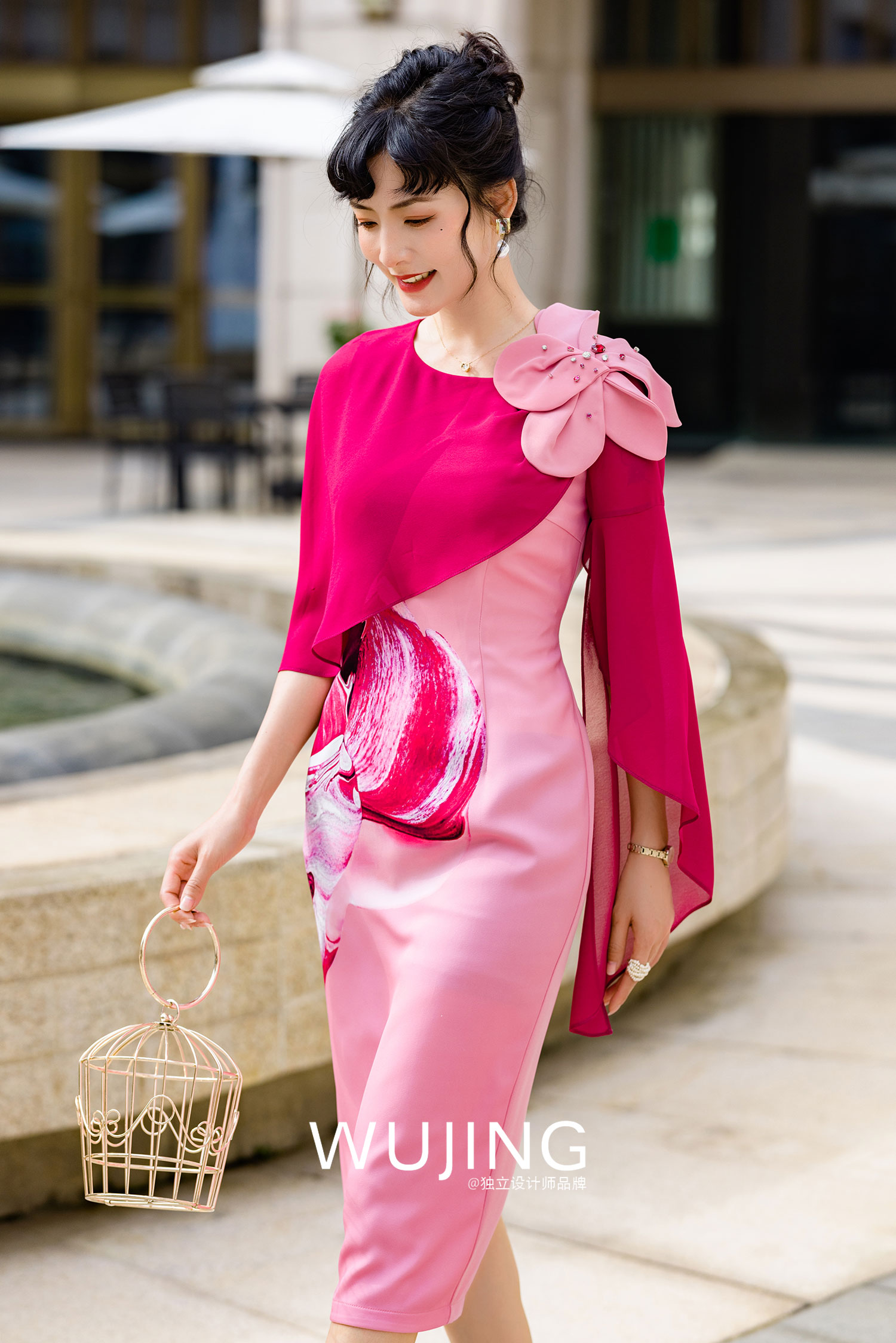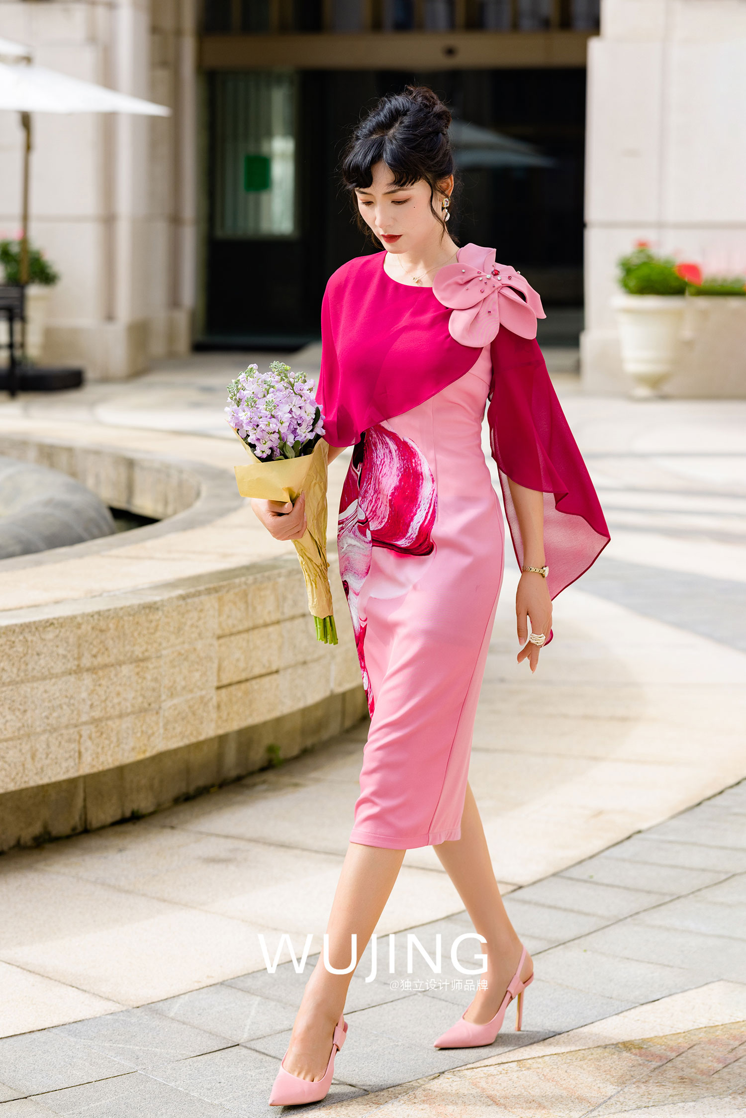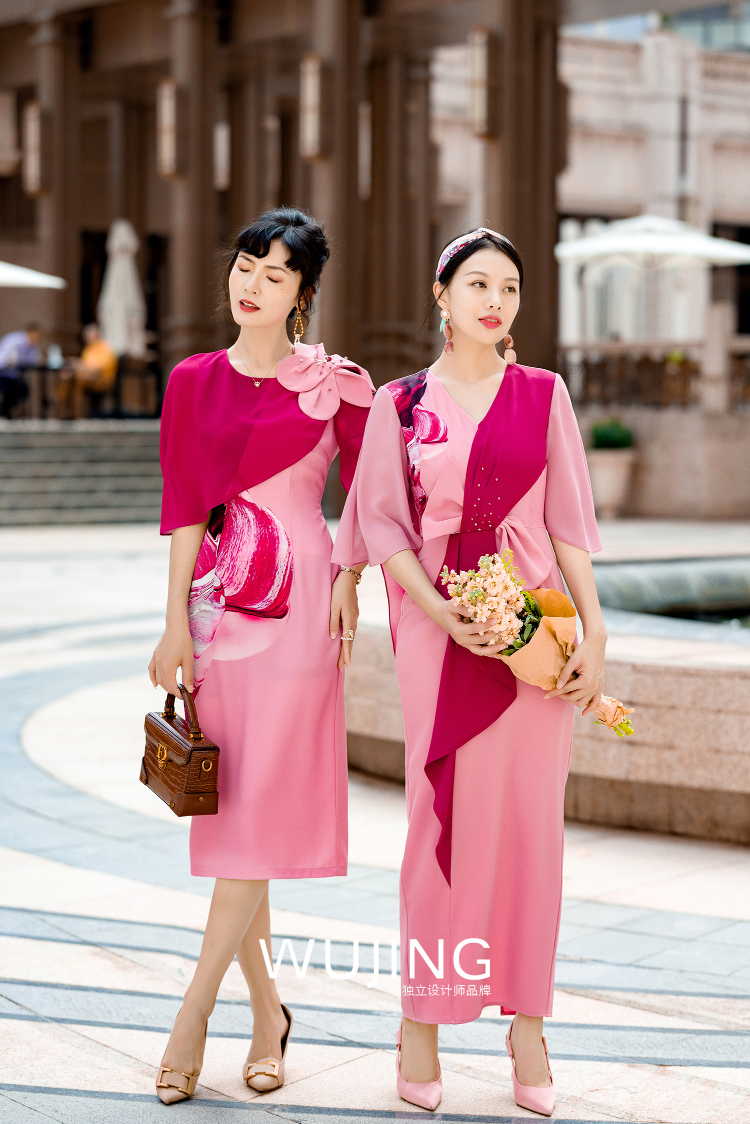3022037 粉黛胭脂 藕粉色连衣裙 雾境