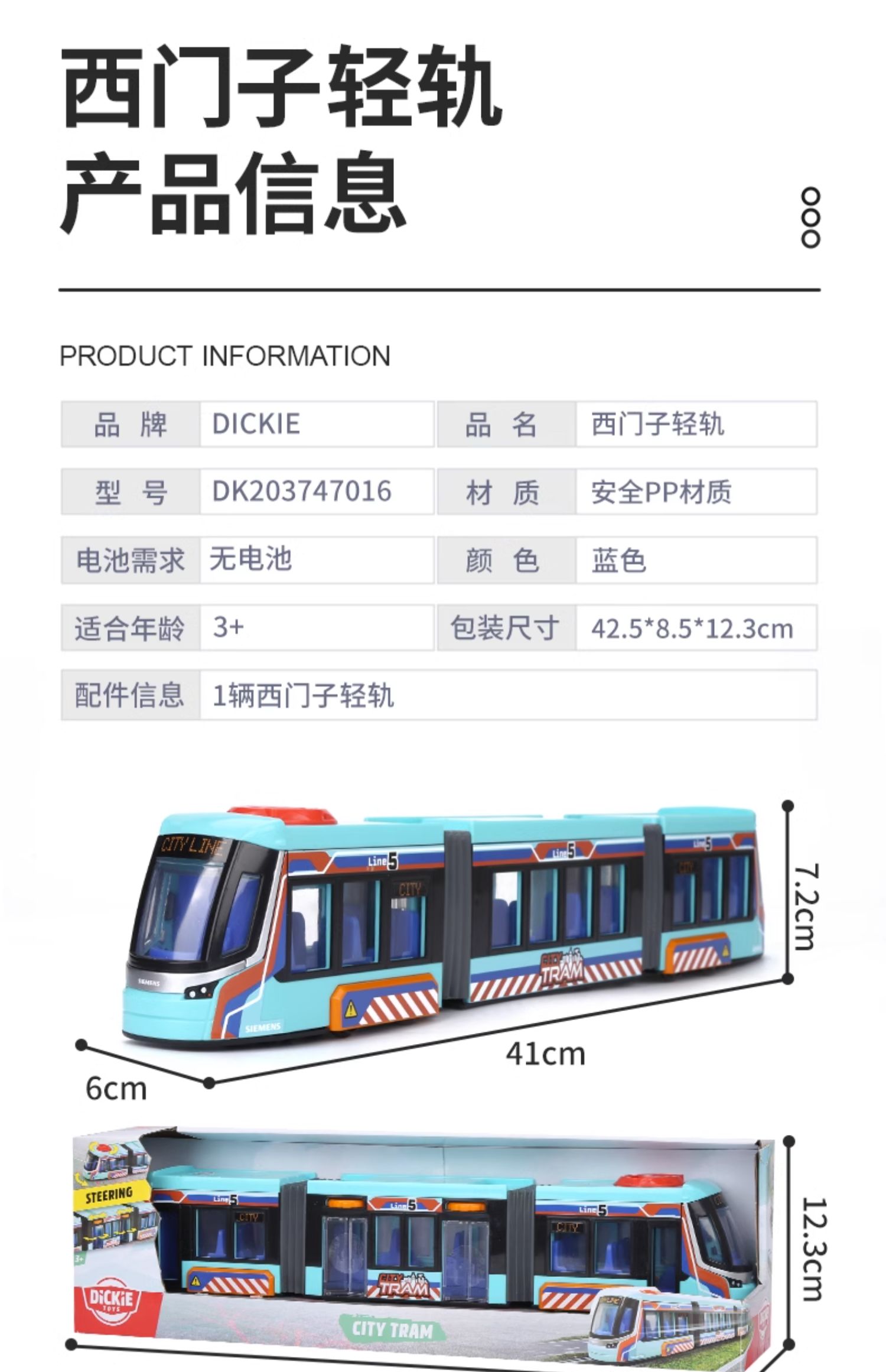 德国Dickietoys仿真大号沃尔沃客运车 西门子 轻轨 汽车模型益智男孩礼物 3岁+