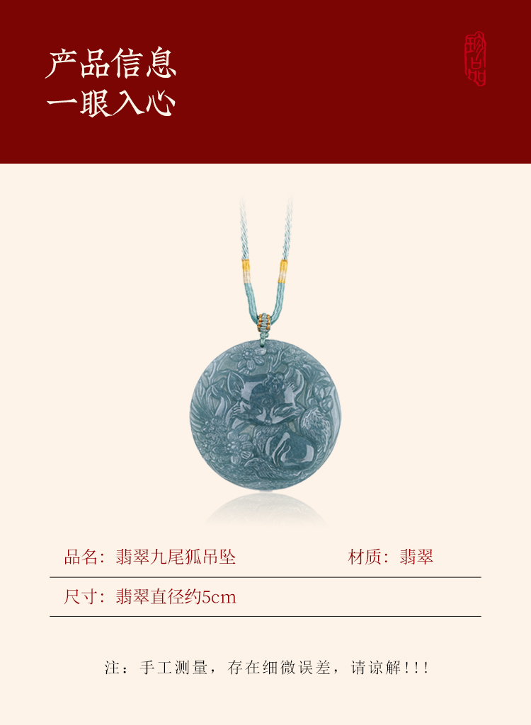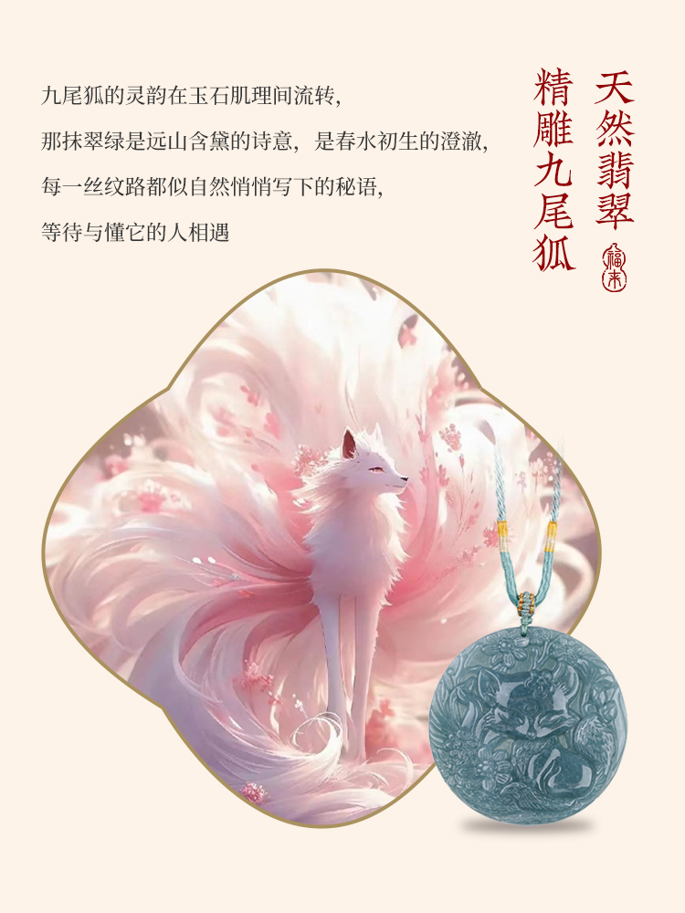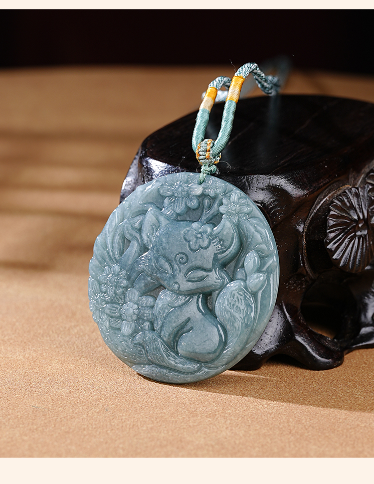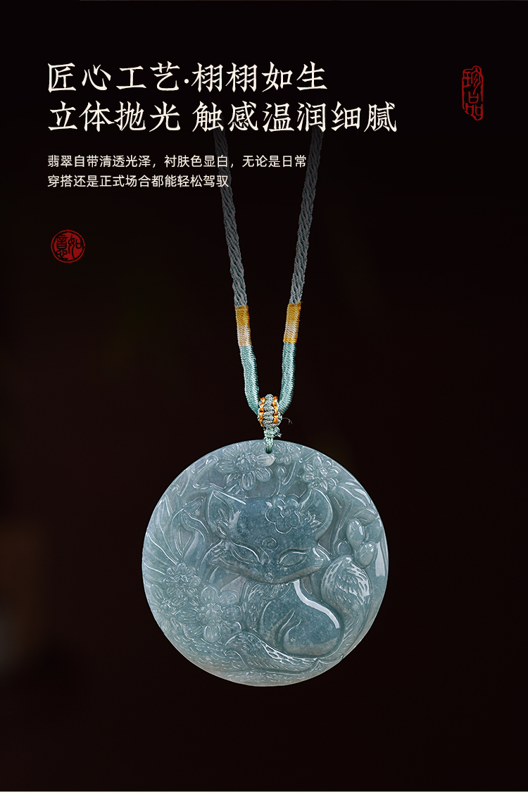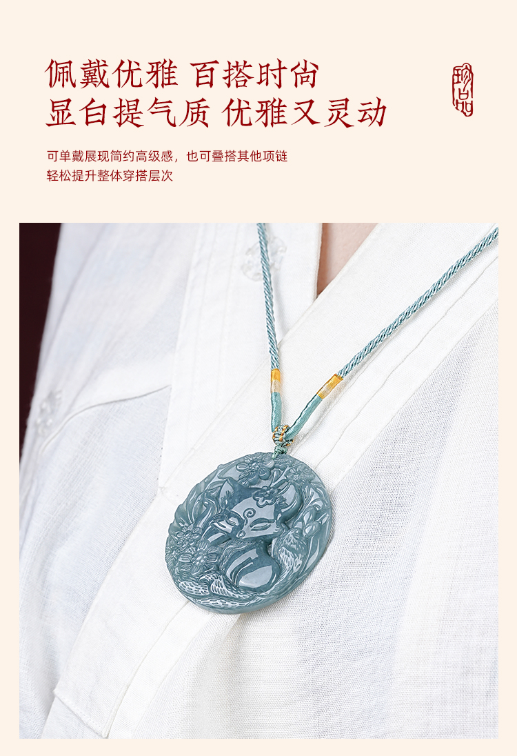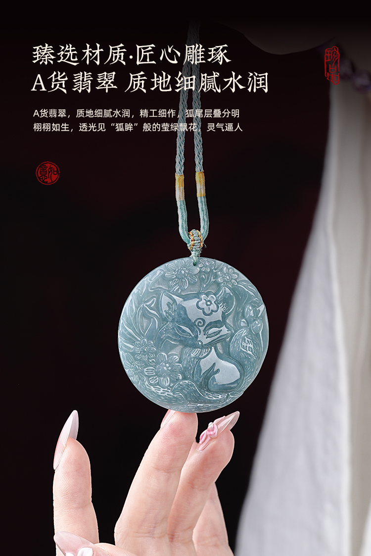 翡翠九尾狐吊坠项链高级感轻奢小众天然正品玉石小狐狸挂件