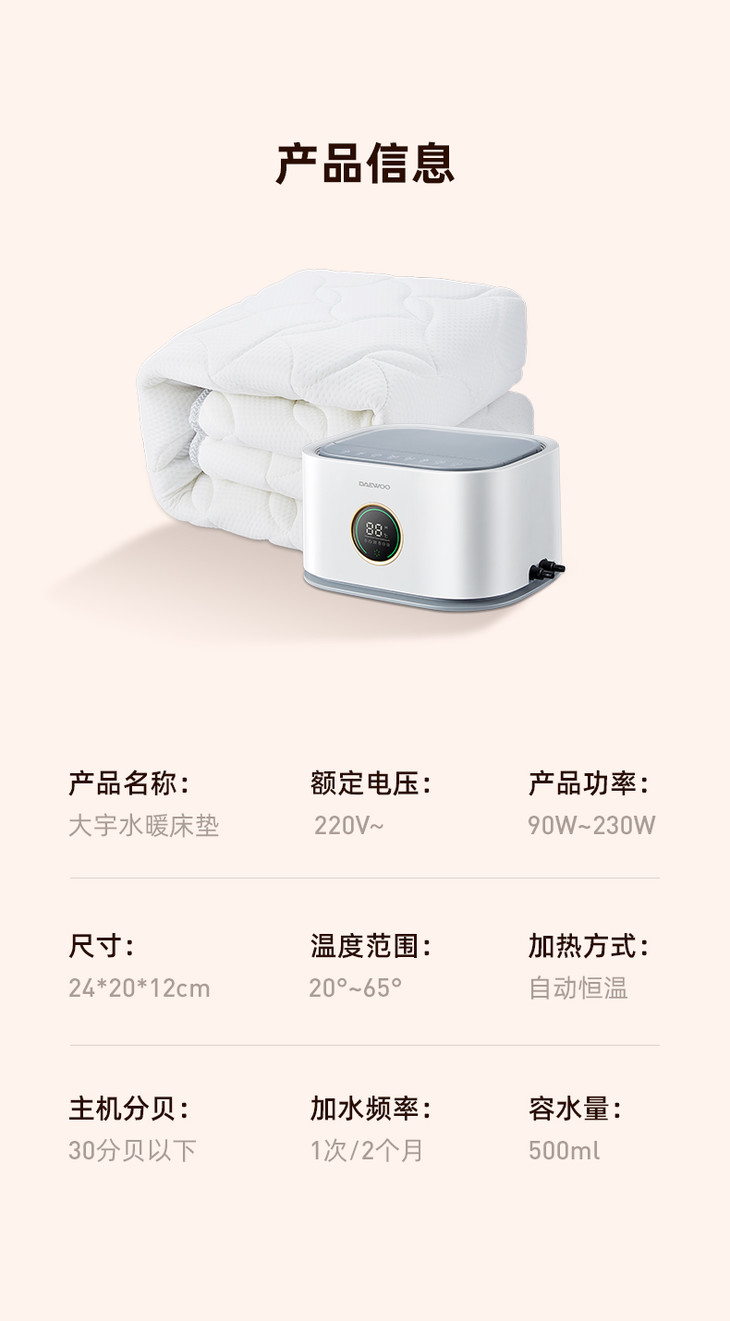 【大宇】大宇安全无辐射恒温不干燥母婴可用除螨烘被水暖电热毯DY-ST08