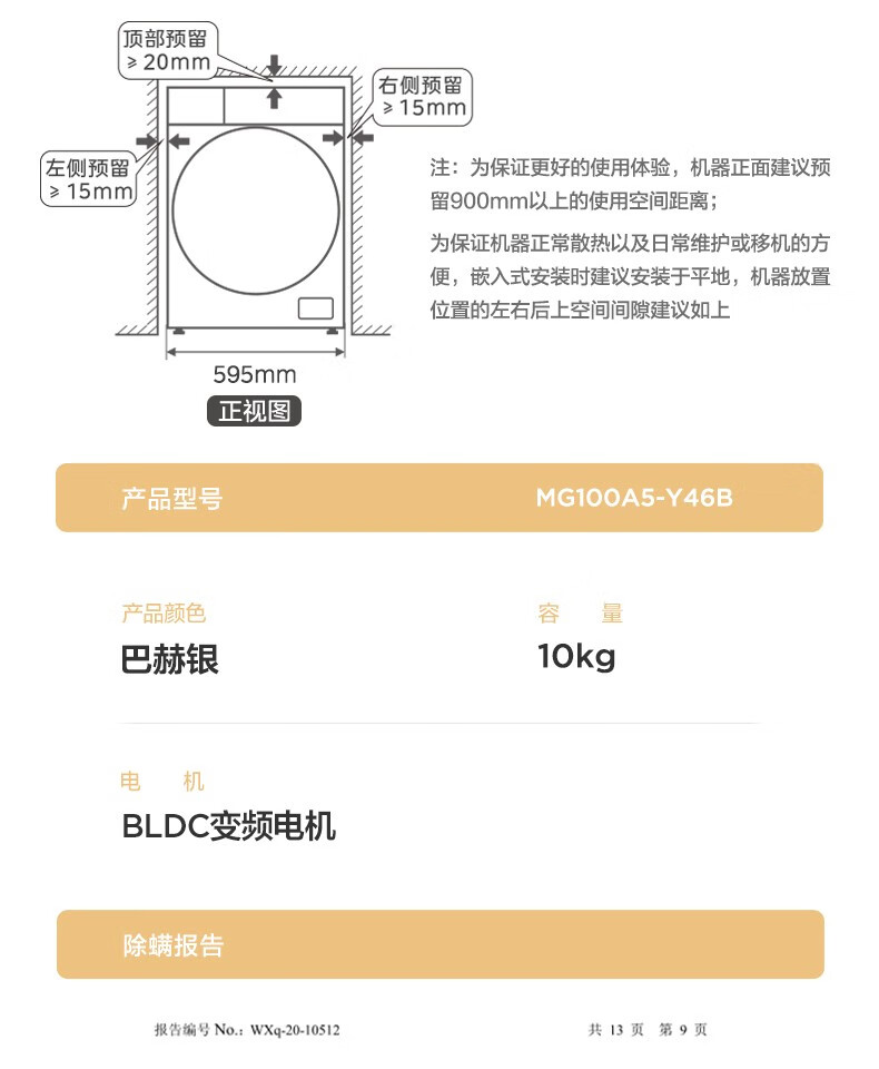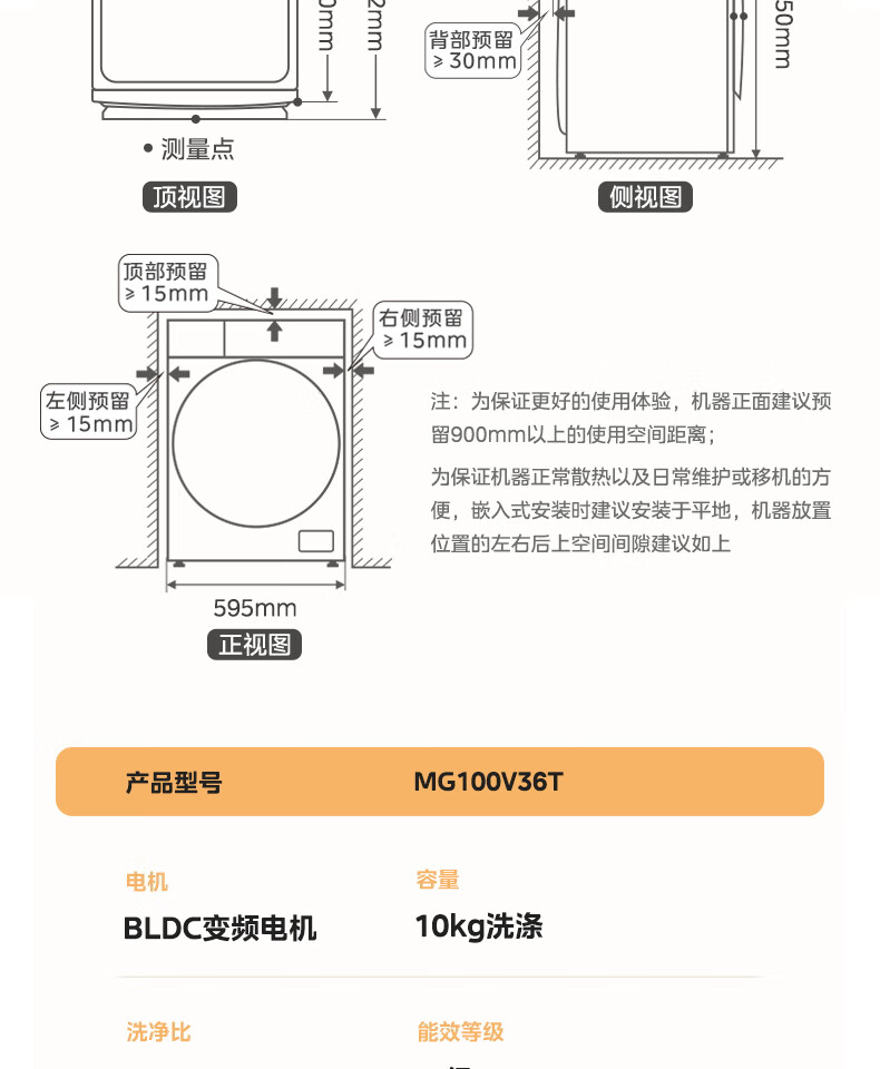 美的(Midea)洗衣机滚筒_MG100A5-Y46B【盈】
