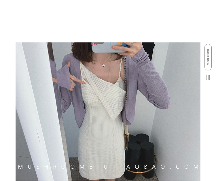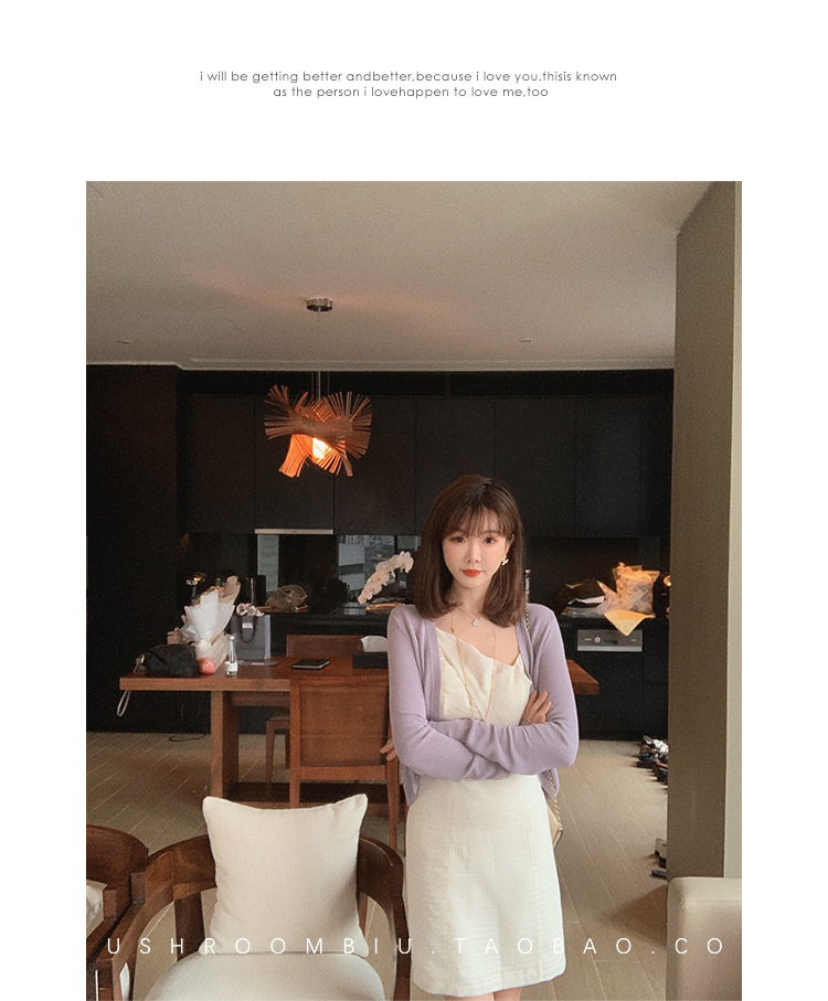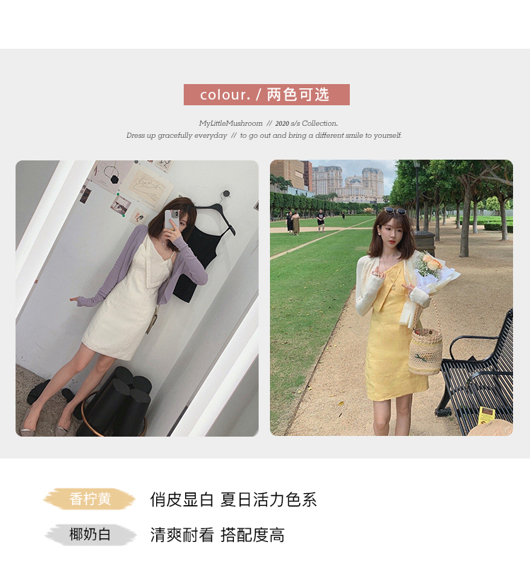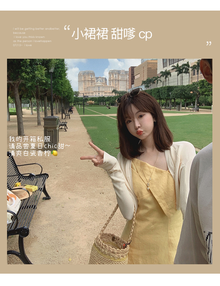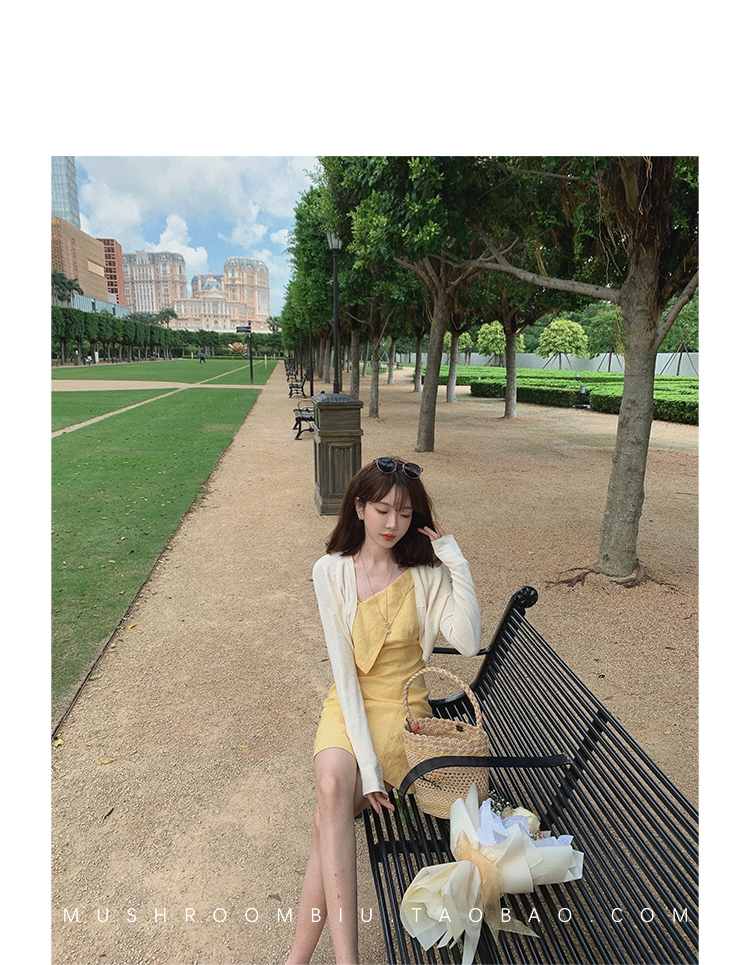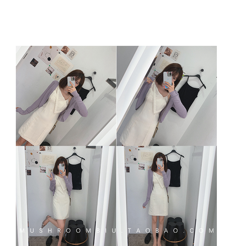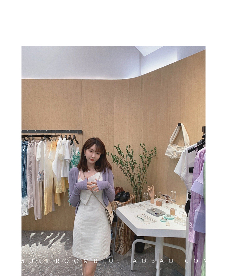 【金蘑菇菇 恋爱预感两件套】糖果色针织小开衫+修身吊带裙
