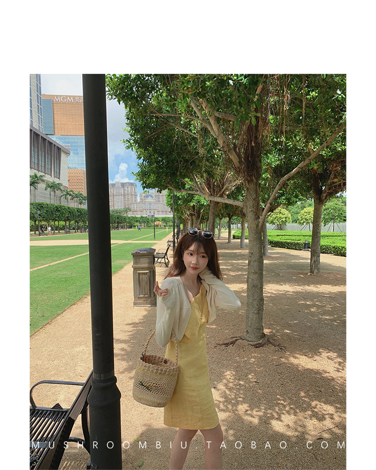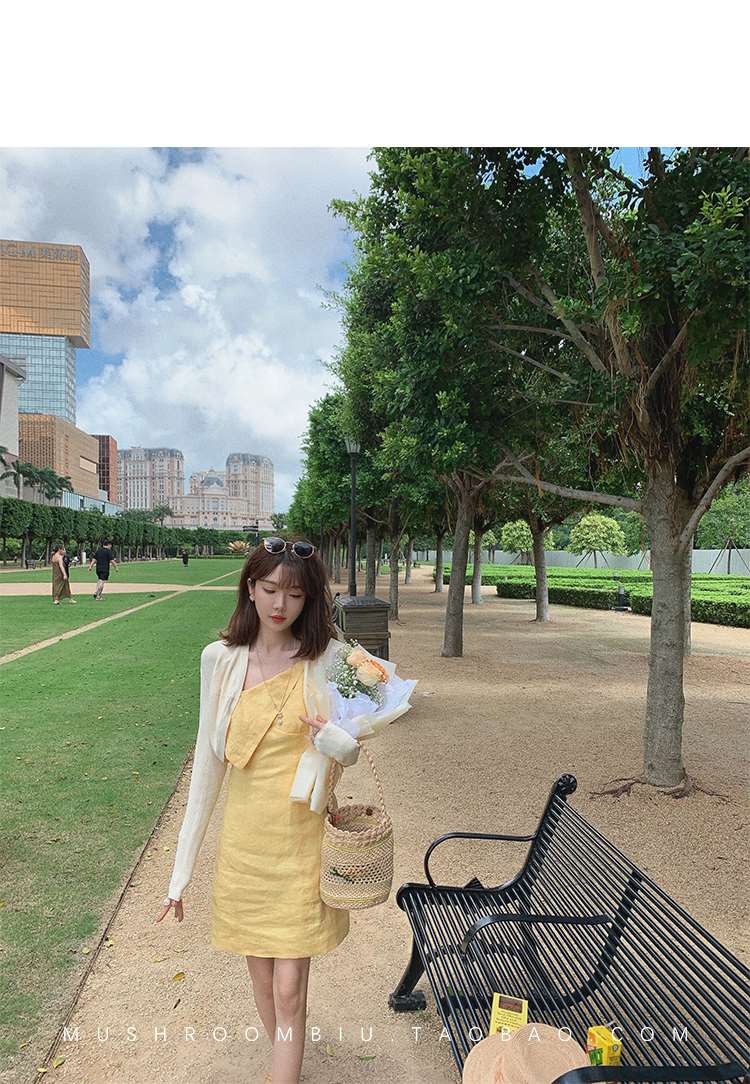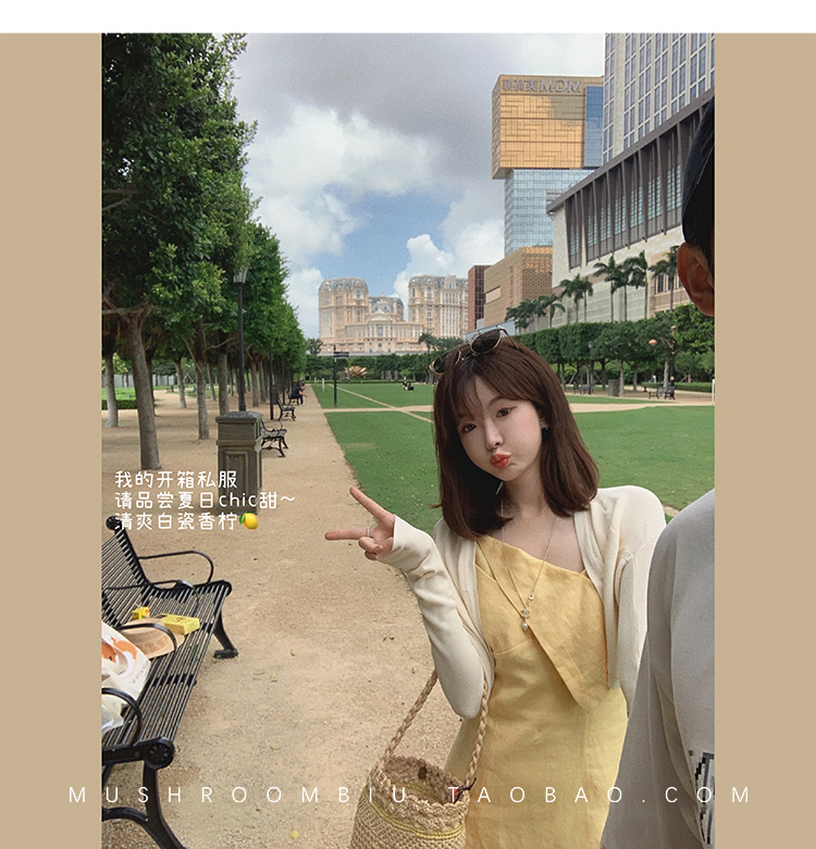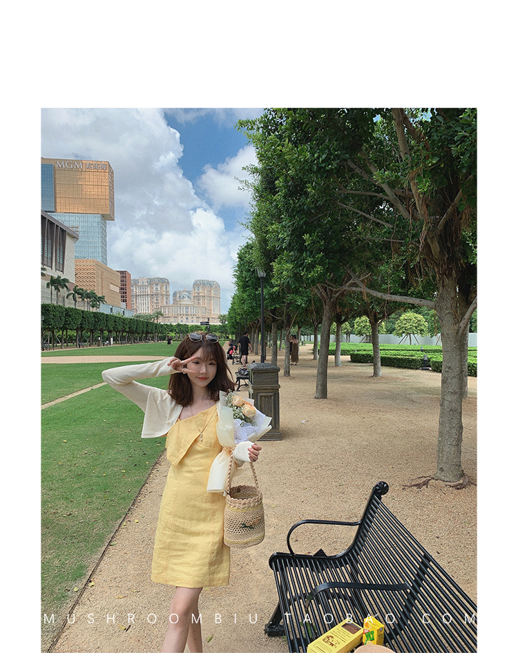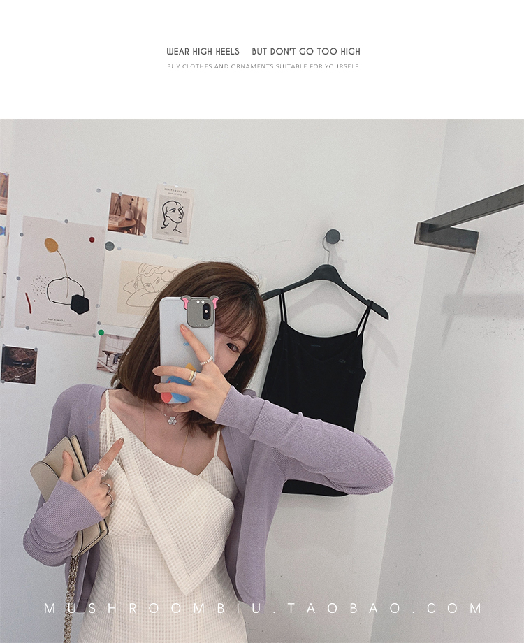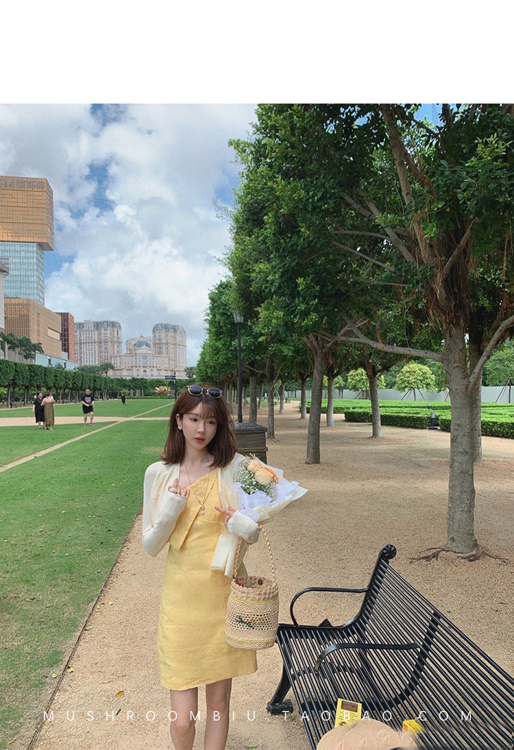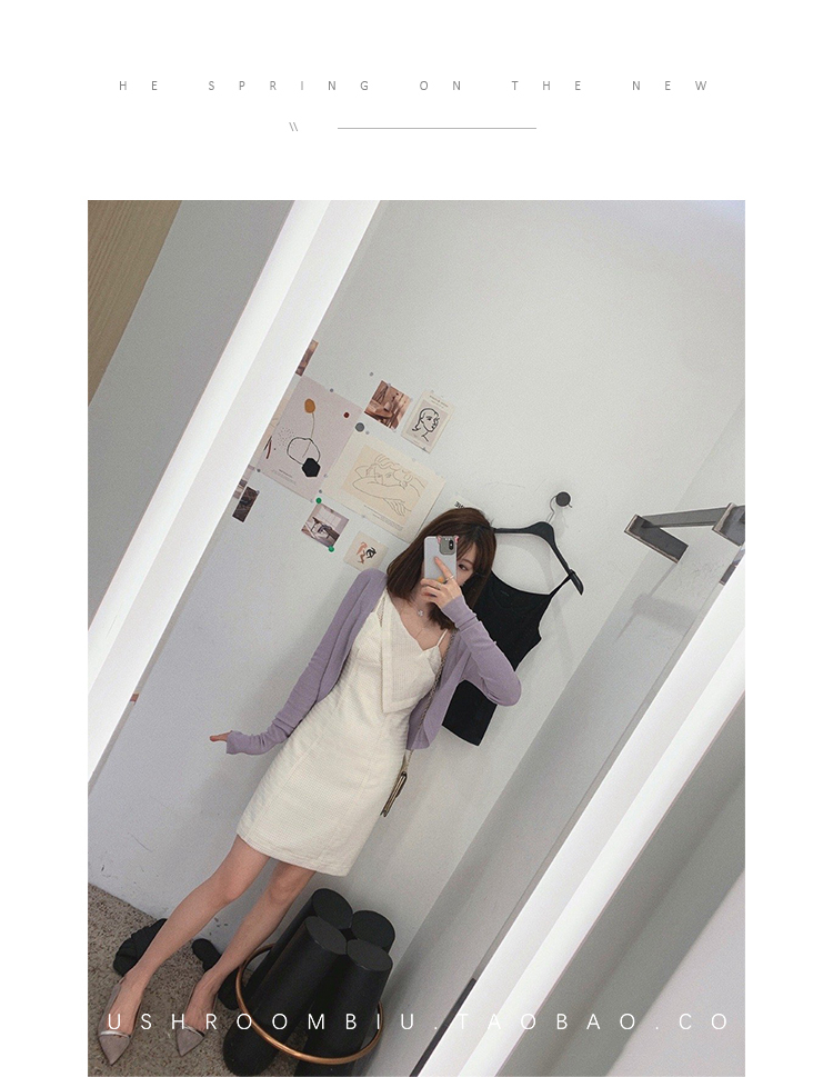 【金蘑菇菇 恋爱预感两件套】糖果色针织小开衫+修身吊带裙