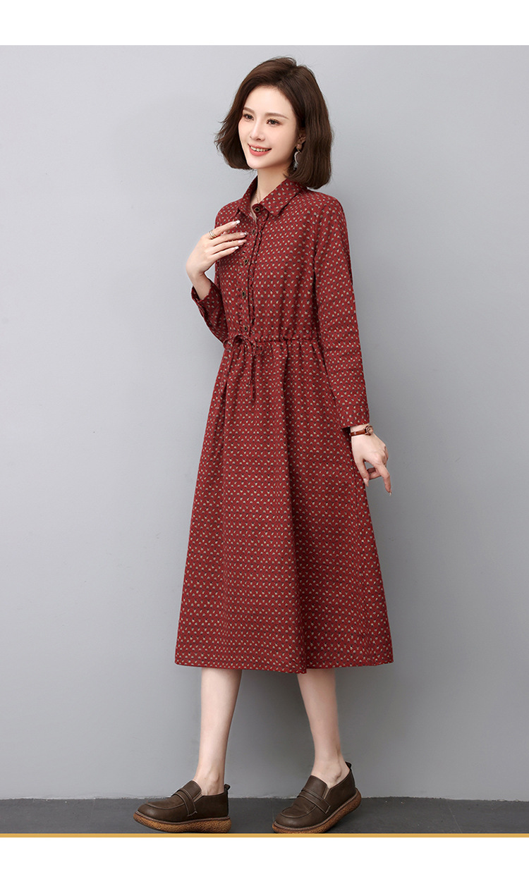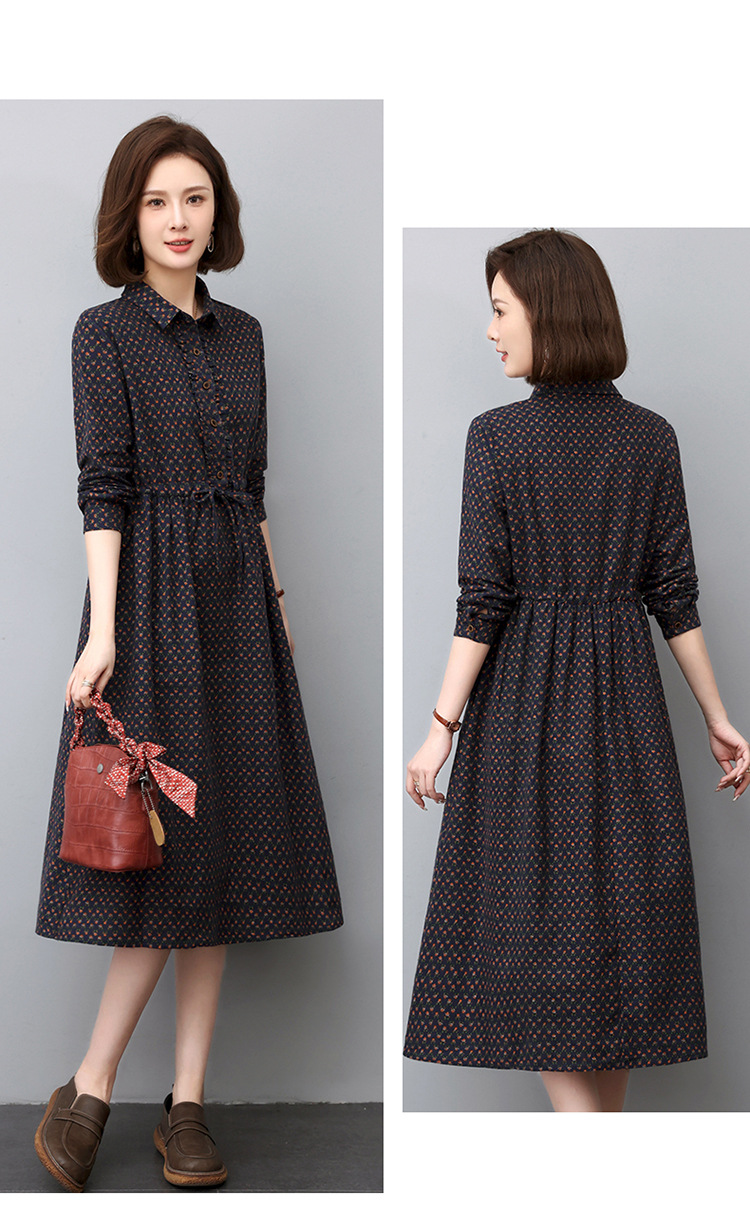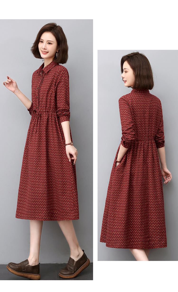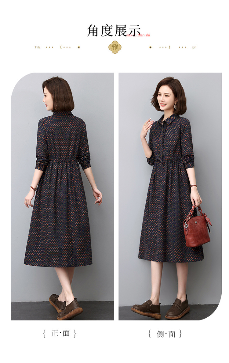 秋季新款,中长款韩版气质减龄波点长袖连衣裙HR-WJ23099