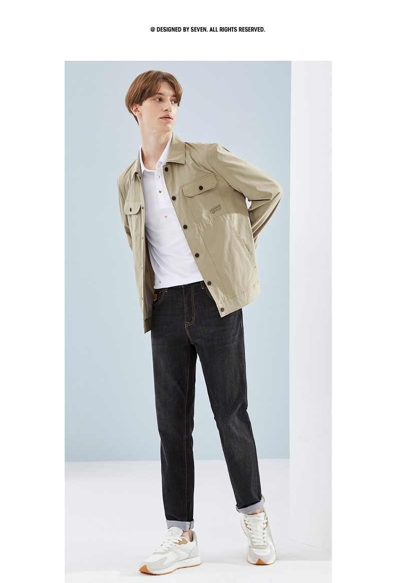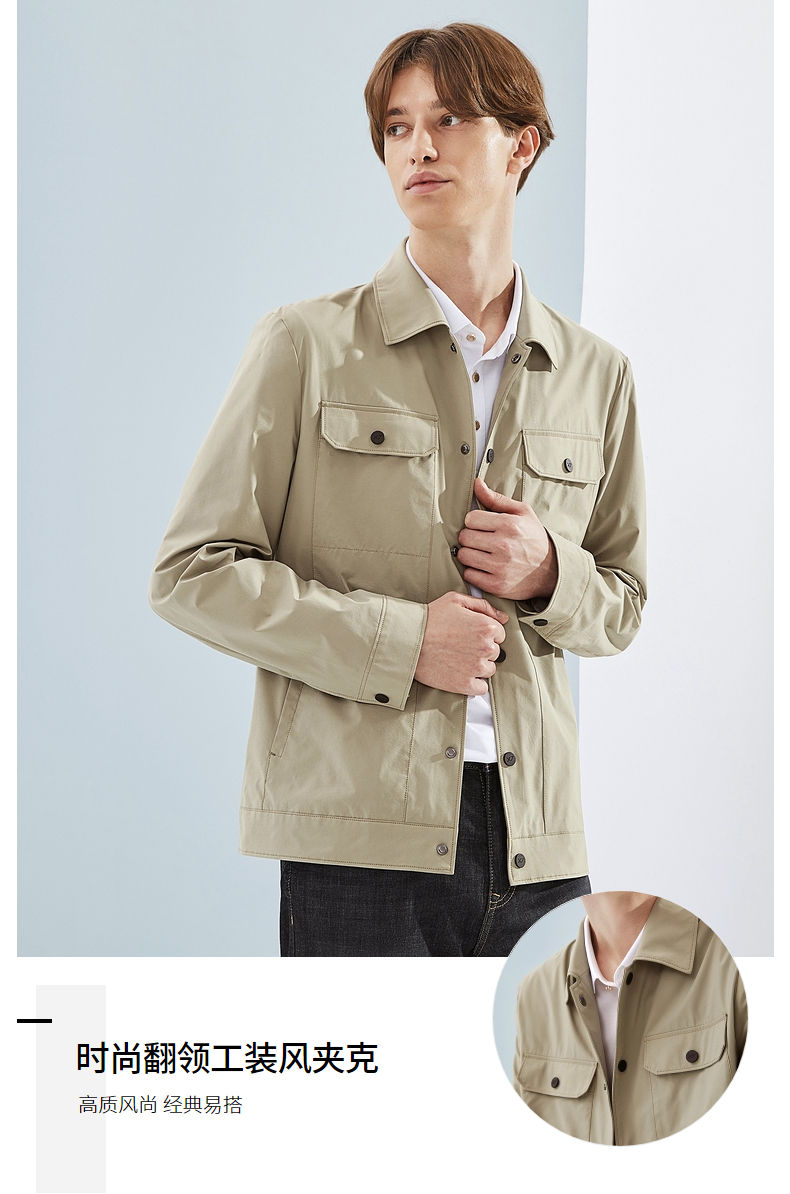 【特价】柒牌男士工装夹克春秋季时尚潮流青年休闲百搭翻领茄克衫外套 124K70120