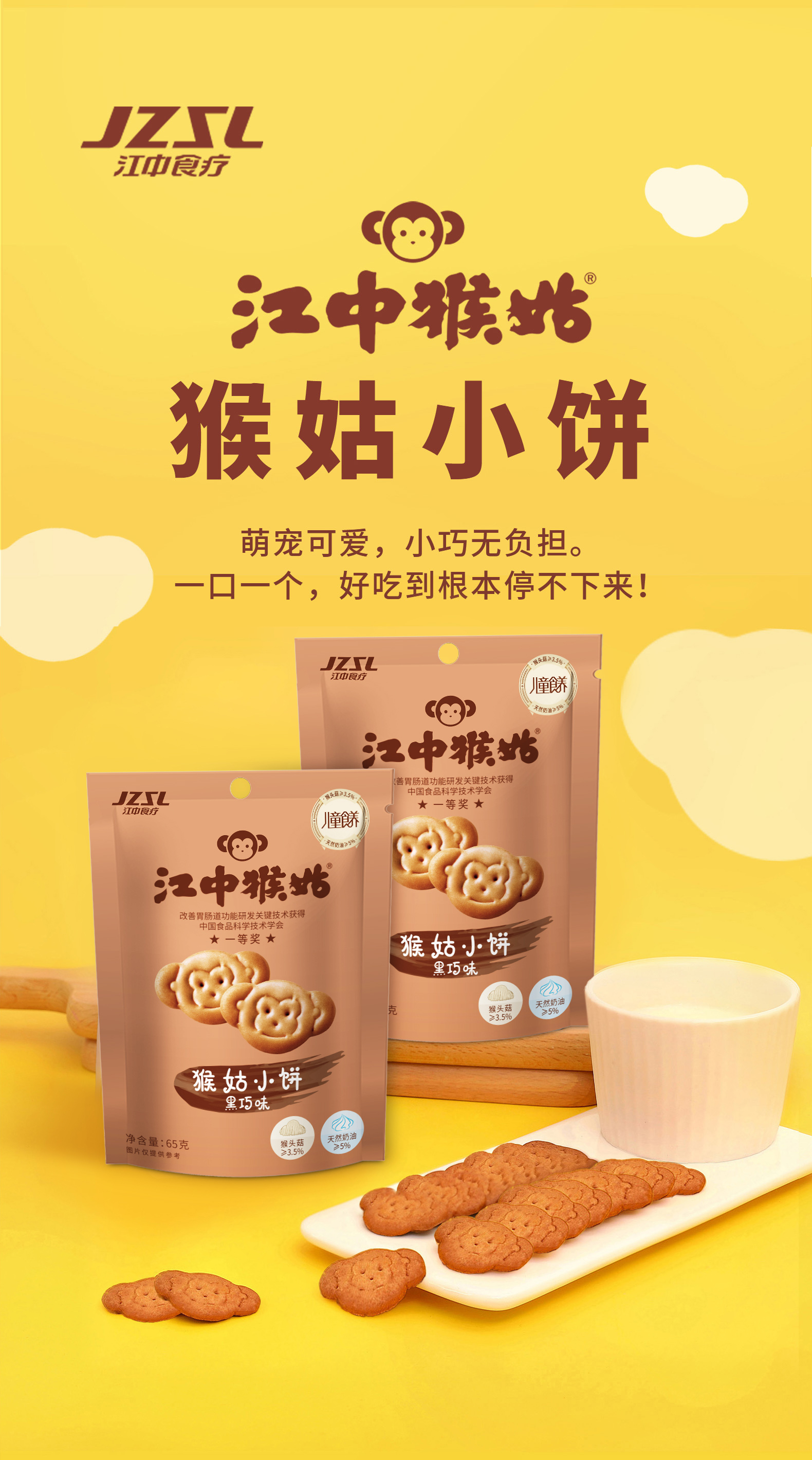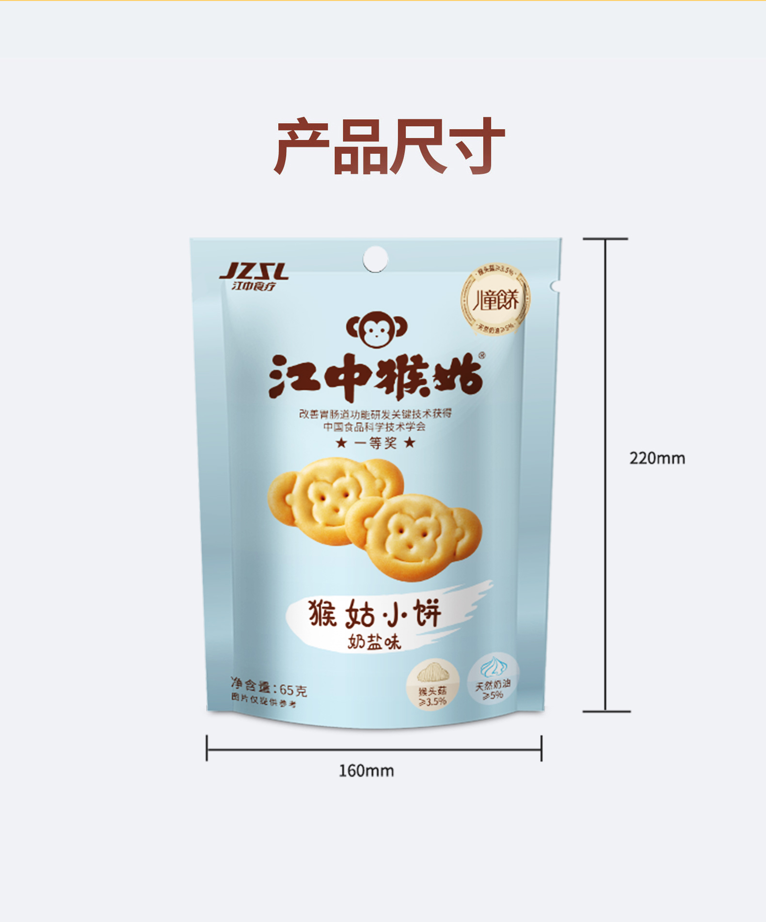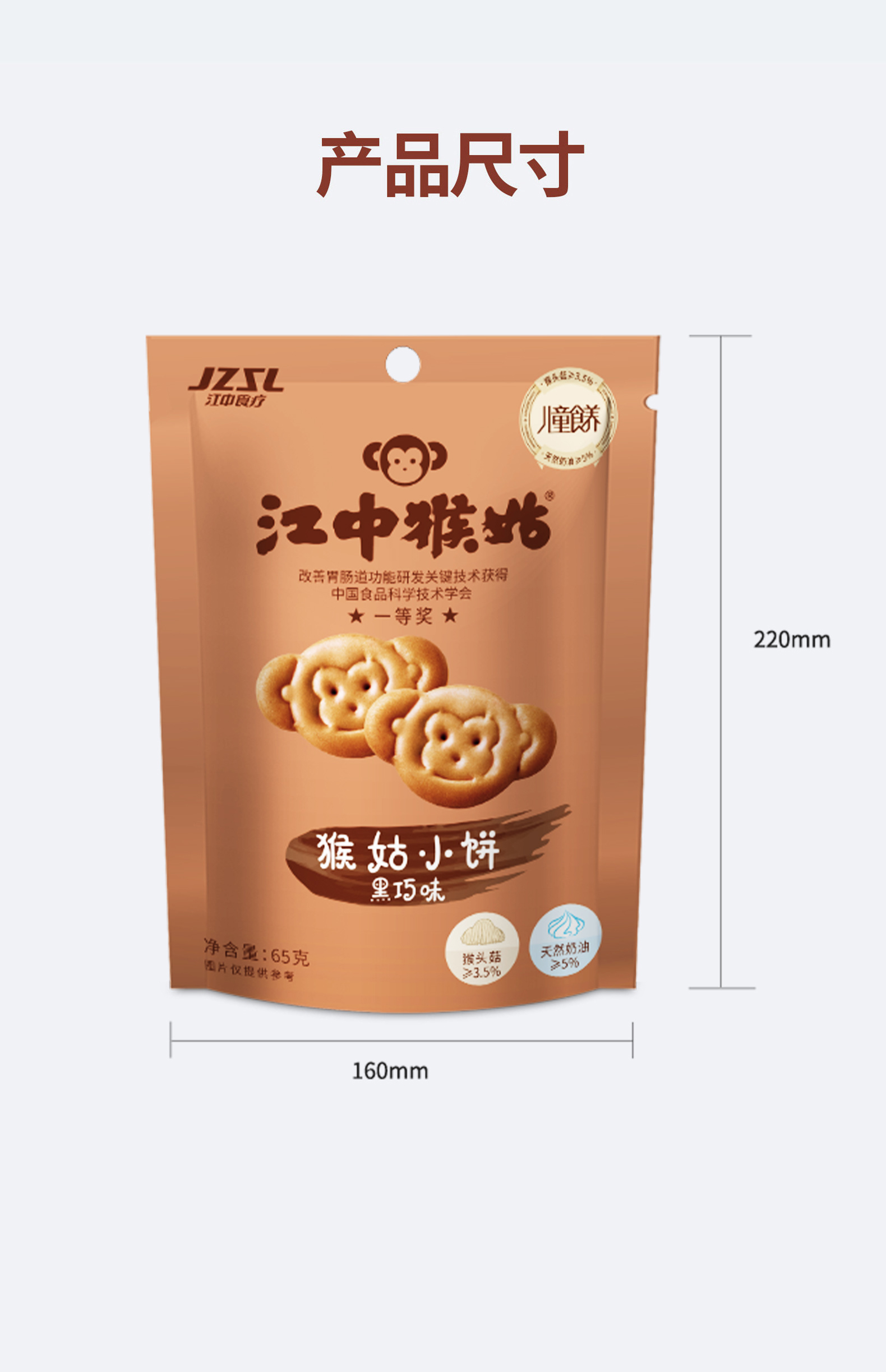 5袋*江中猴姑黑巧味/奶盐味小饼 65g/袋 65克小饼2025年9月生产/保质期12个月【小饼易碎 介意慎拍】