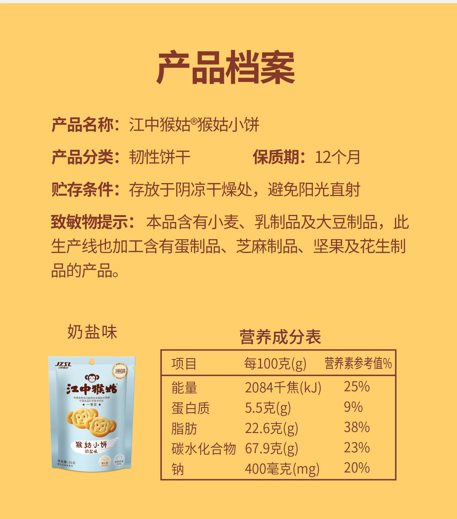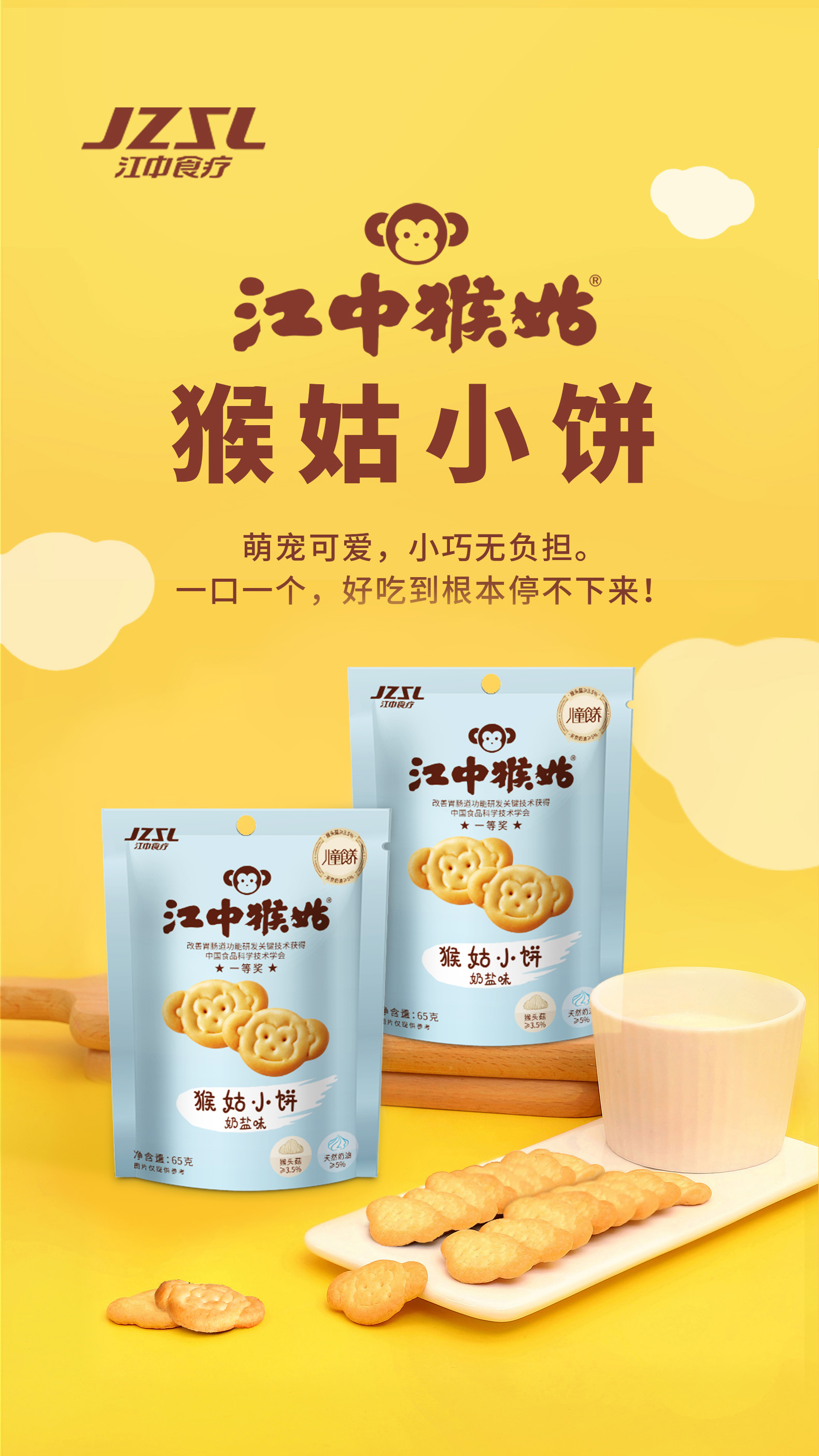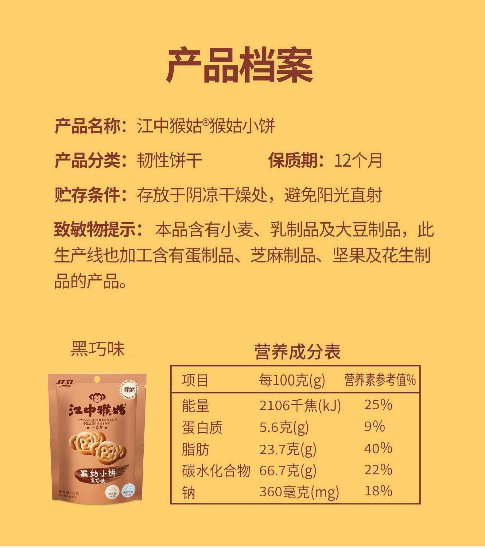 5袋*江中猴姑黑巧味/奶盐味小饼 65g/袋 65克小饼2025年9月生产/保质期12个月【小饼易碎 介意慎拍】