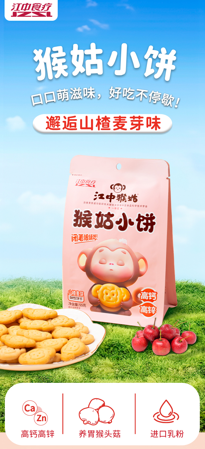 5袋*江中猴姑小饼 奶盐味/蛋奶味/山楂麦芽味55g/袋 健康小零食随身携带2026年2-3月生产/保质期12个月【小饼易碎 介意慎拍】