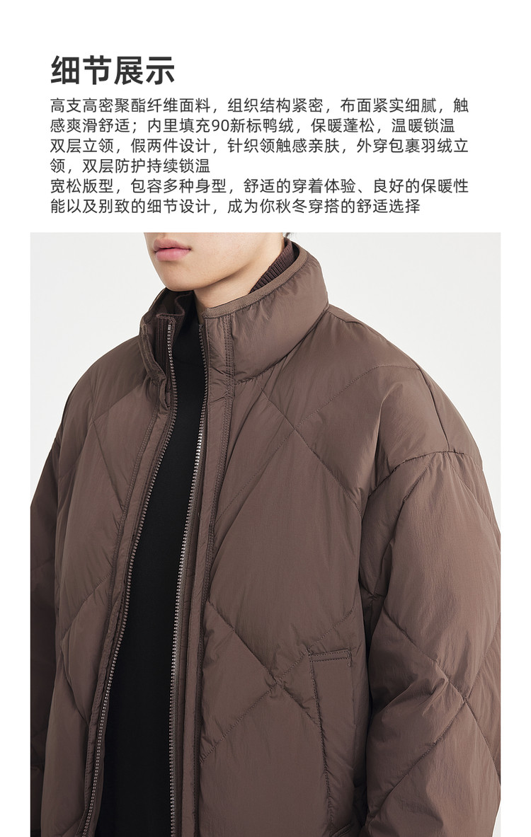 墨麦客男装2025年冬季新款双层立领假两件羽绒服男士户外御寒外套