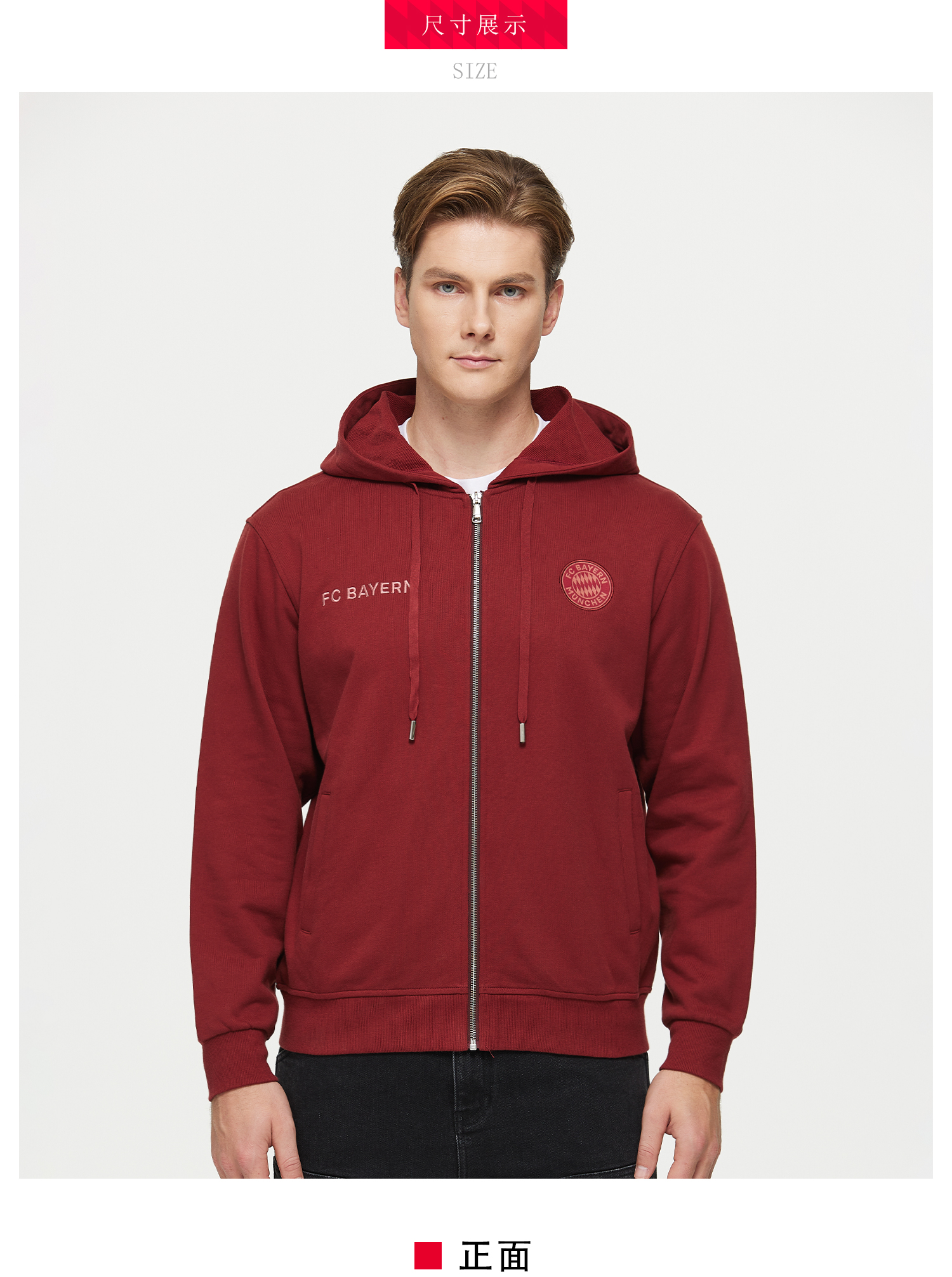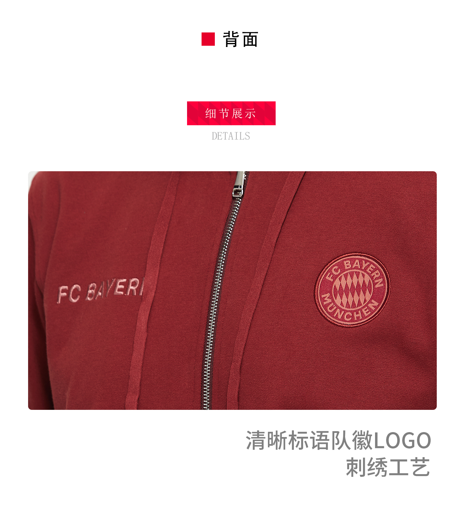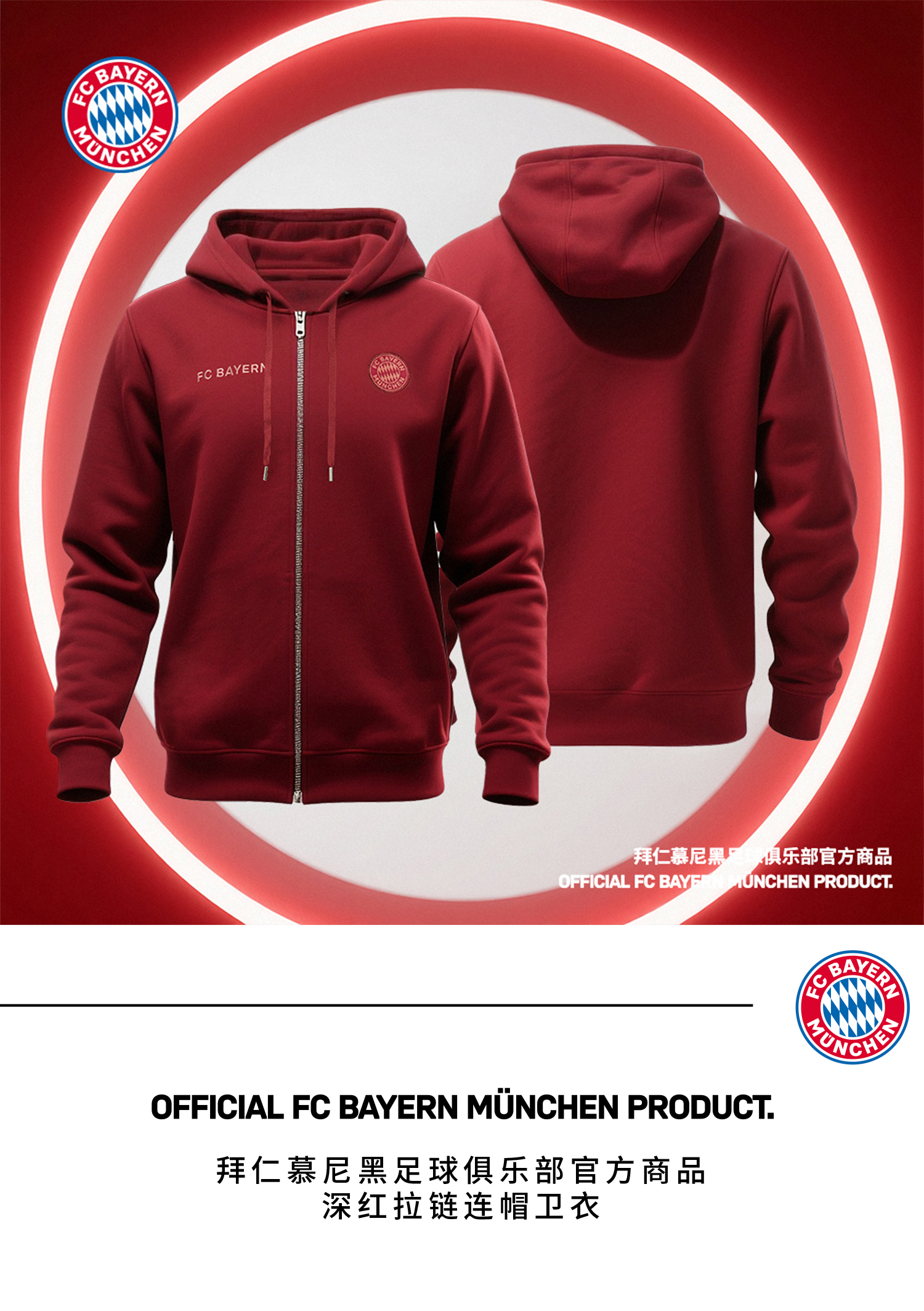 【官方正版】拜仁足球俱乐部丨深红连帽卫衣男女款运动休闲外套