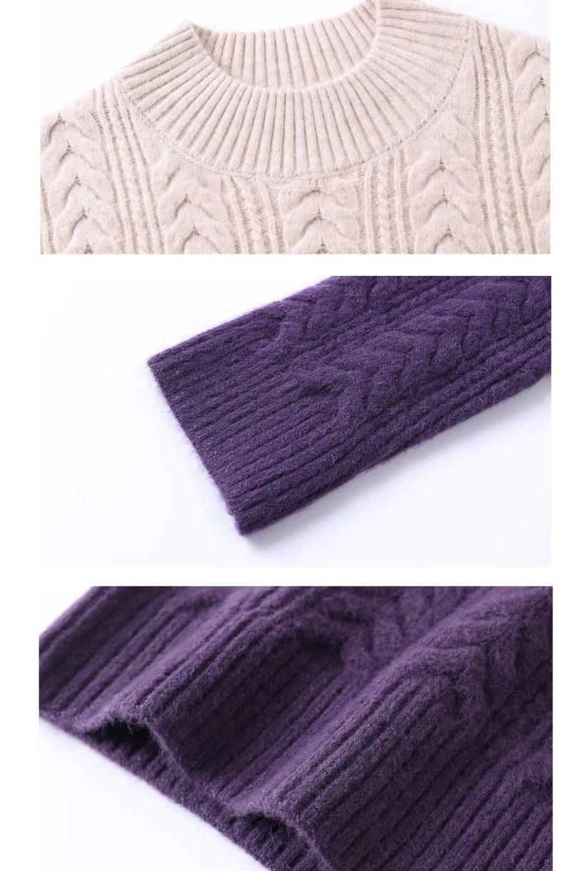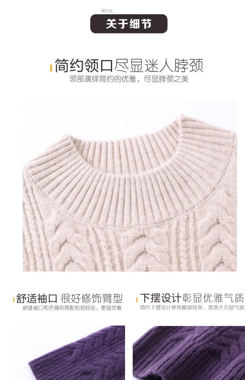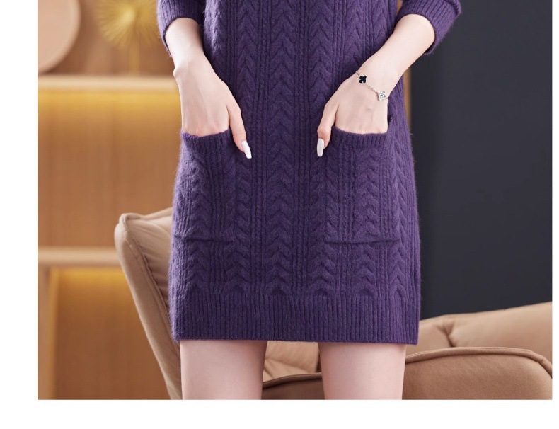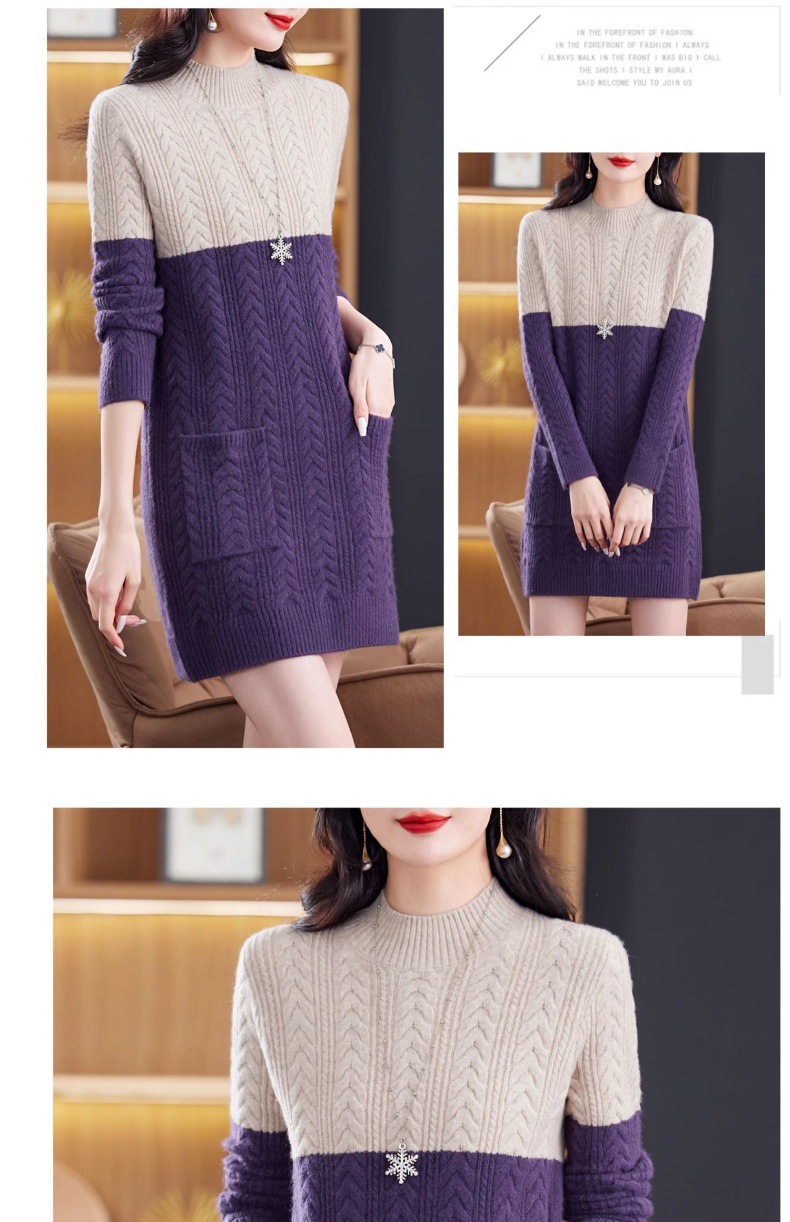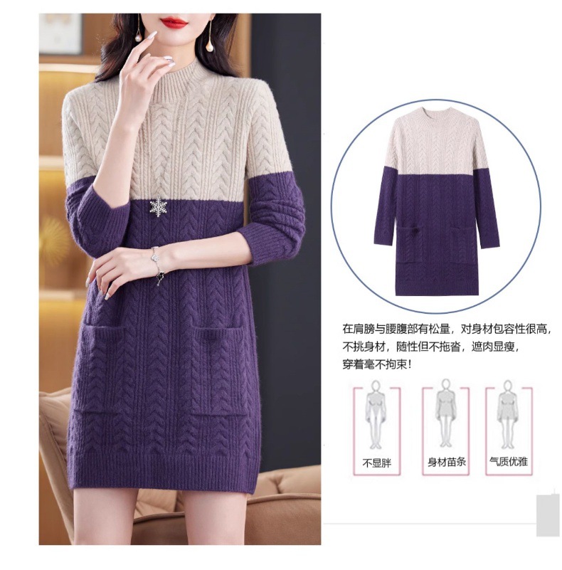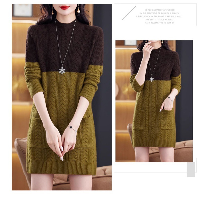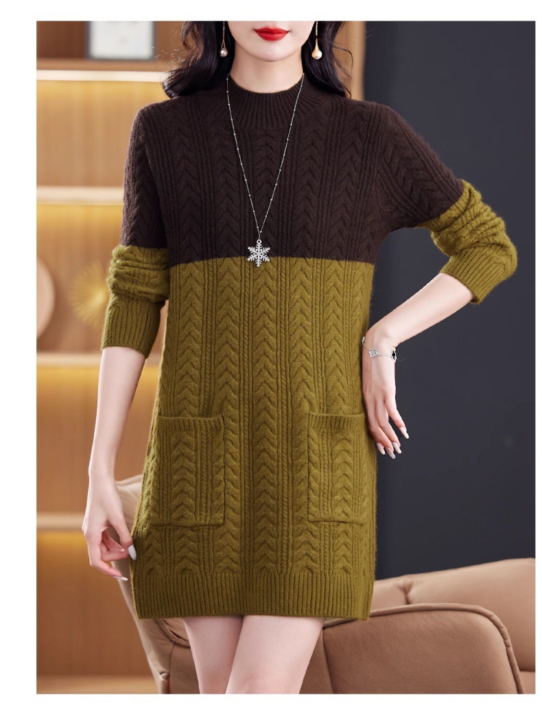 半高领中长款女士毛衣,冬季新款拼色螺纹口袋针织打底衫上衣CC-XX-3778