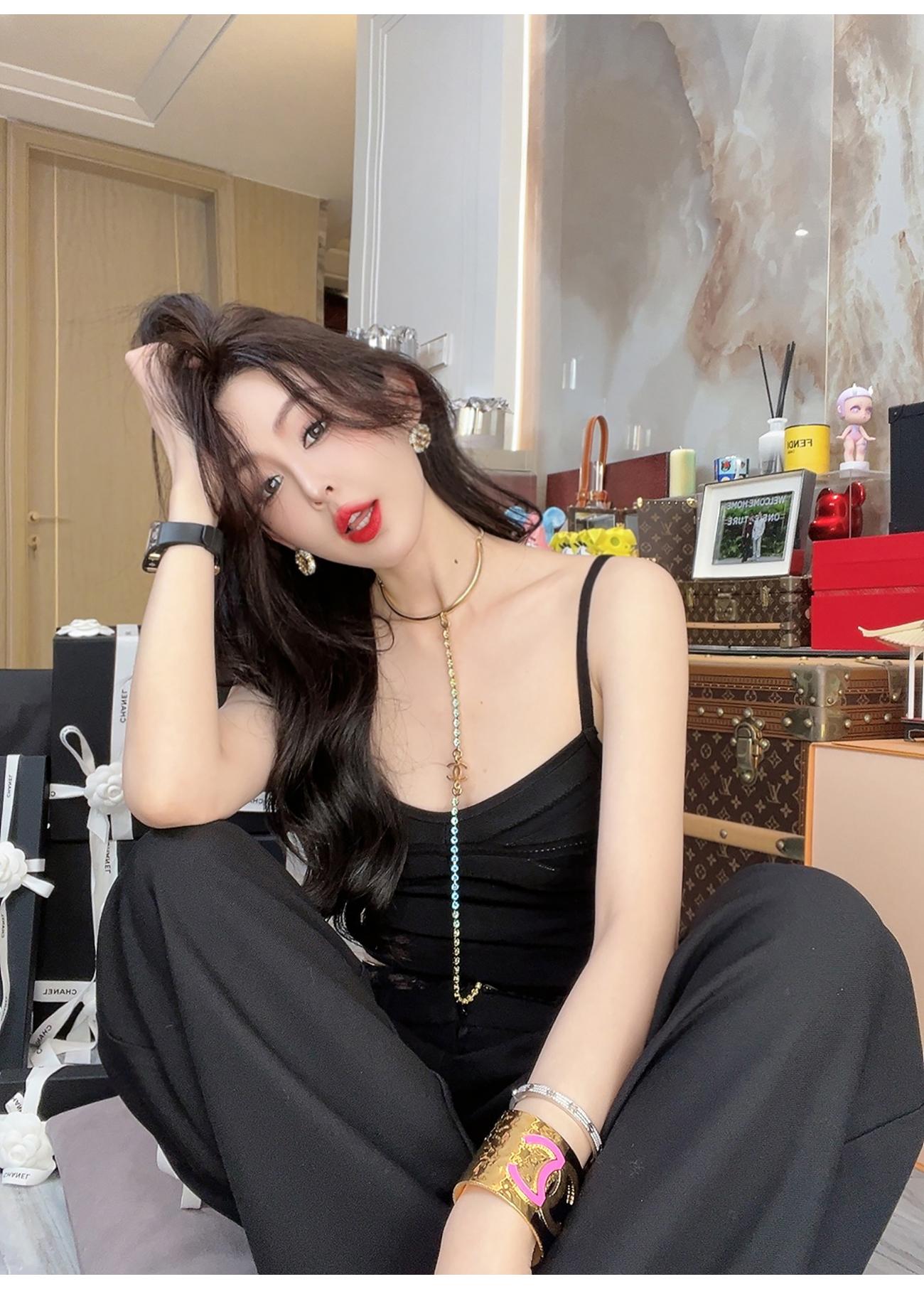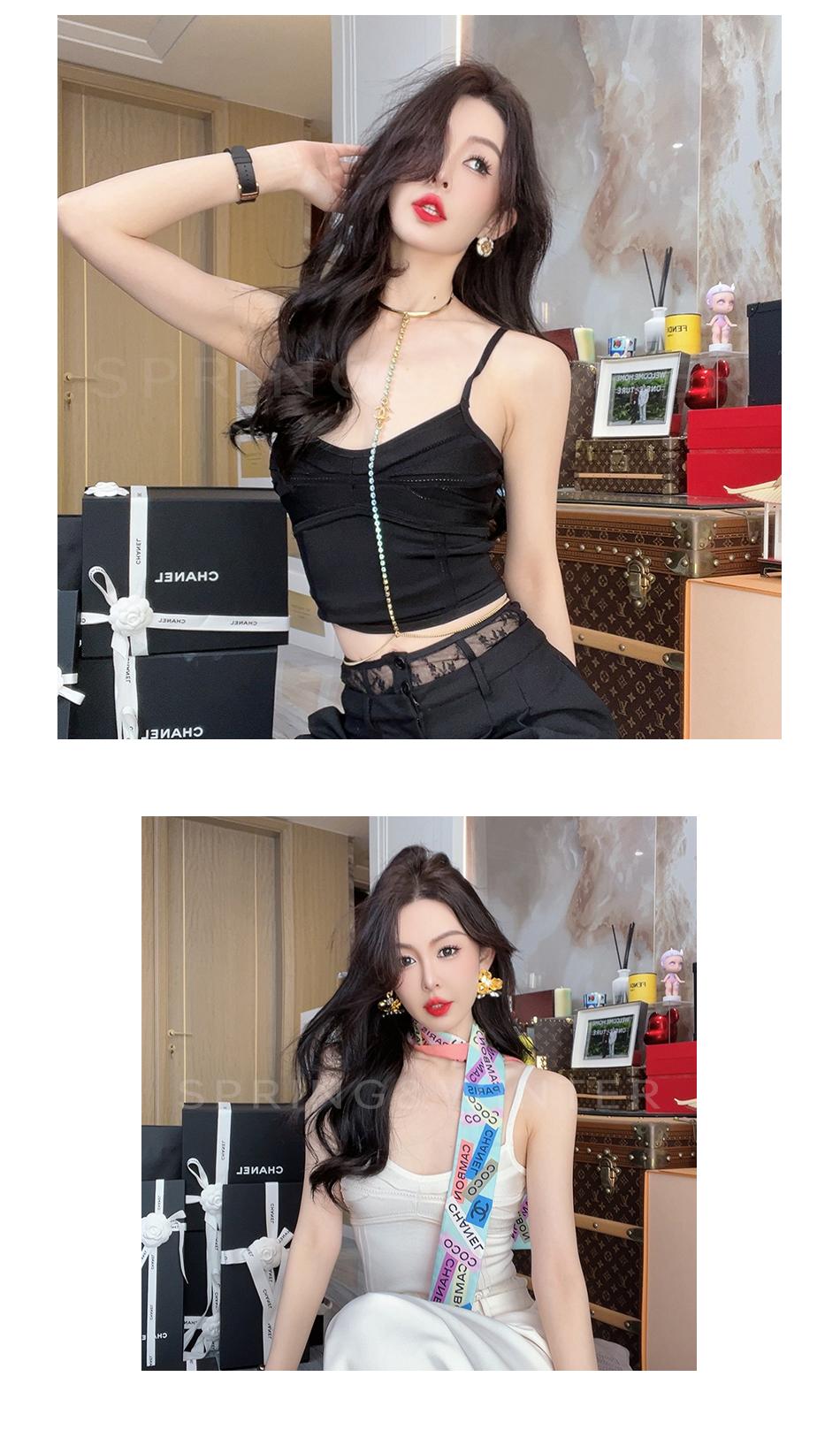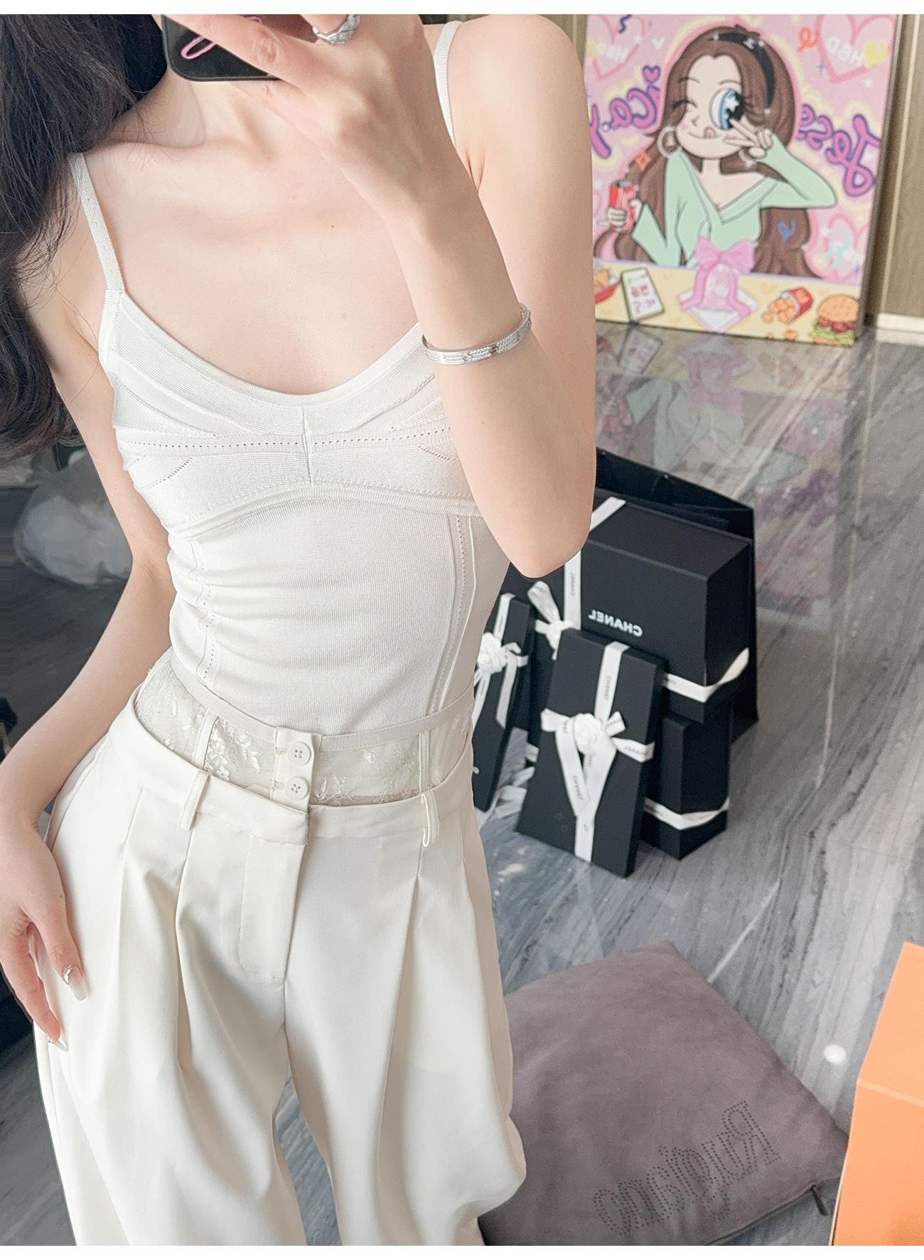 余潇潇【奶系香肩】百搭透气凉爽光丝挑孔舒适性感时尚线条感吊带夏