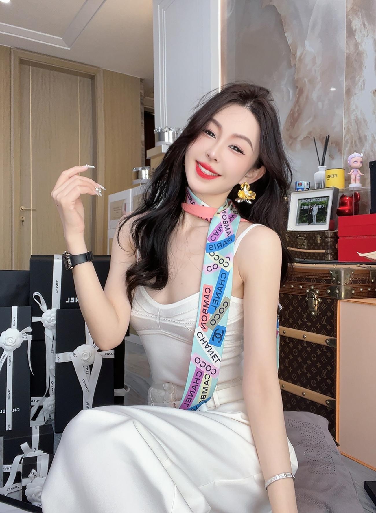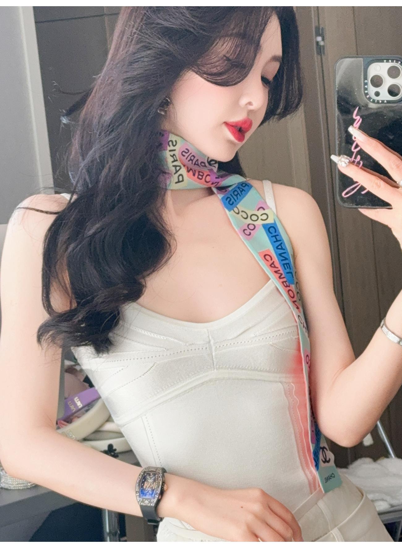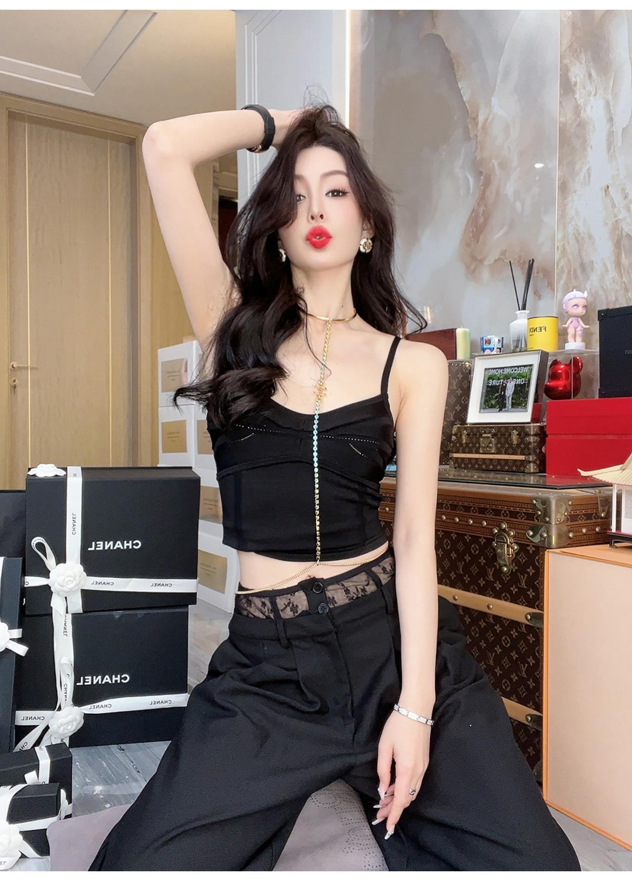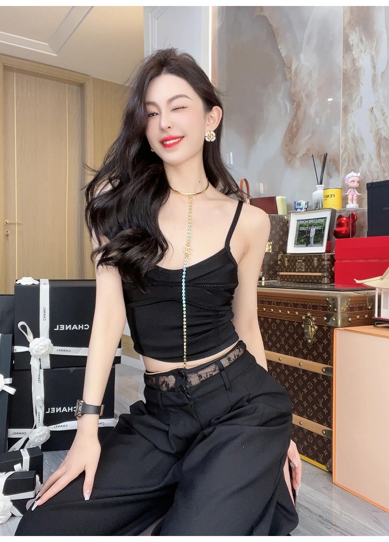余潇潇【奶系香肩】百搭透气凉爽光丝挑孔舒适性感时尚线条感吊带夏