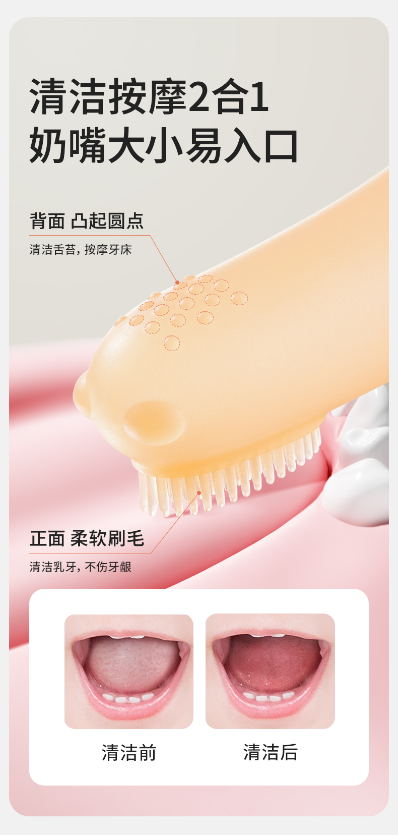 婴儿手指套牙刷硅胶软毛0到3岁宝宝婴幼儿乳牙刷舌苔口腔清洁刷牙