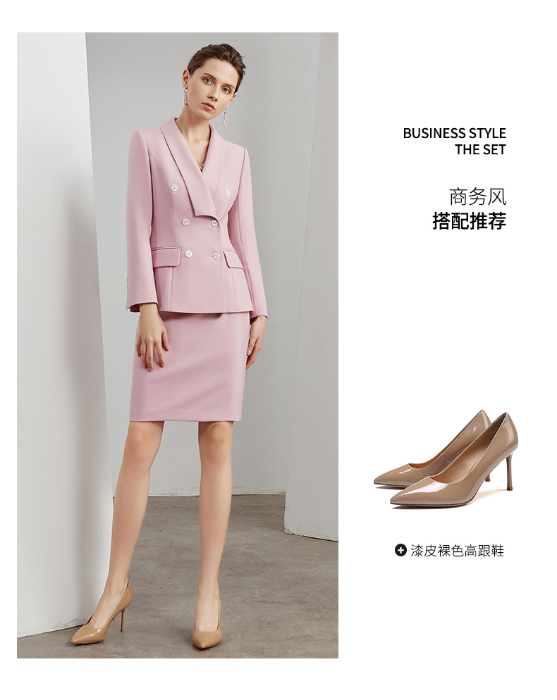 IWY/粉色职业西服套裙女时尚气质名媛主持人上镜面试Ol正装 C10338-P+S10338-P