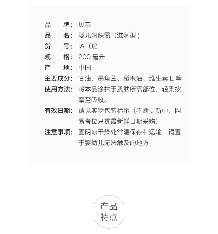 【一般贸易】日本贝亲Pigeon婴儿润肤露(滋润型)200ML IA102