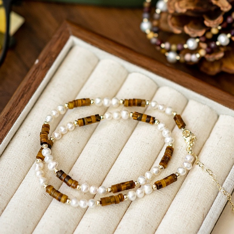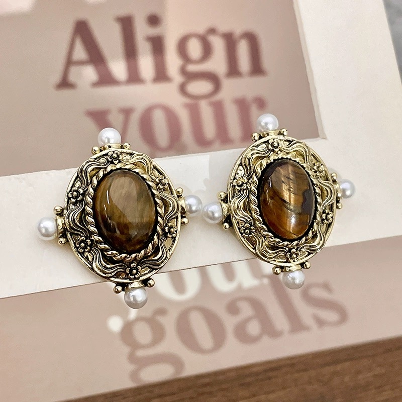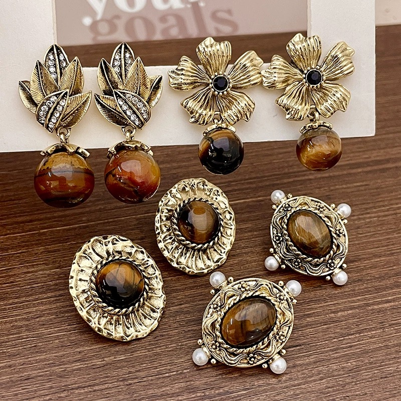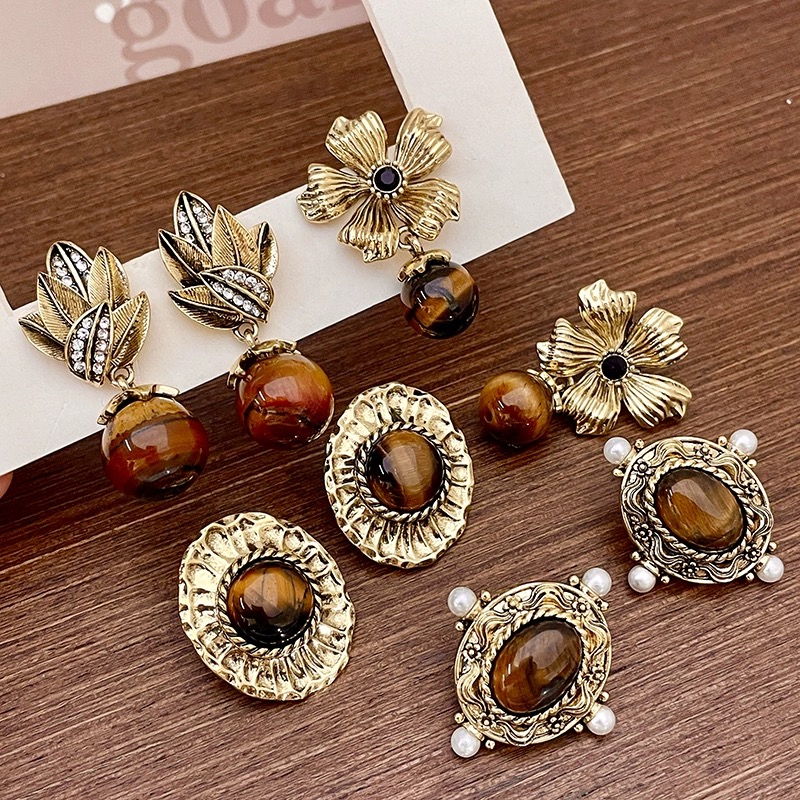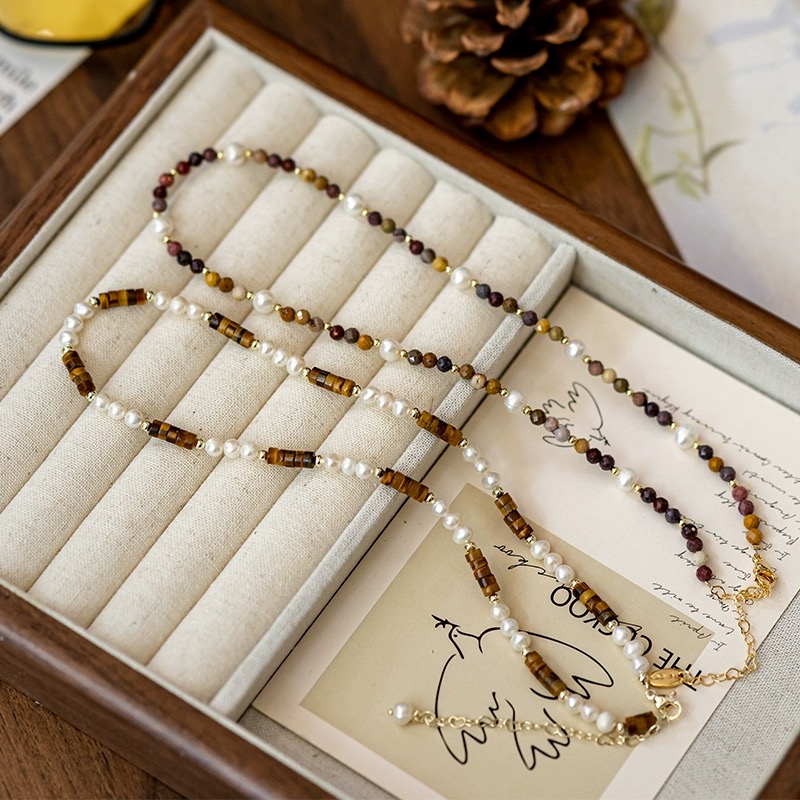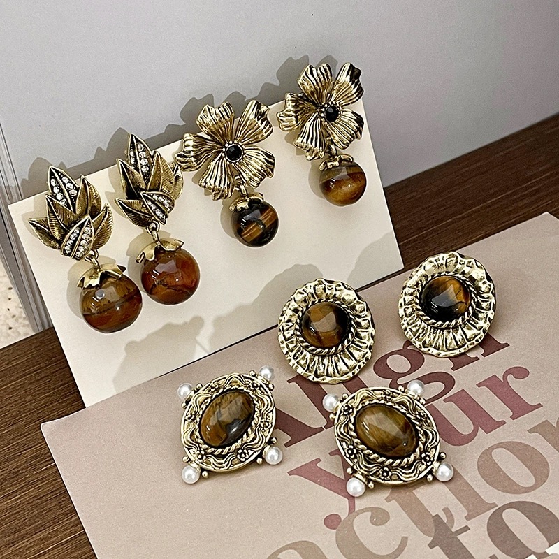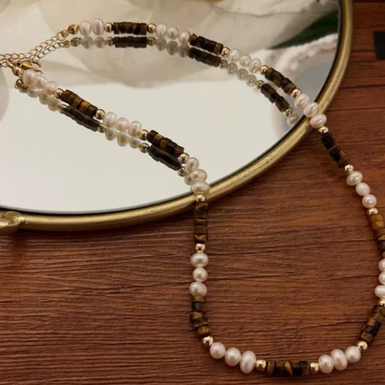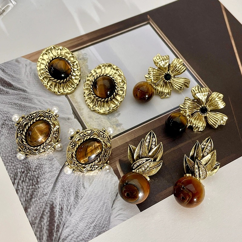 【双12嗨购节】【全球购·花少同款】BAOFANDI虎眼石系列秋冬美拉德 中古虎眼石耳饰套装S925银针防过敏 虎眼石多宝拼色套装 拼色巴洛克珍珠项链·国庆现货开抢