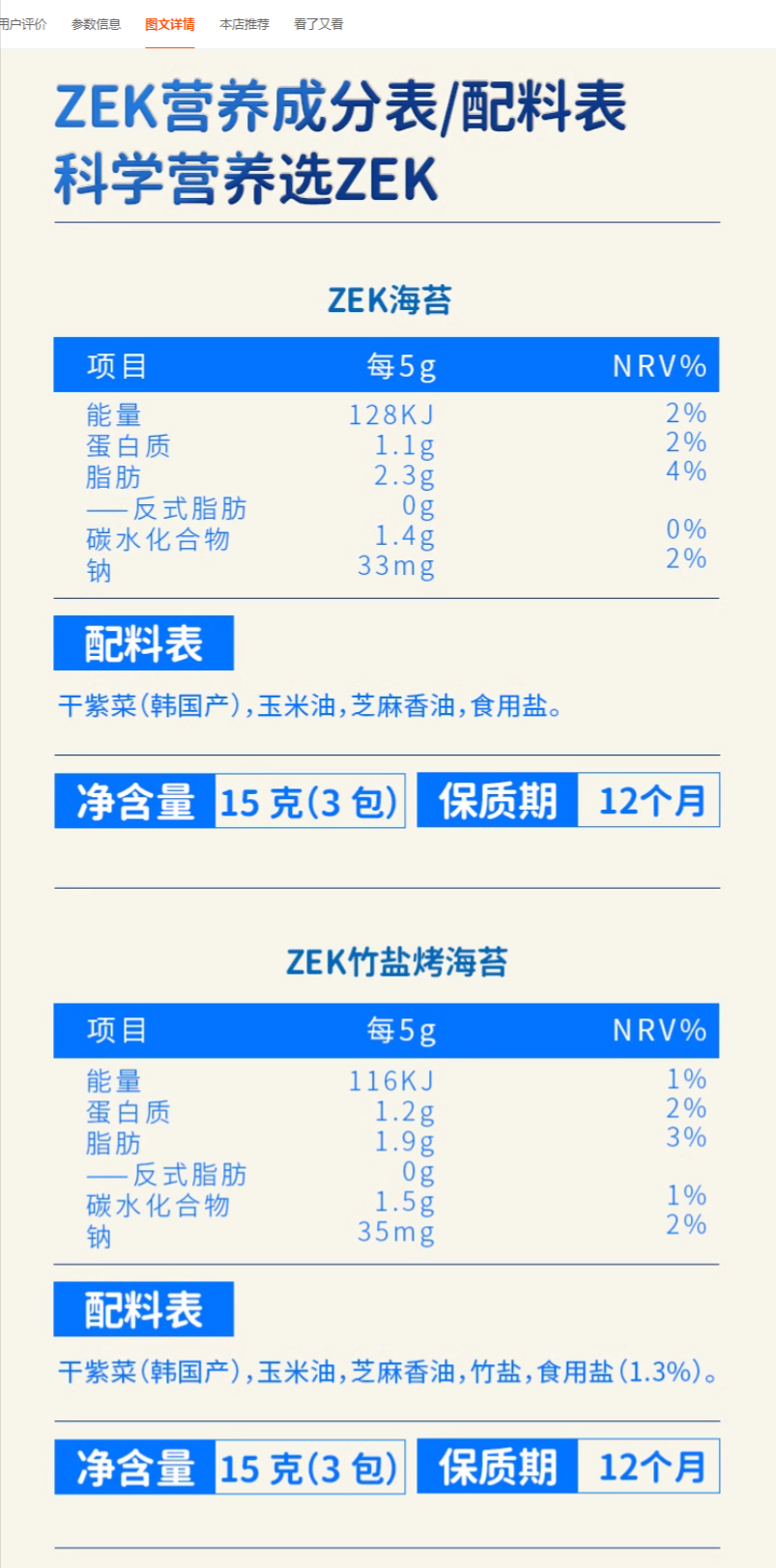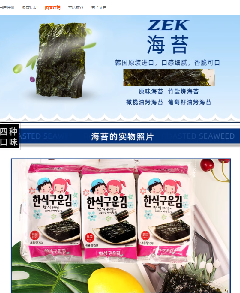 韩国ZEK烤海苔 原味15克(5g*3包)