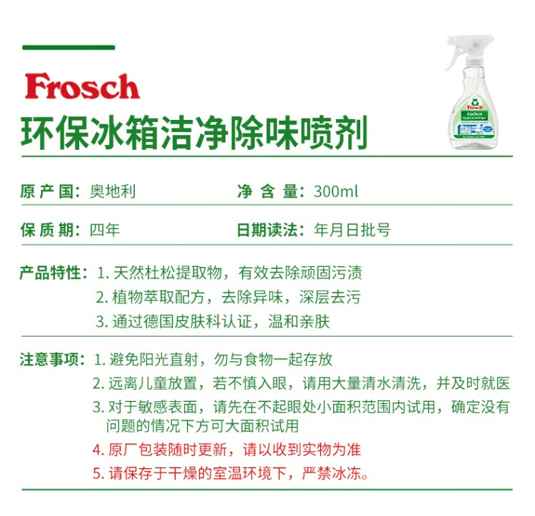 Frosch福纳丝 环保冰箱洁净除味喷剂300ml