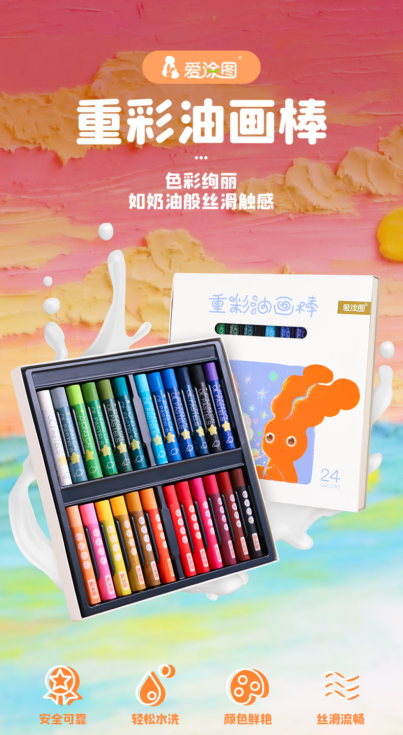 爱涂图重彩棒马卡龙色粉笔幼儿园可水洗水溶重彩油画棒儿童涂鸦笔