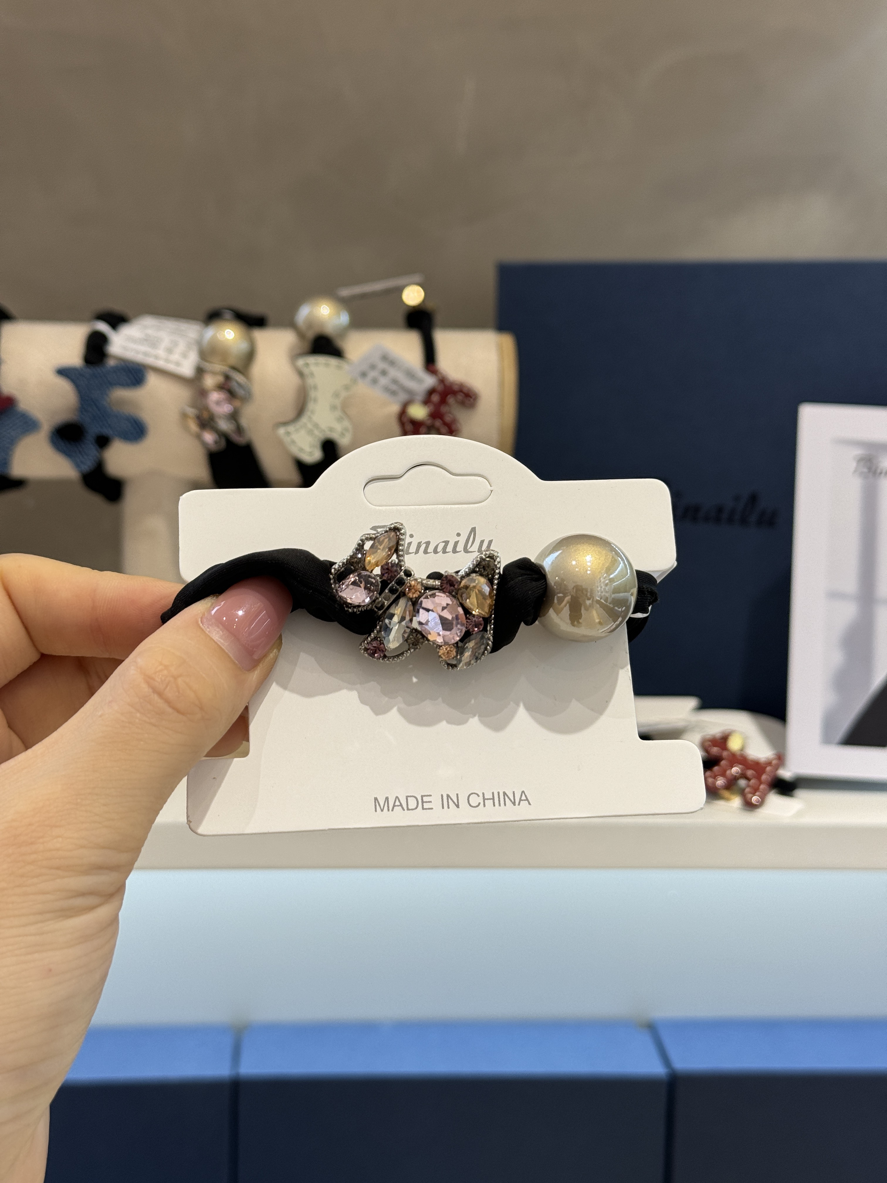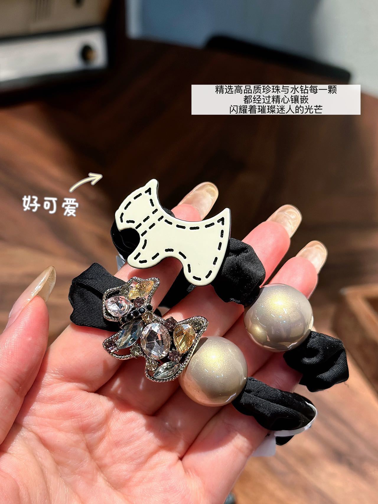 高级感:这款发圈以其独特的黑色调配珍珠