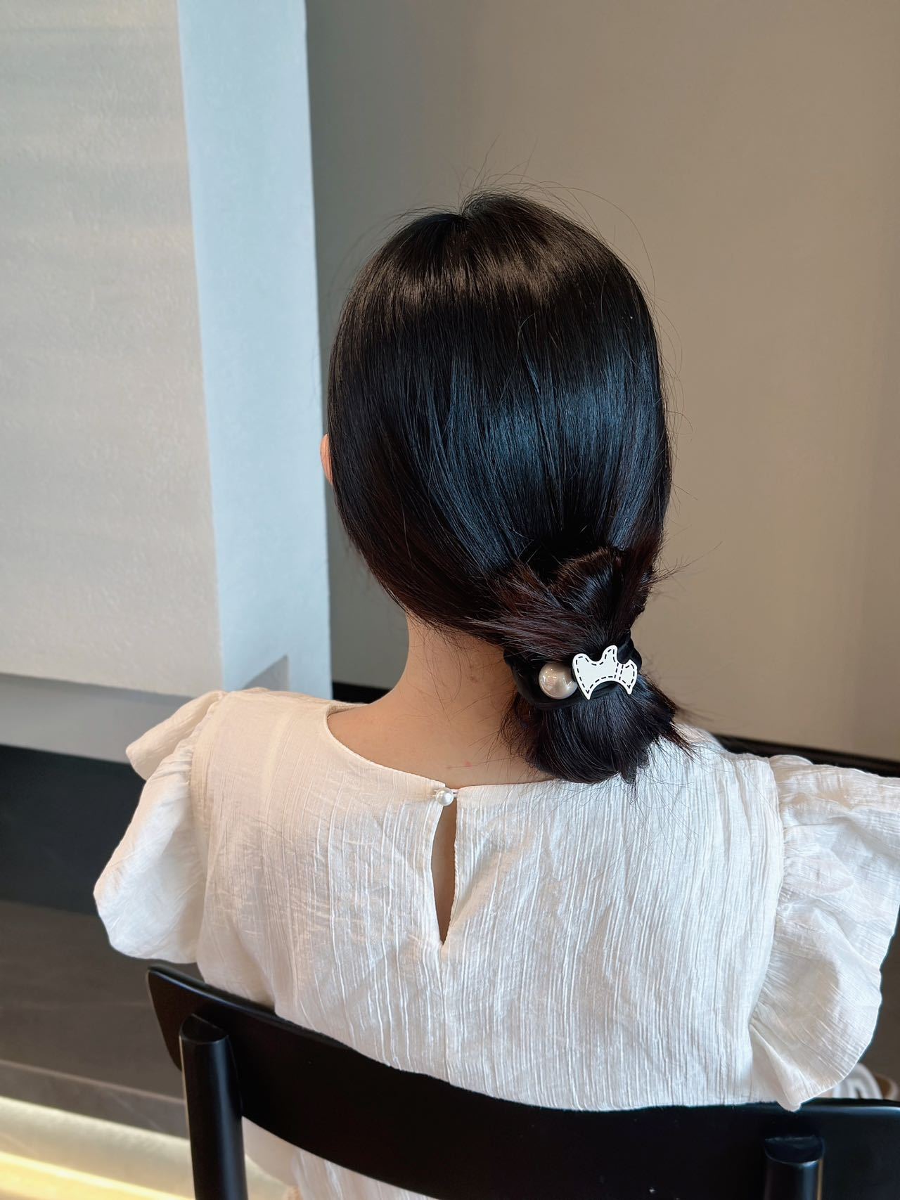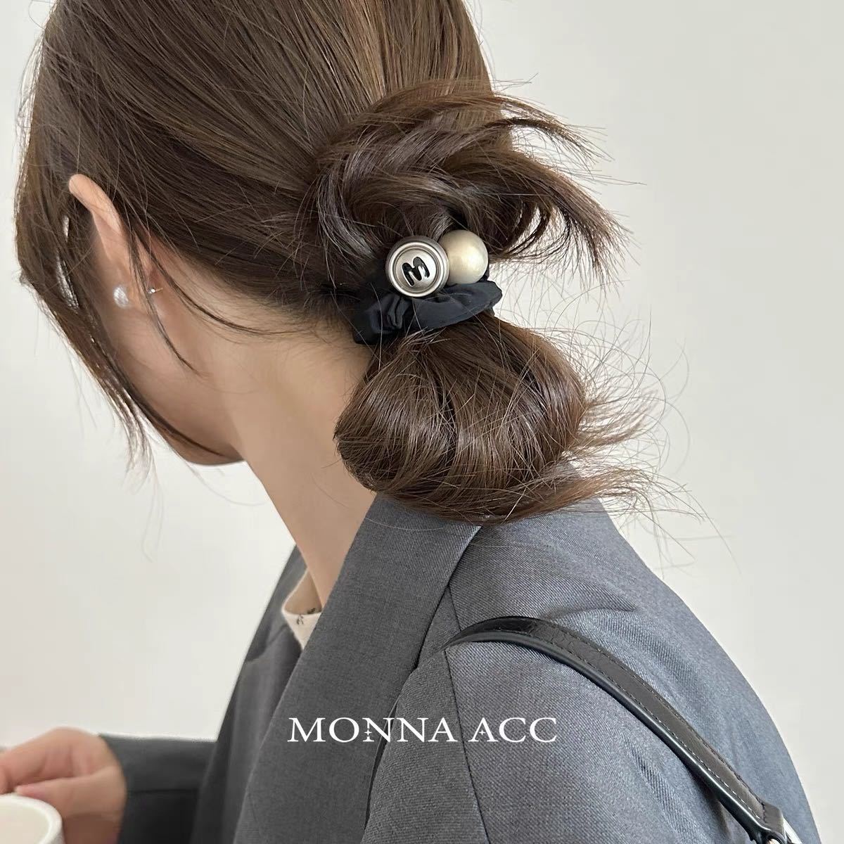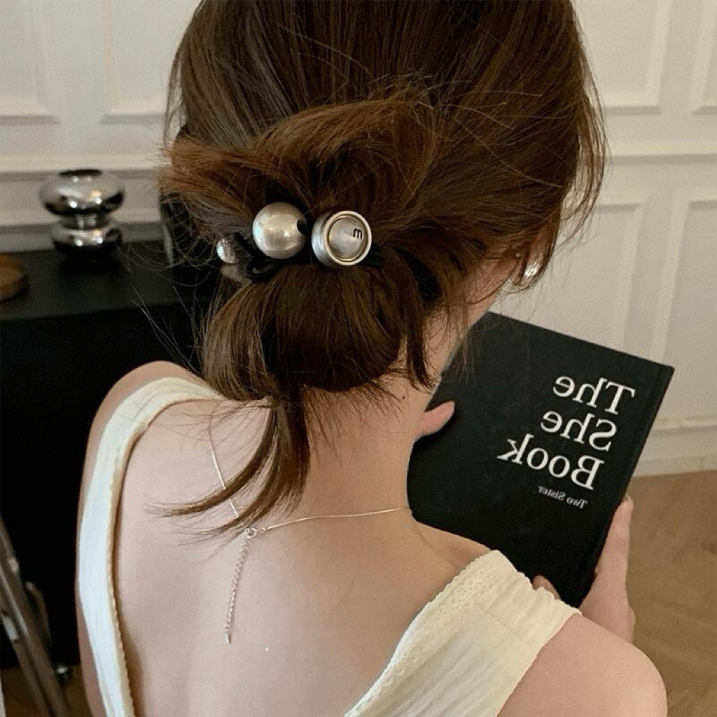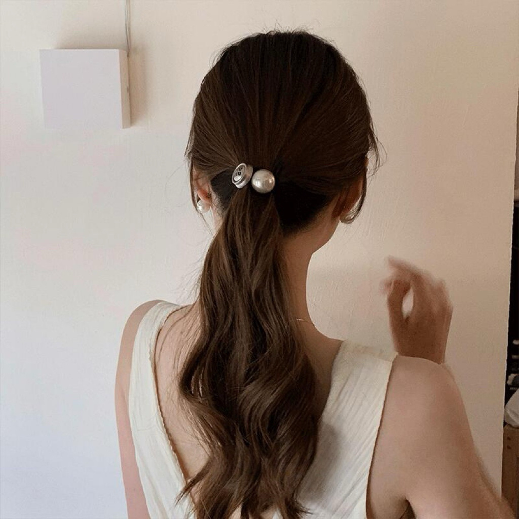 黑色发圈搭配超大颗珍珠超简单大气