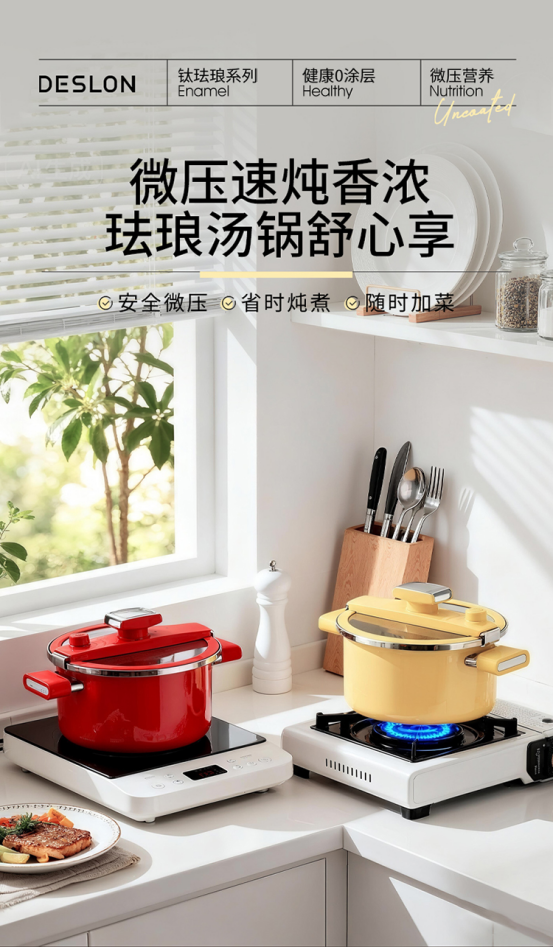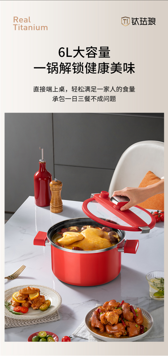 挖到宝!6L钛珐琅微压锅让我家厨房效率翻倍! 安全+健康 打工人+宝妈的双重身份谁懂啊😭 下班回家想给娃和老公做顿营养餐,光炖肉就要耗1小时,真的累到没脾气!直到入了这款钛珐琅微压蒸汤锅,直接把厨房幸福感拉满,必须按头安利!