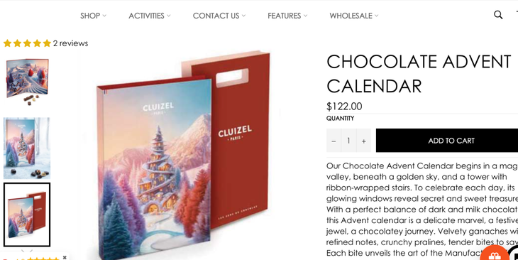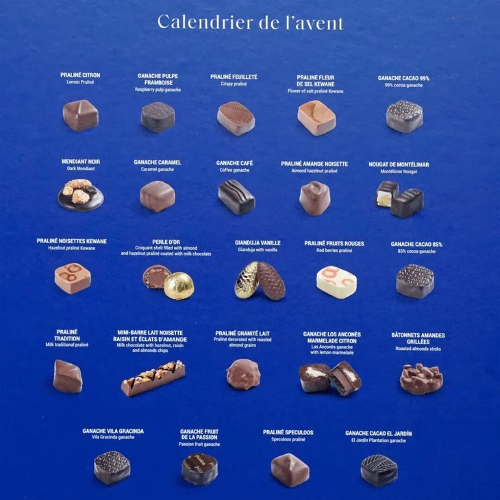 诺~就是来自我们新先聚品今天为大家带来的高级的法国巴黎巧克力品牌-Michel Cluizel的【圣诞日历巧克力盲盒】呀(品牌介绍:松露巧克力之王!法国贵族甜点,米其林餐厅必备!)