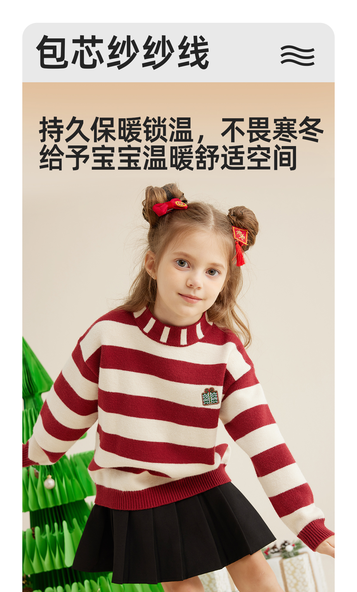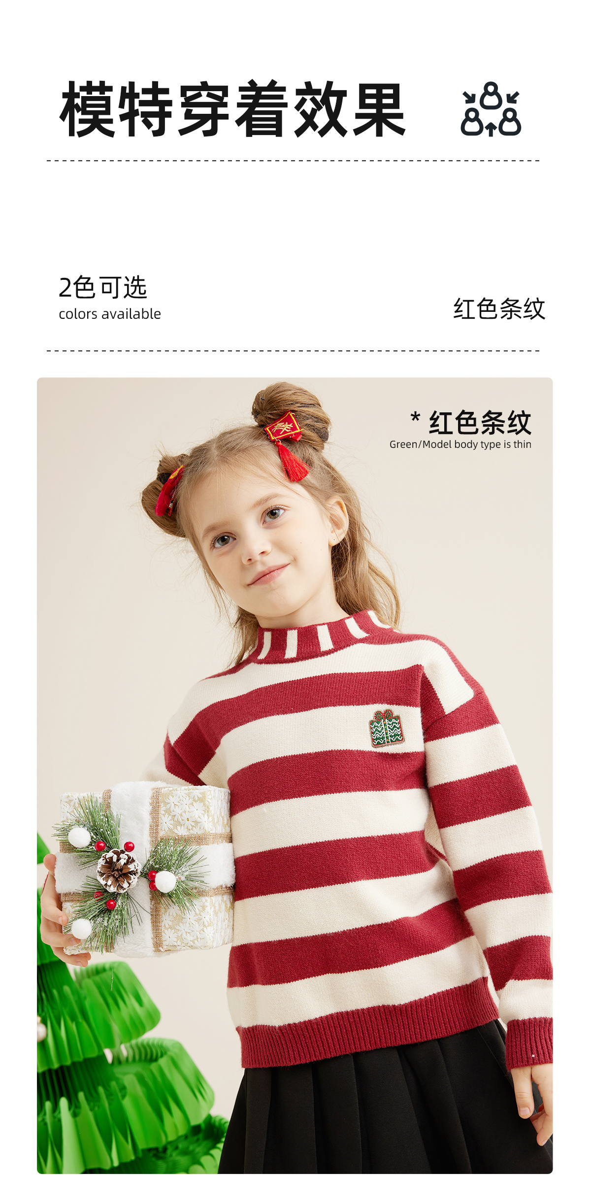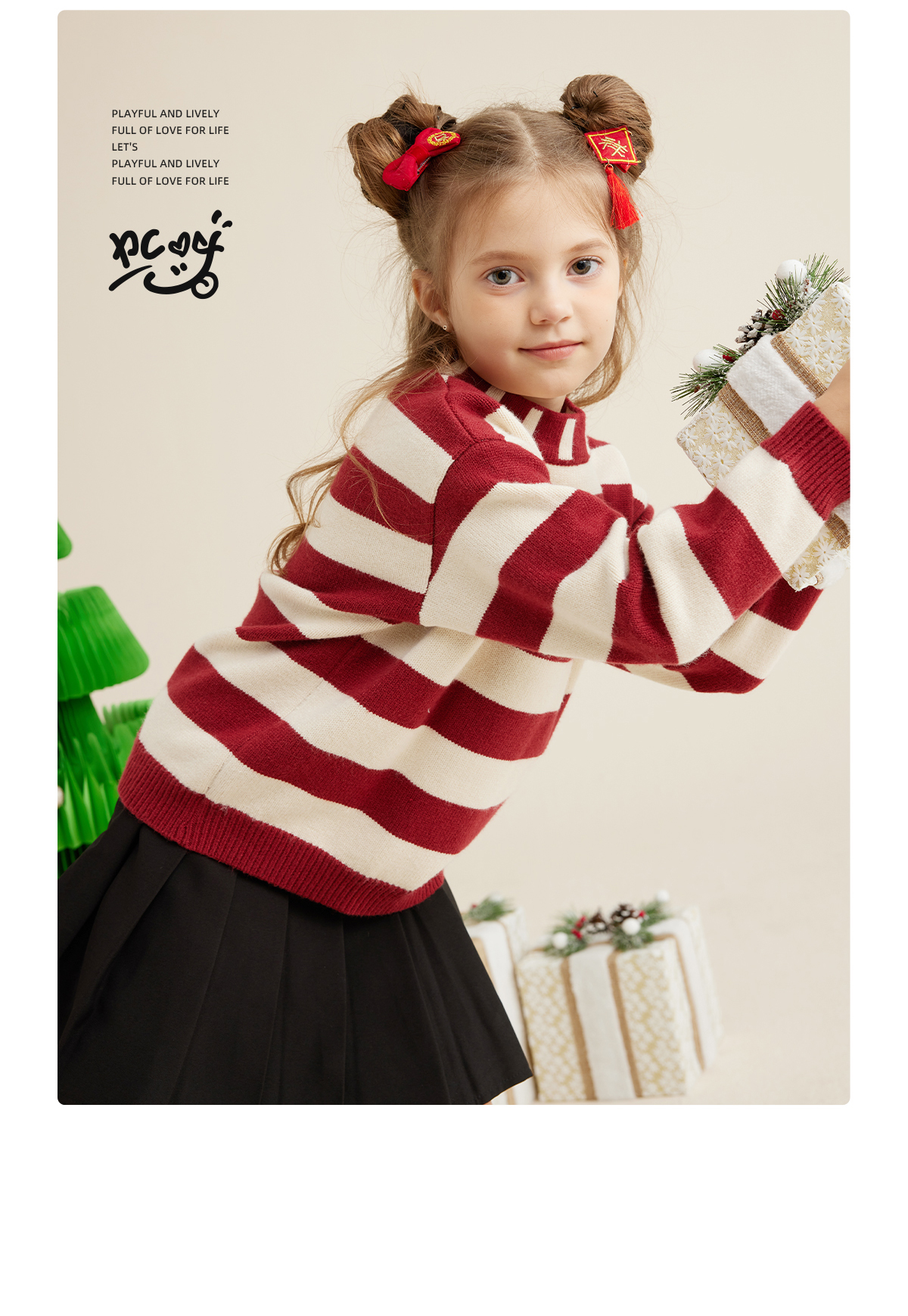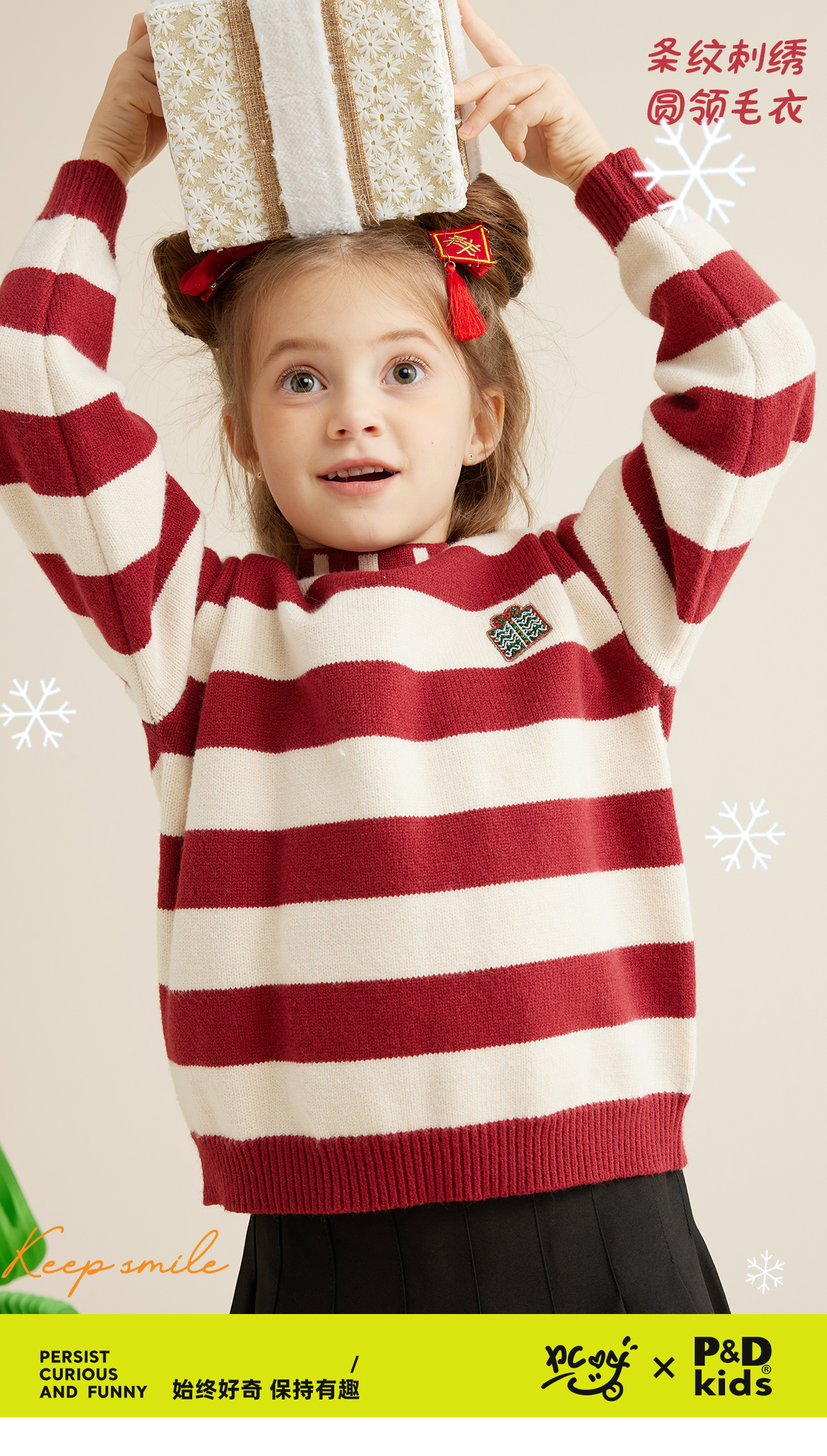 【秋冬上新】【氛围感满满 柔软包芯纱】儿童条纹刺绣圆领毛衣PDMY2318
