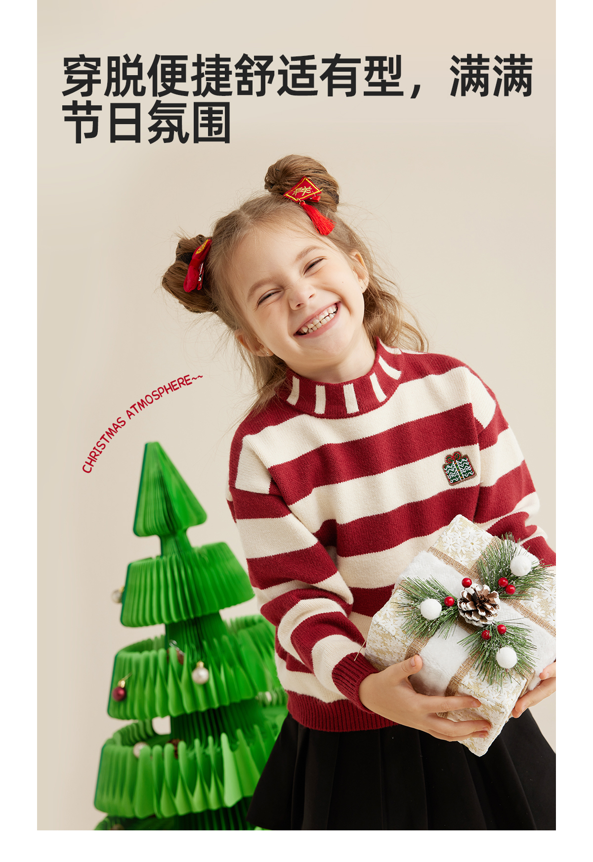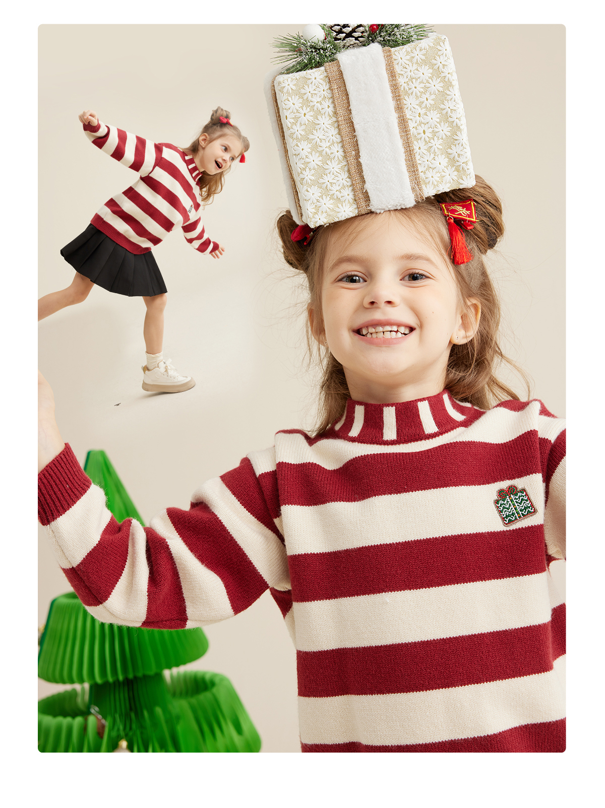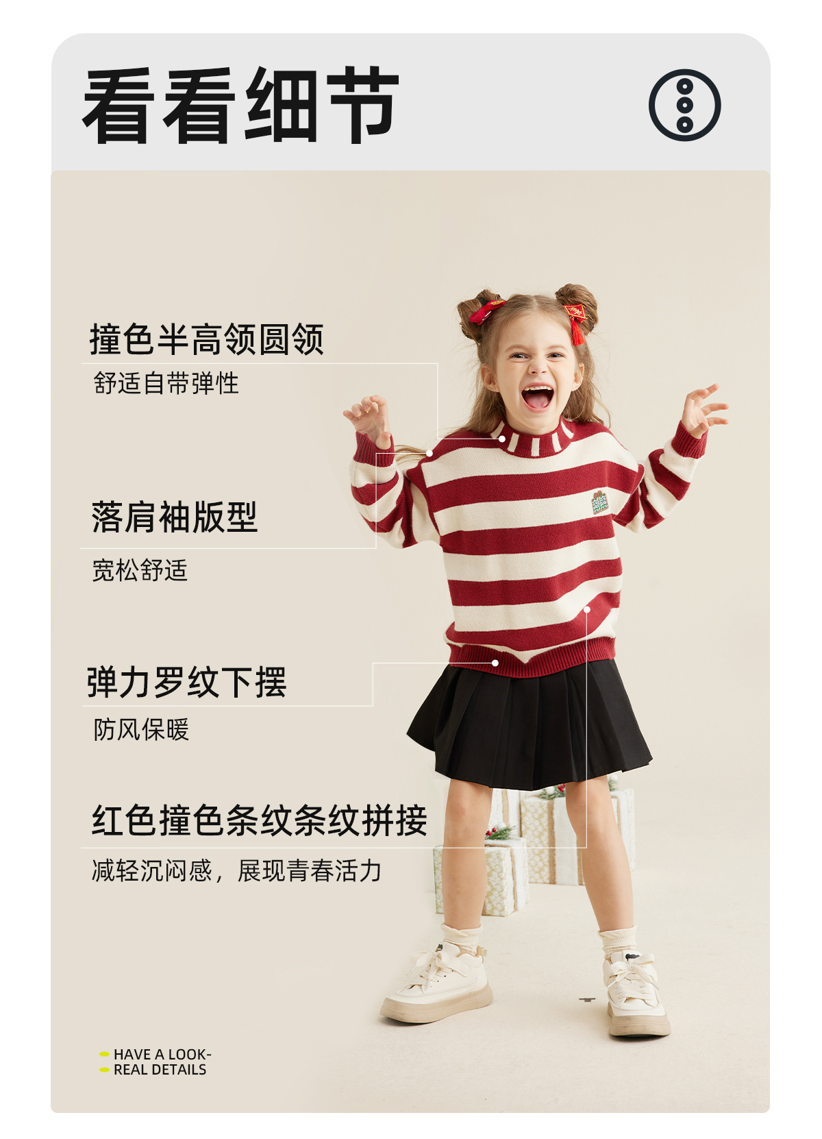 【秋冬上新】【氛围感满满 柔软包芯纱】儿童条纹刺绣圆领毛衣PDMY2318