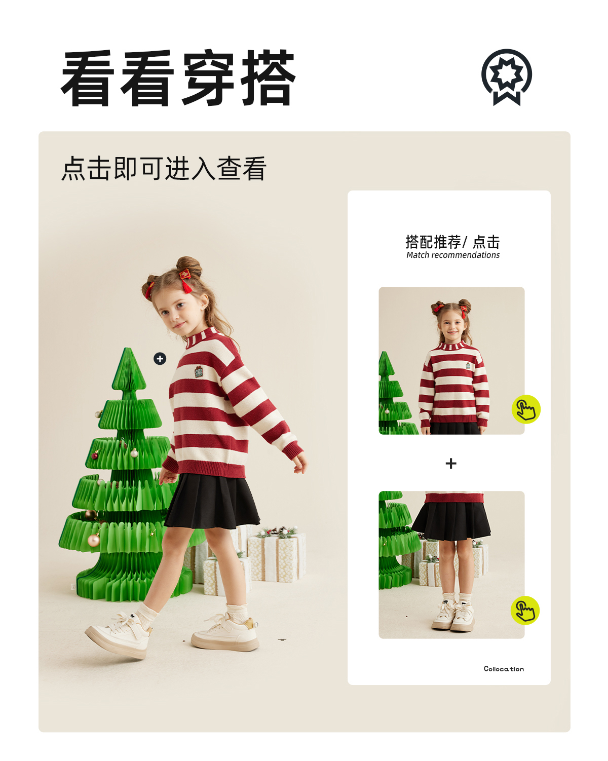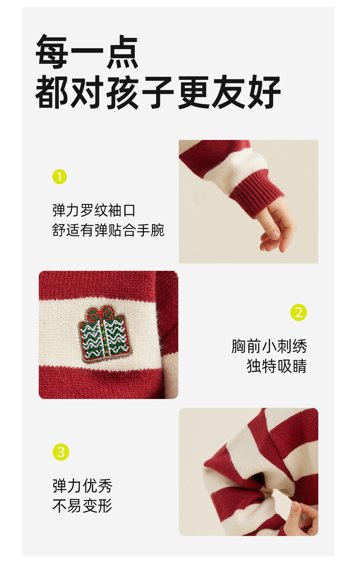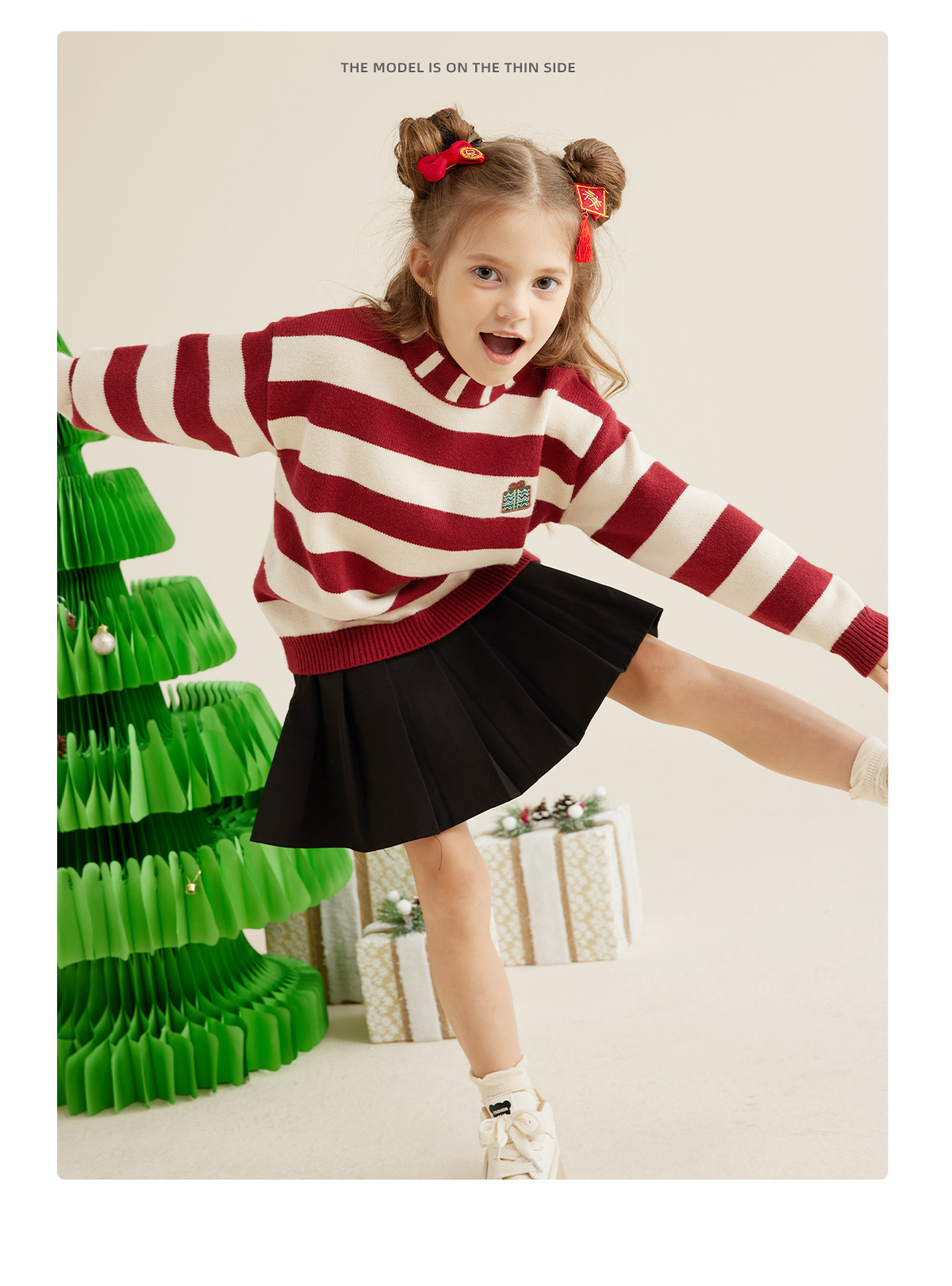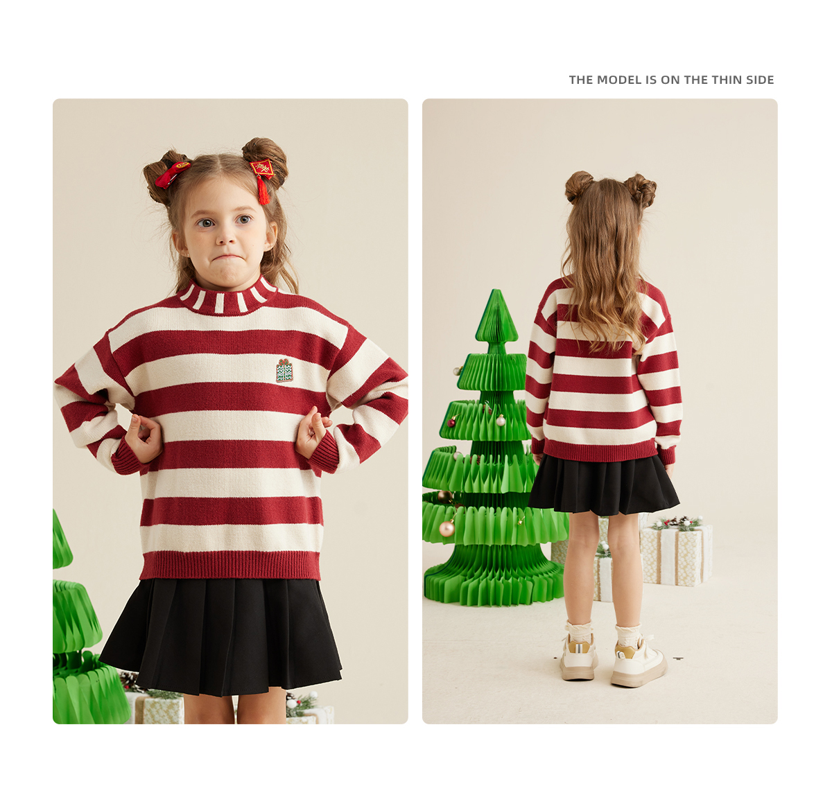 【秋冬上新】【氛围感满满 柔软包芯纱】儿童条纹刺绣圆领毛衣PDMY2318