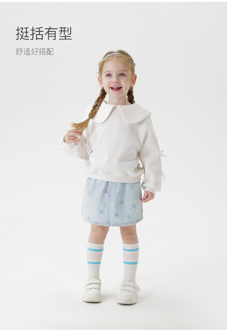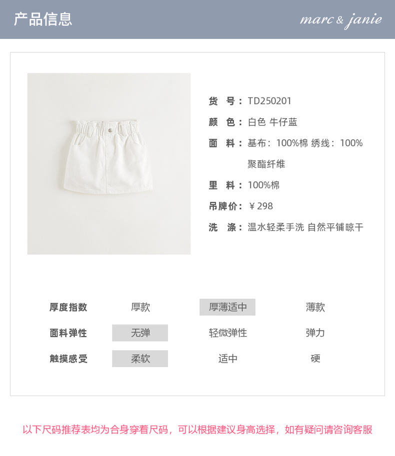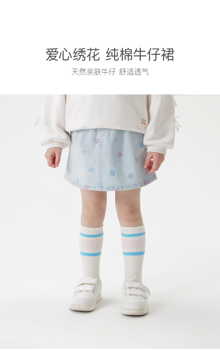马克珍妮女童花苞纯棉牛仔绣花半裙2025年春装新款250201