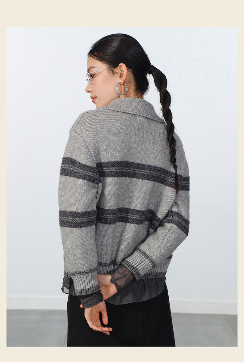 气质百搭极简复古polo条纹衫-纪念日百货门店同款169093290