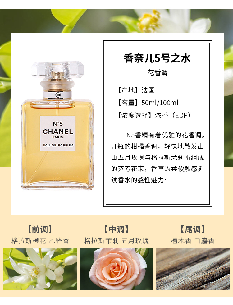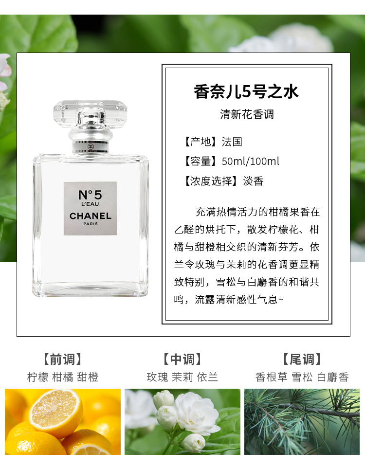 【中欧班列精选】BF法国 Chanel/香奈儿香水N5五号之水持久留香浓香100ML