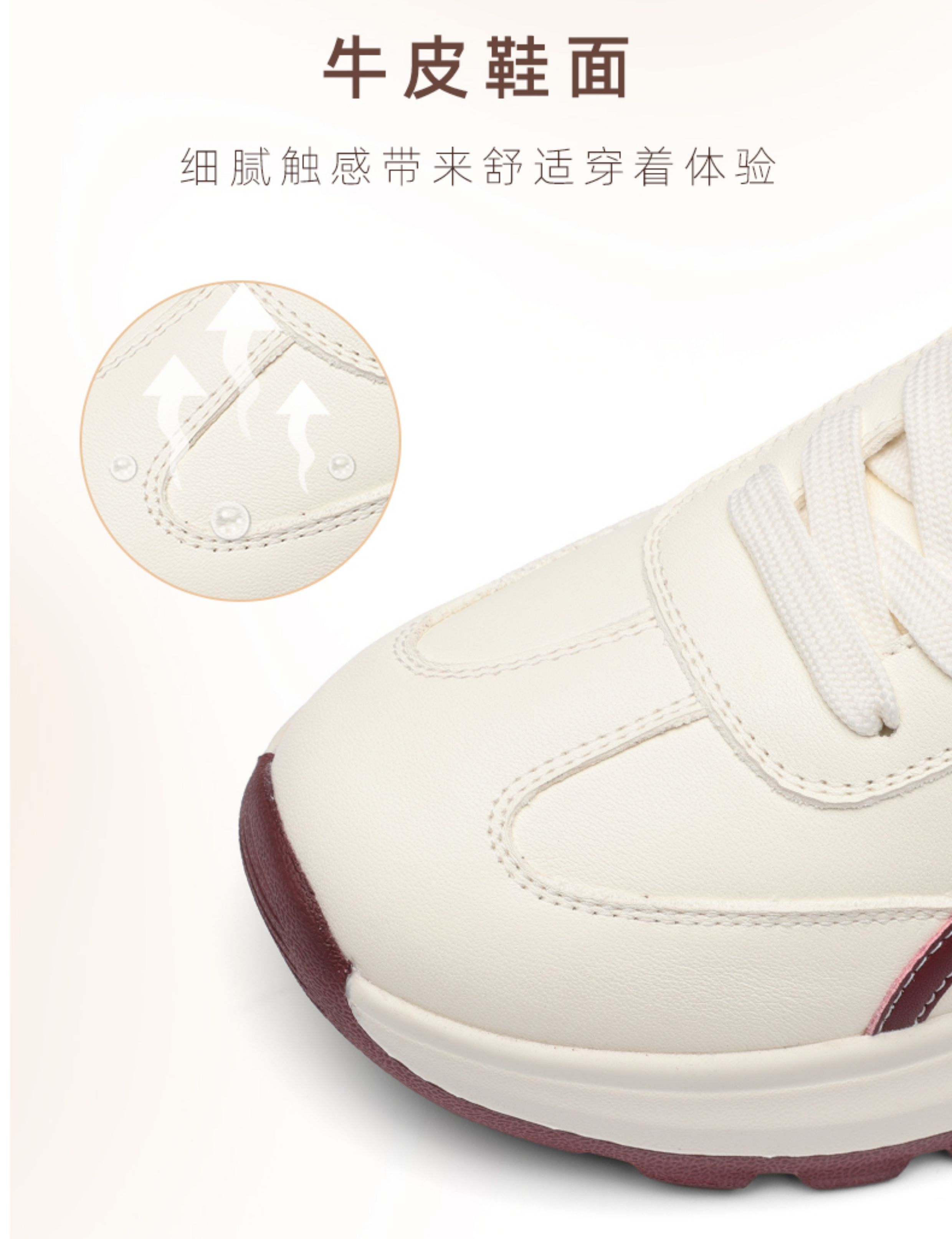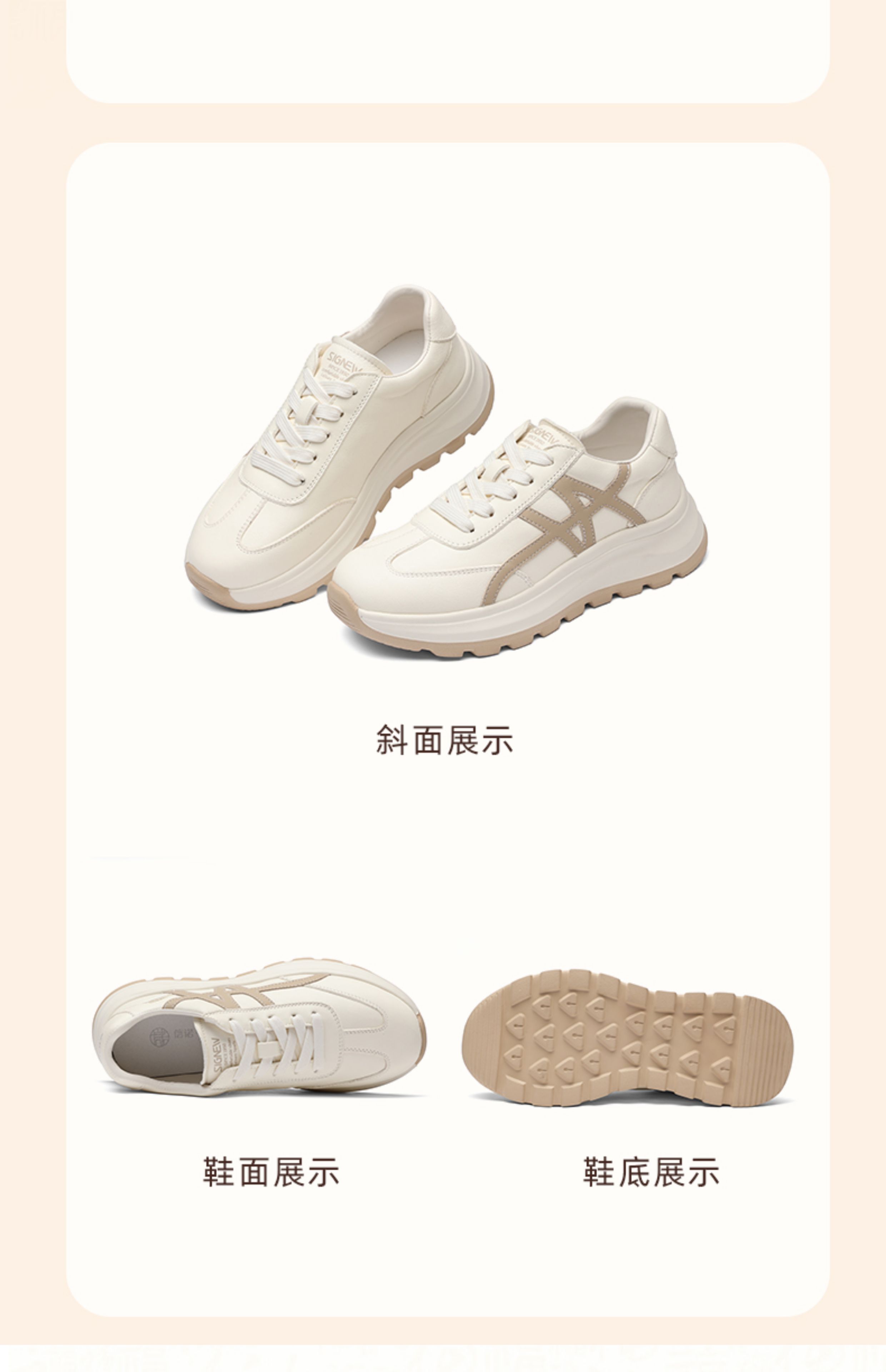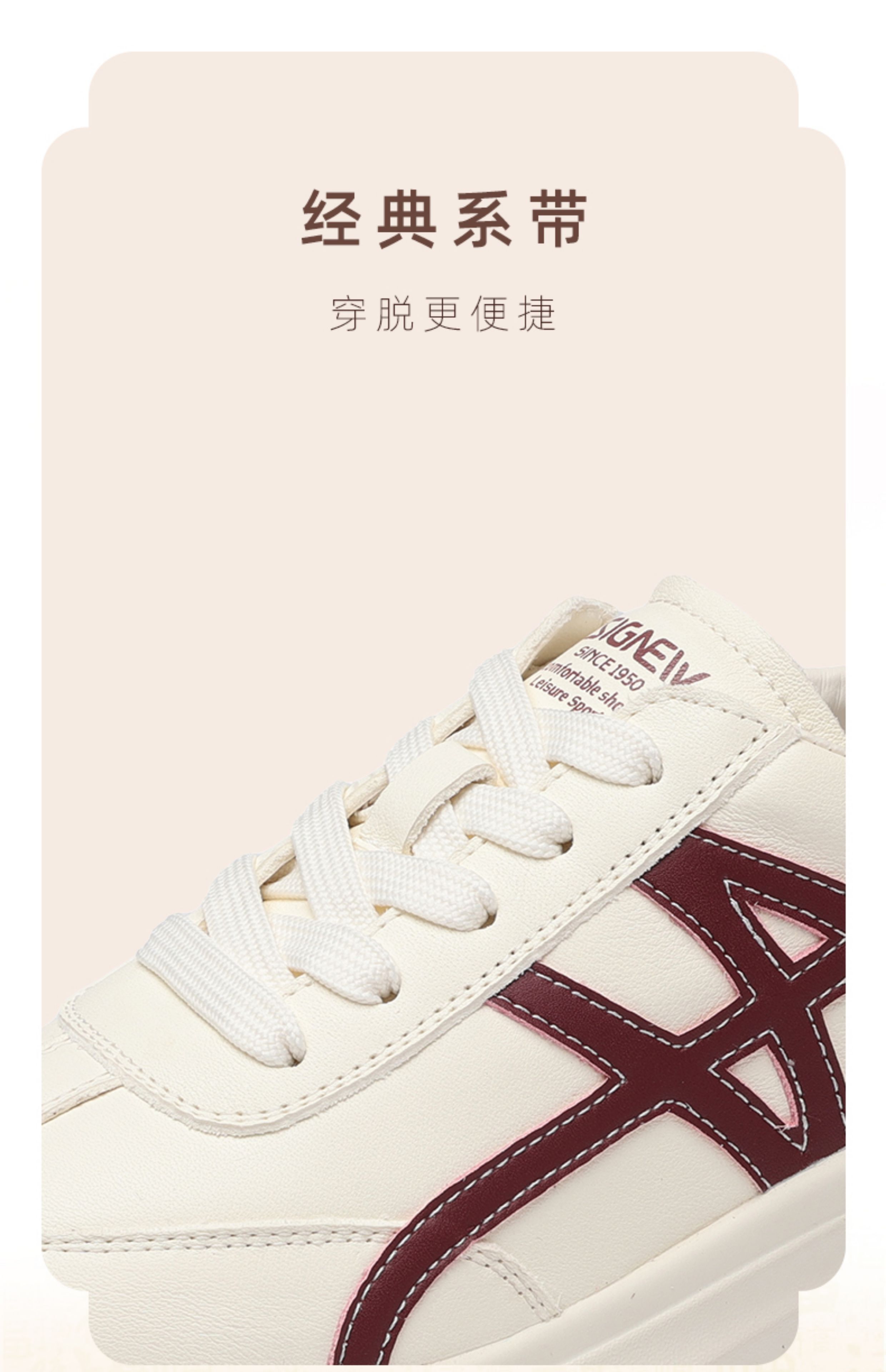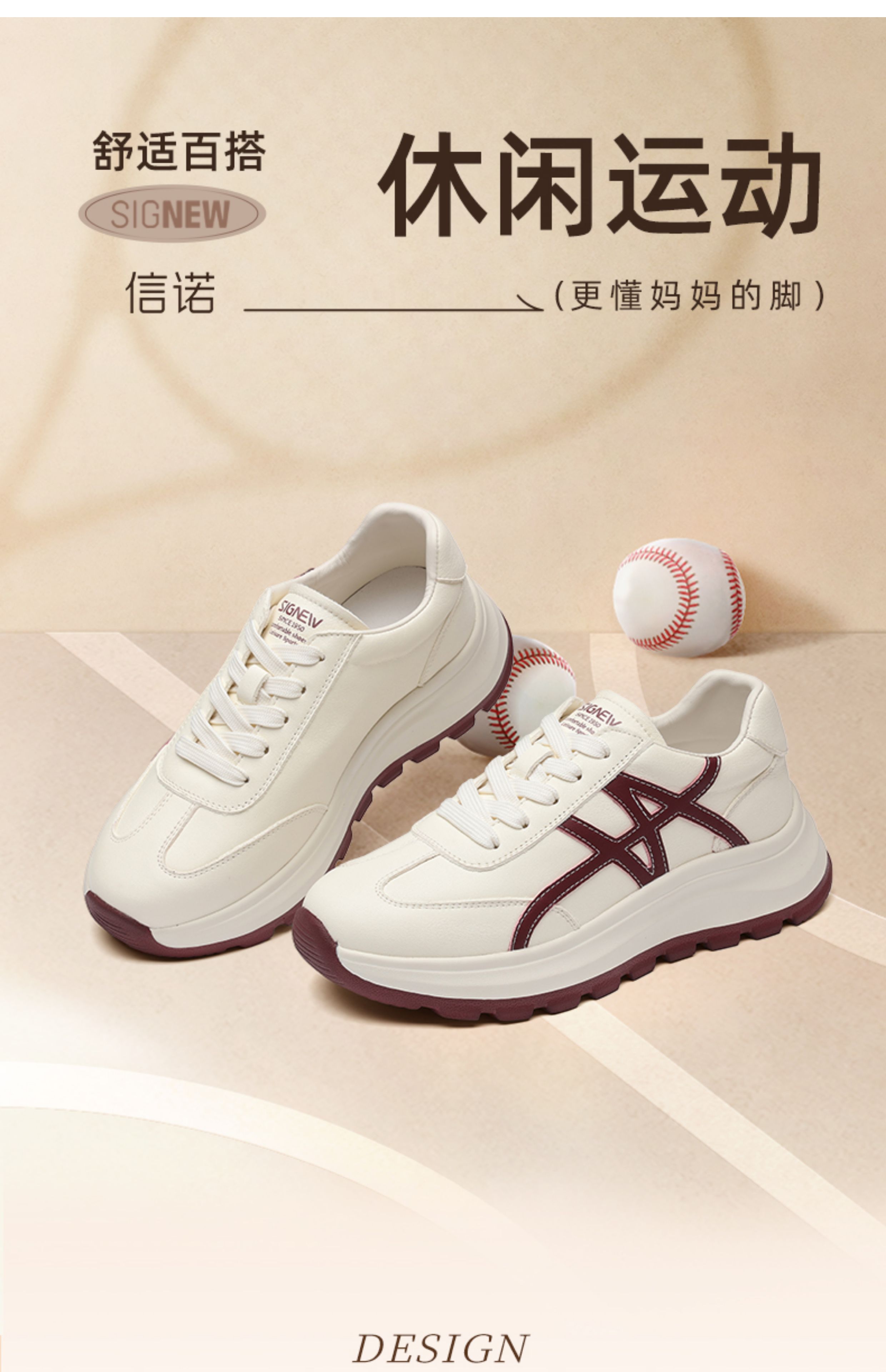 信诺妈妈鞋女款厚底休闲鞋中年运动鞋真皮百搭小白鞋2025新款秋季X5Q005-182