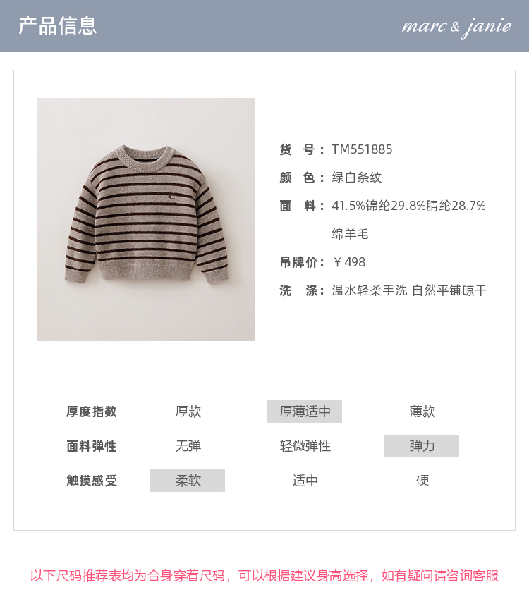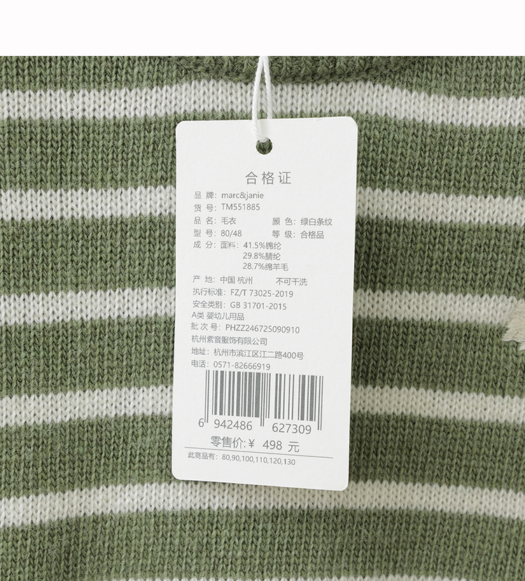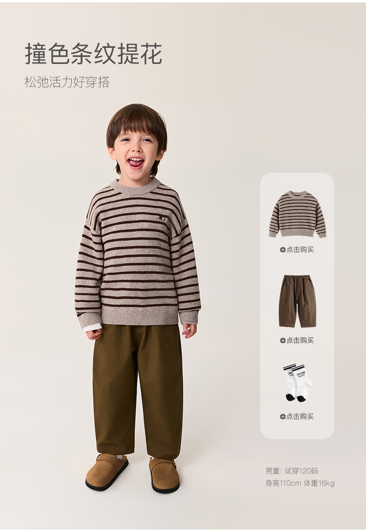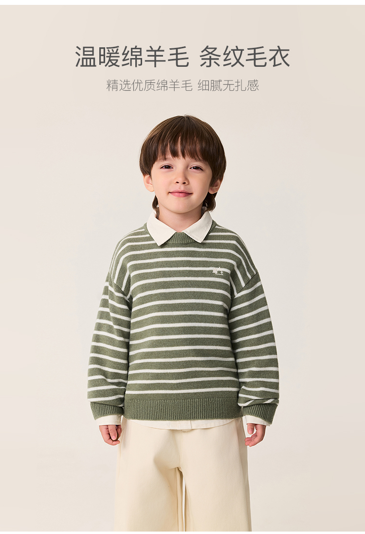 马克珍妮男童条纹绵羊毛针织衫2025年秋冬新款551885