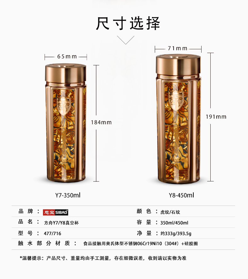 思宝旗舰店新款方舟Y真空保温杯办公商务礼品车载便捷水杯