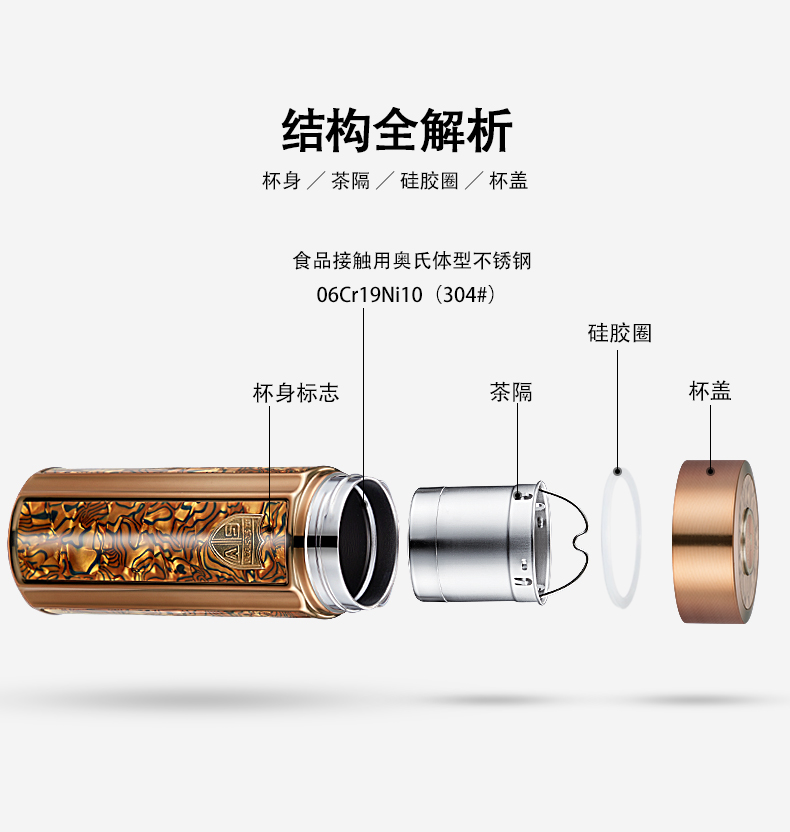 思宝和为贵真空杯304不锈钢办公室便携水杯礼盒装泡茶保温杯
