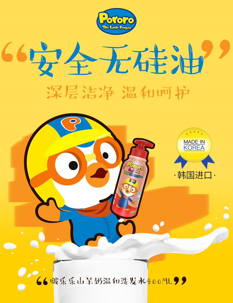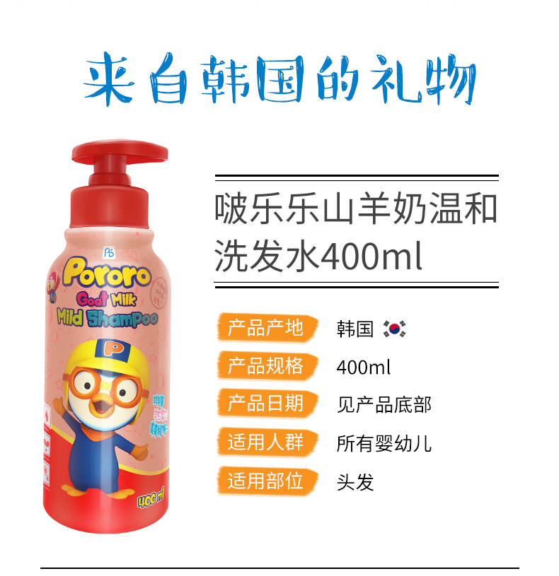 XDR 韩国Pororo 啵乐乐山羊奶洗发水400ml