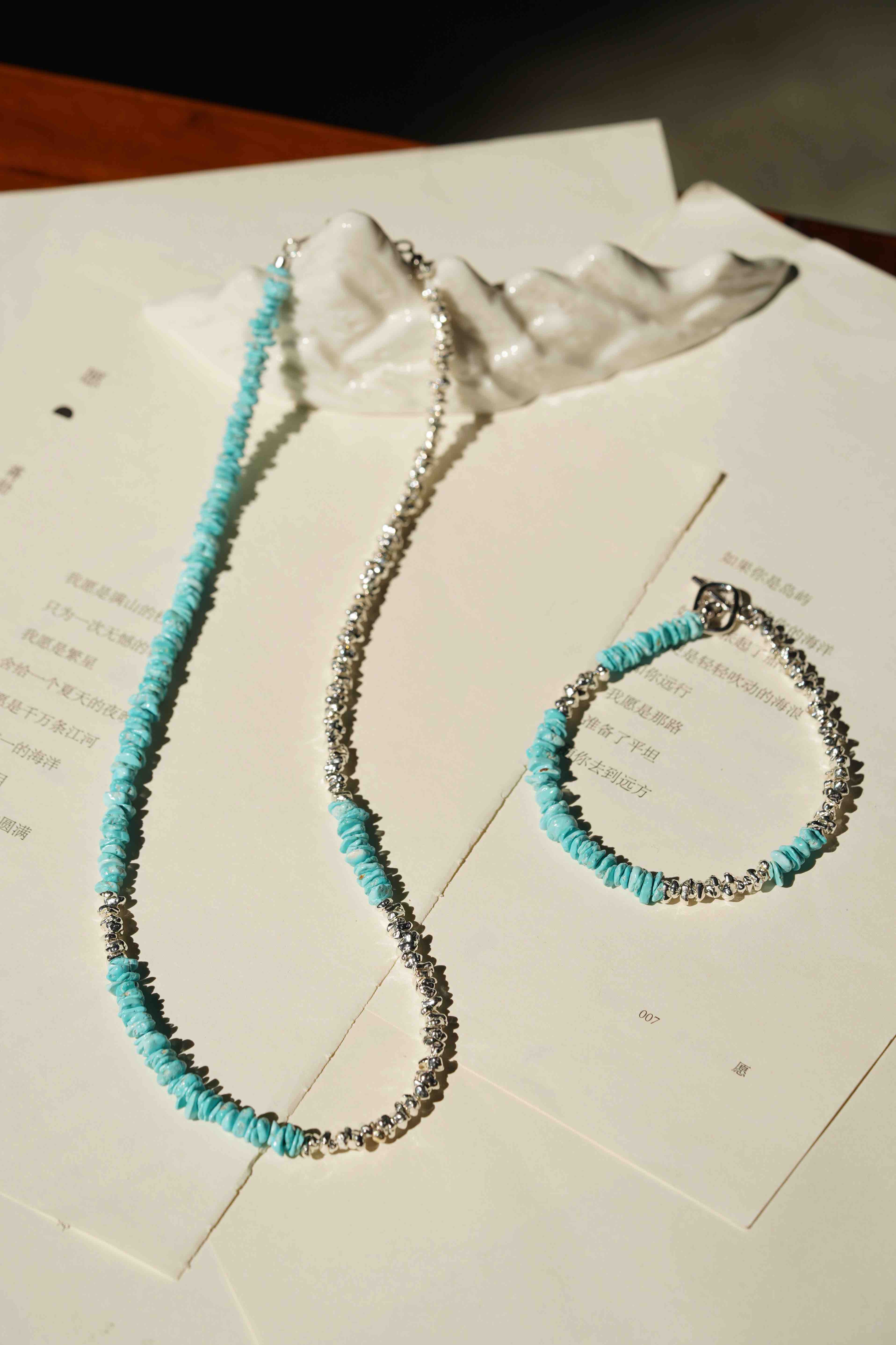 绿松碎银项链&手链