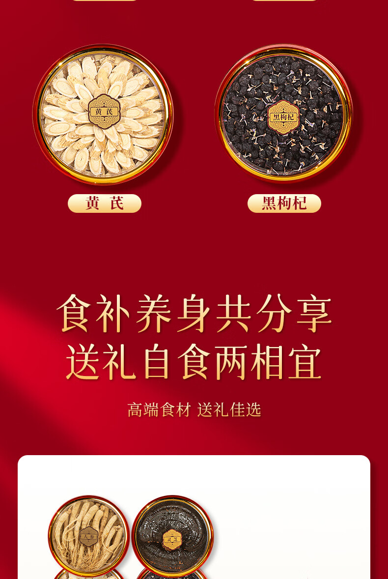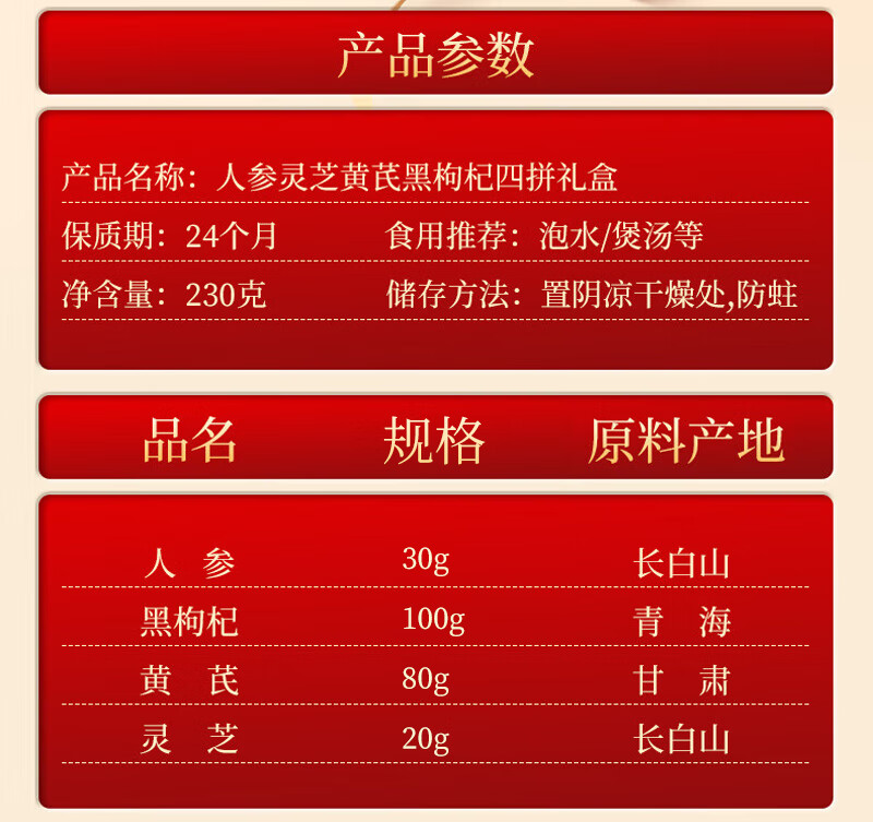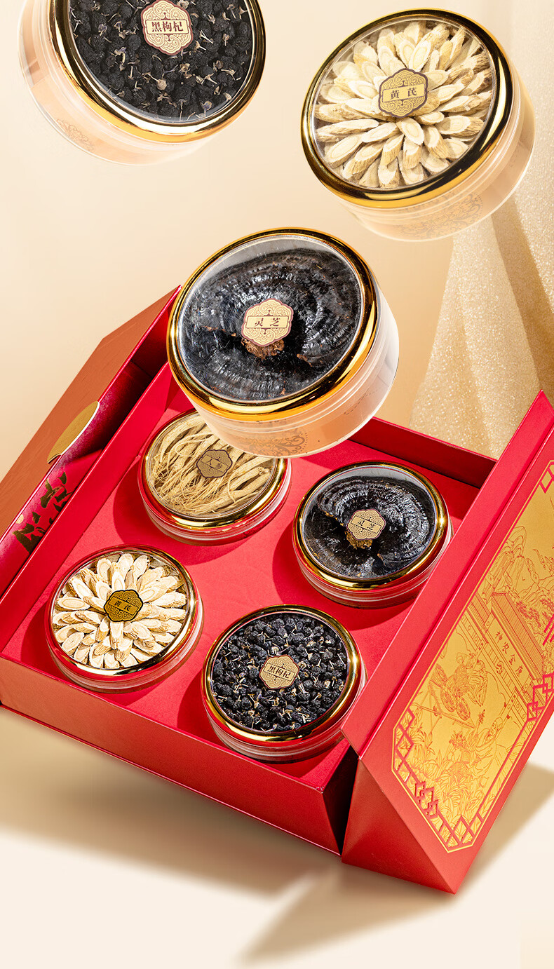 神农金康黑枸杞黄芪人参灵芝红色四拼礼盒230g 年货节礼品企业员工福利