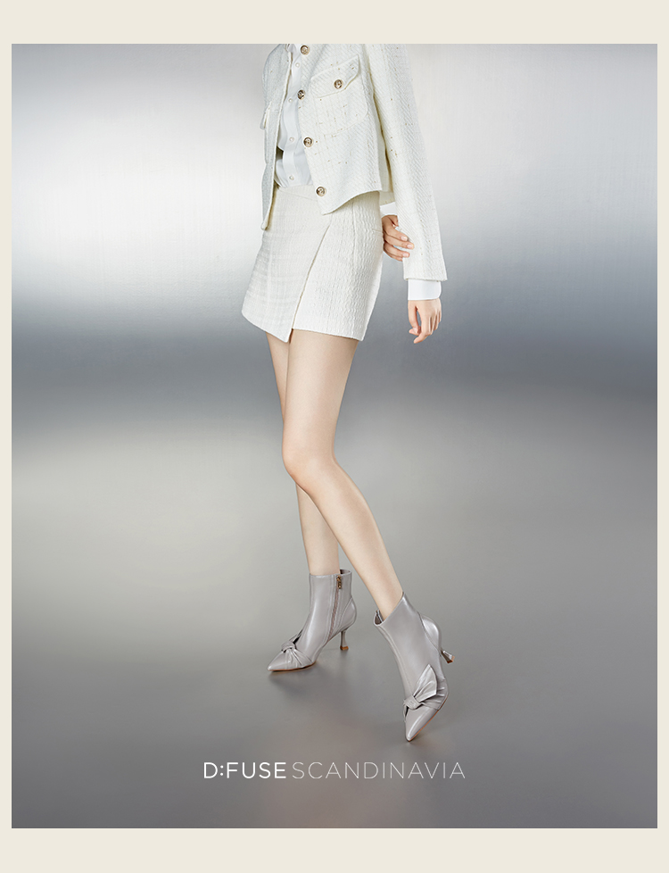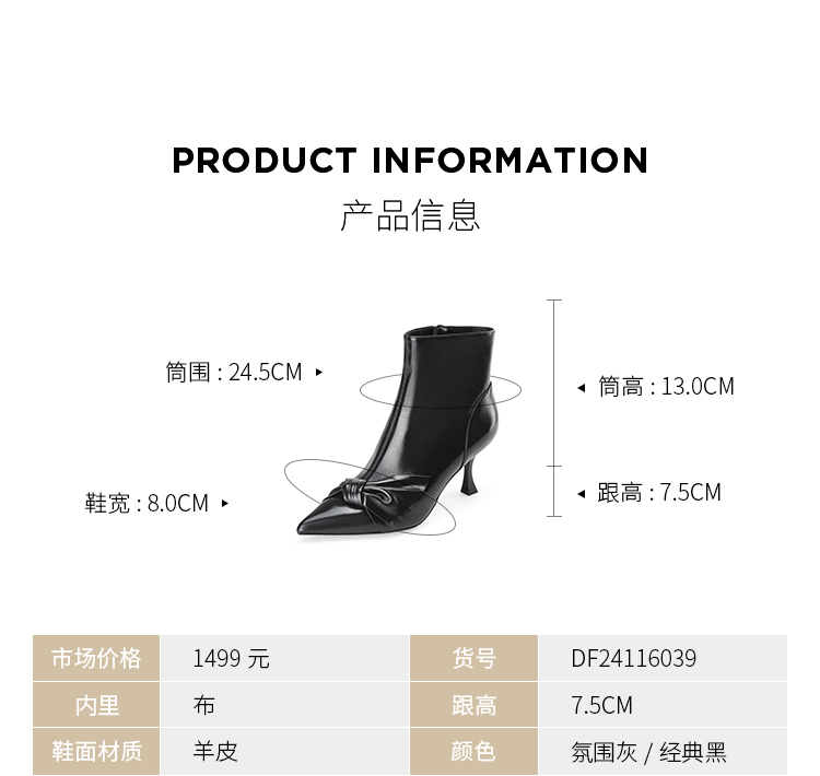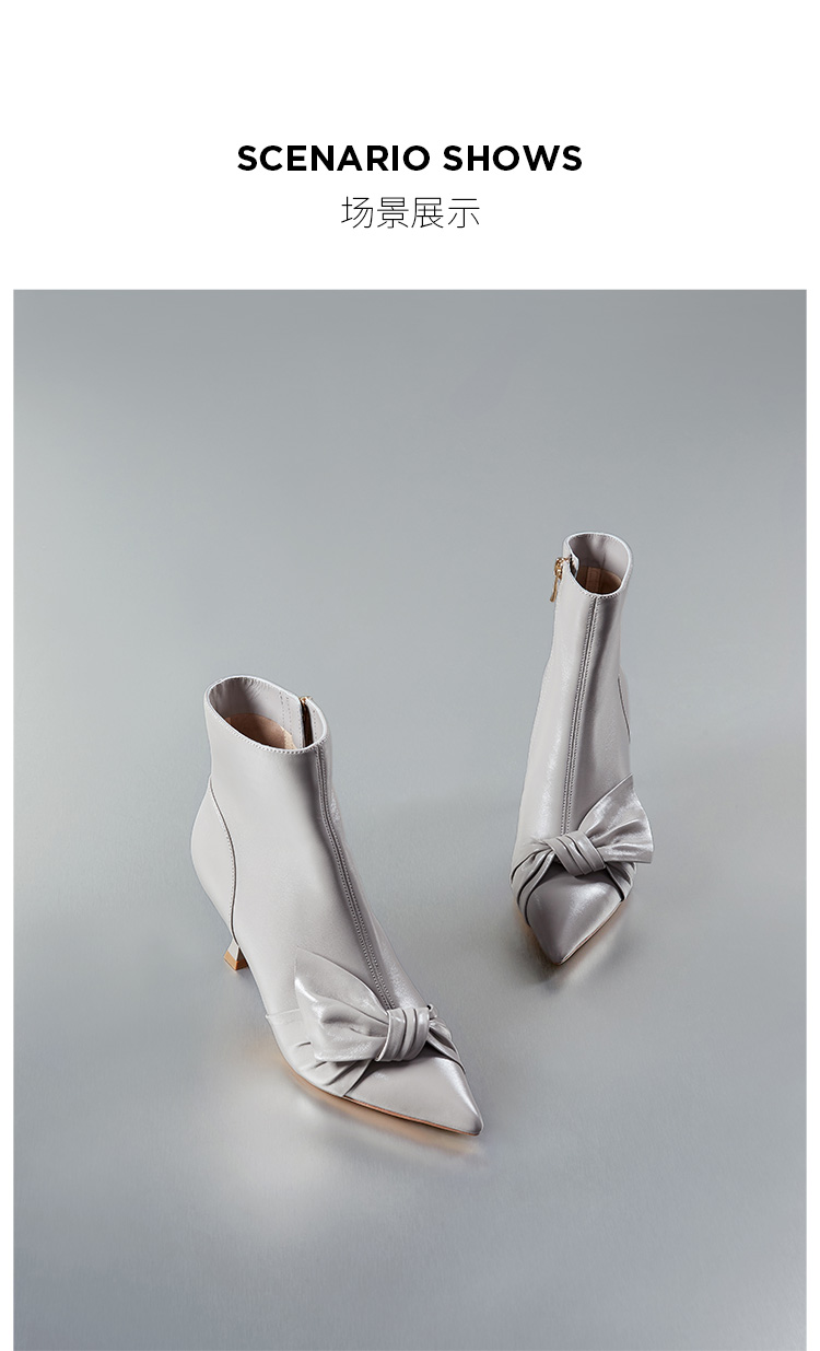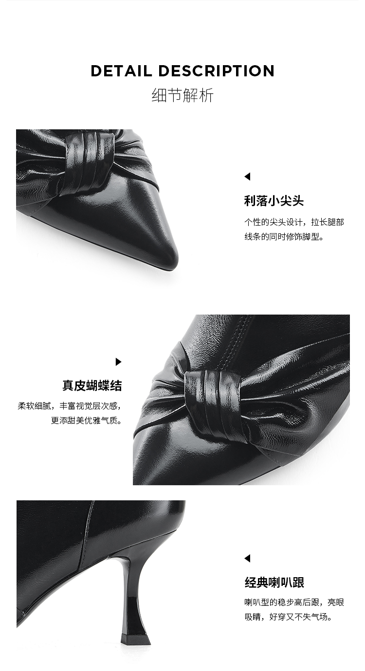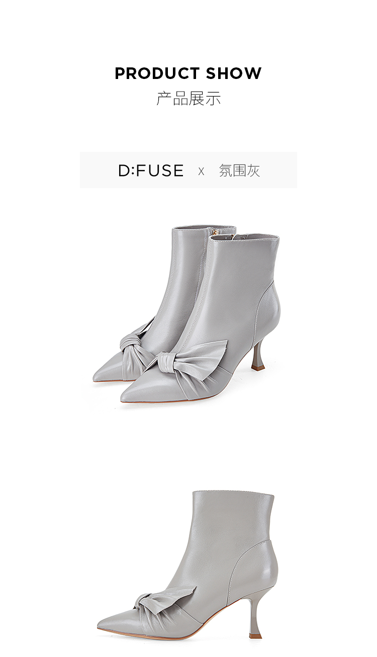 D:FUSE迪芙斯秋新款时装鞋女羊皮尖头蝴蝶结高跟裸靴靴子DF34116027 商品图8