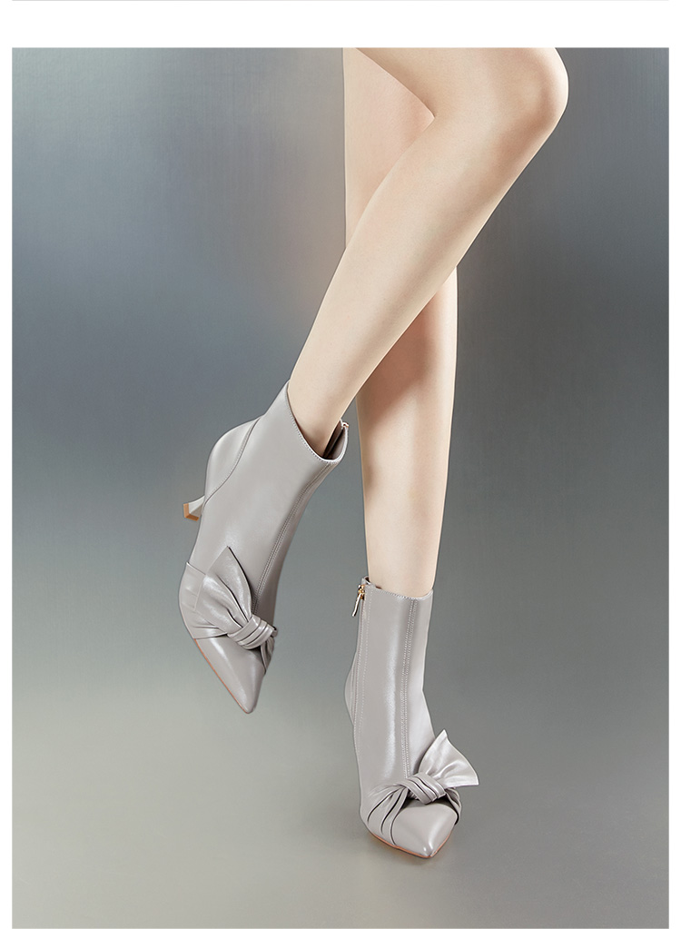 D:FUSE迪芙斯秋新款时装鞋女羊皮尖头蝴蝶结高跟裸靴靴子DF34116027 商品图3