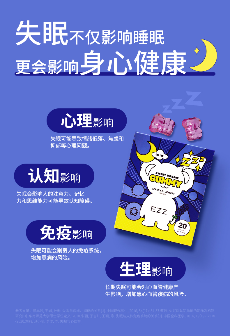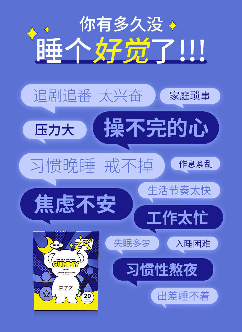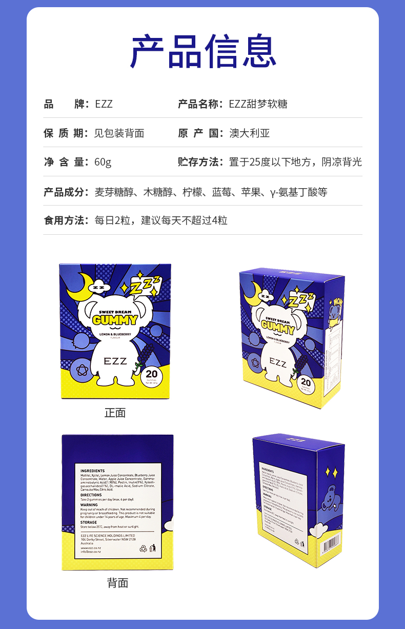【多妈团购 EZZ甜梦软糖(柠檬蓝莓味(20粒/盒)】拯救入睡困难,熬夜失眠党的救星,甜甜的好好吃,含GABA,轻松入睡,一觉睡到天亮-EZZ
