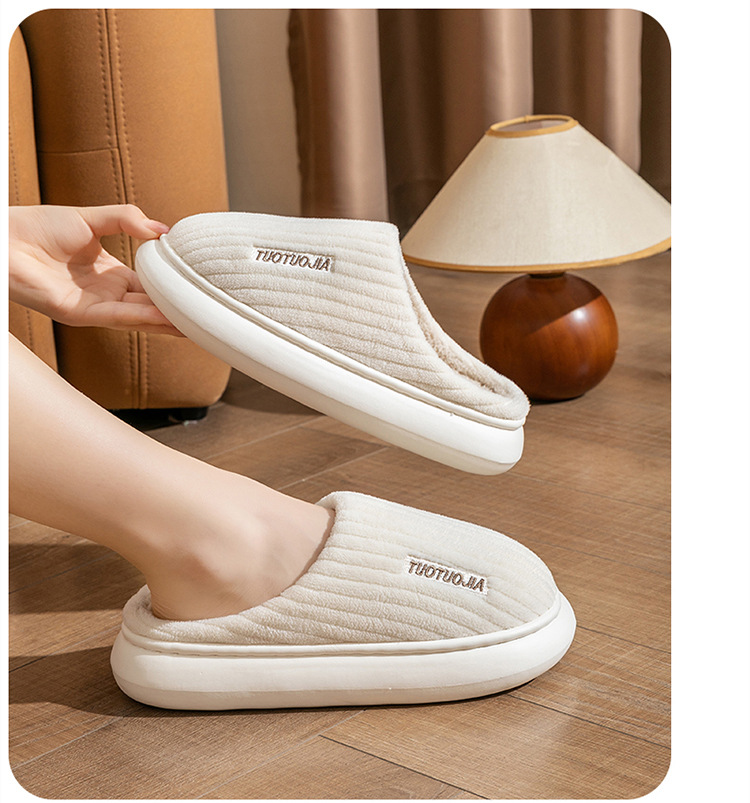 「五色可选!轻柔静音」毛绒棉拖鞋女新款秋冬季厚底防滑耐磨室内居家外穿保暖月子棉拖鞋
