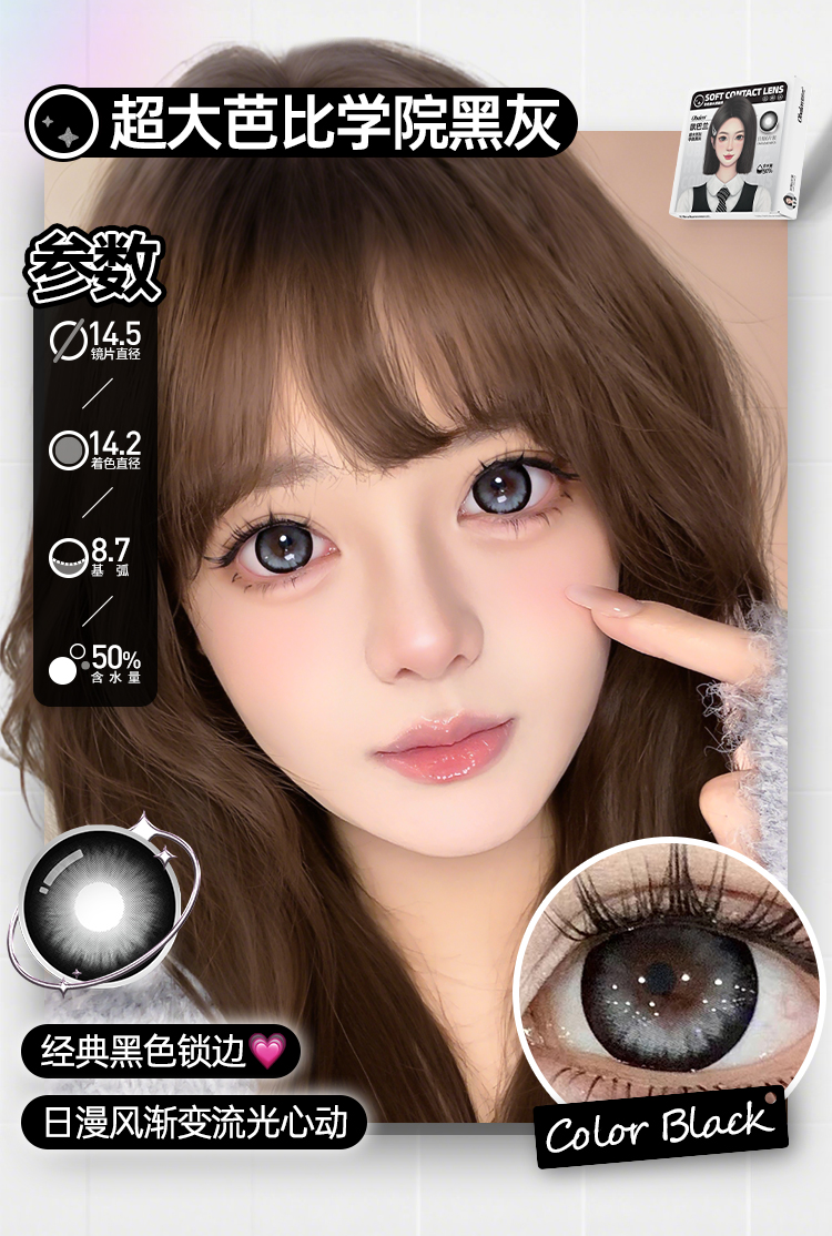 【元气少女系列日抛】Obalen欧巴兰百搭自然美瞳【超大芭比学院黑灰】14.5大直径隐形近视眼镜6片装