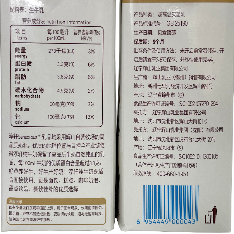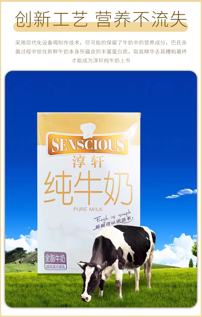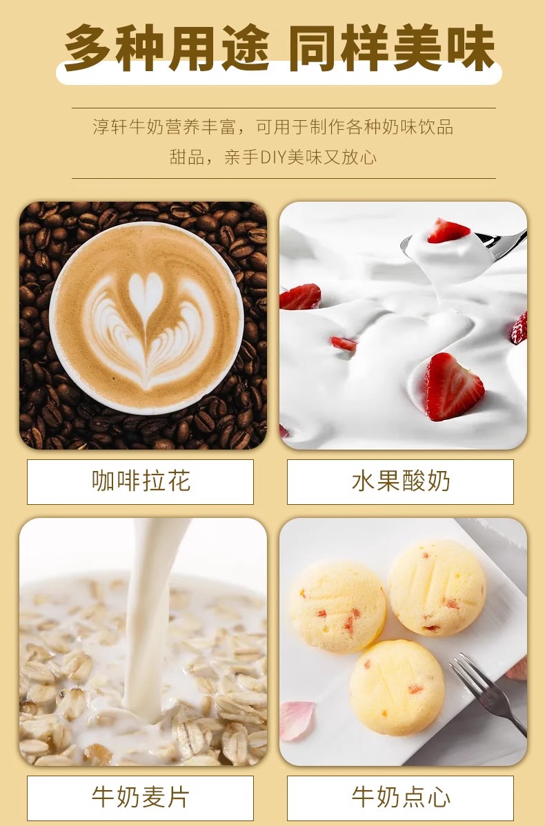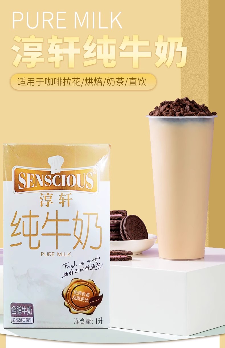 辉山淳轩纯牛奶 超高温灭菌纯牛奶 全脂牛奶1L 打奶泡咖啡拉花 烘焙咖啡甜品奶茶原料